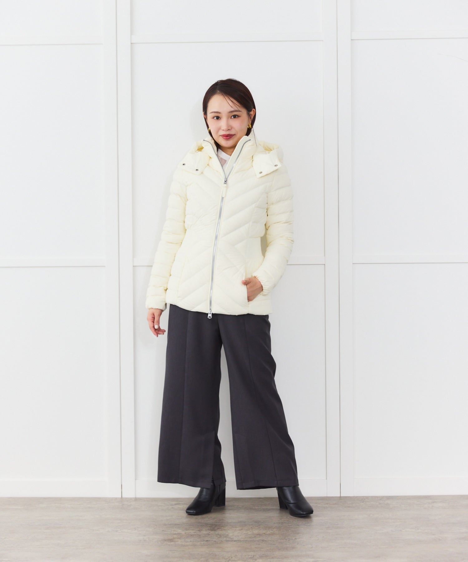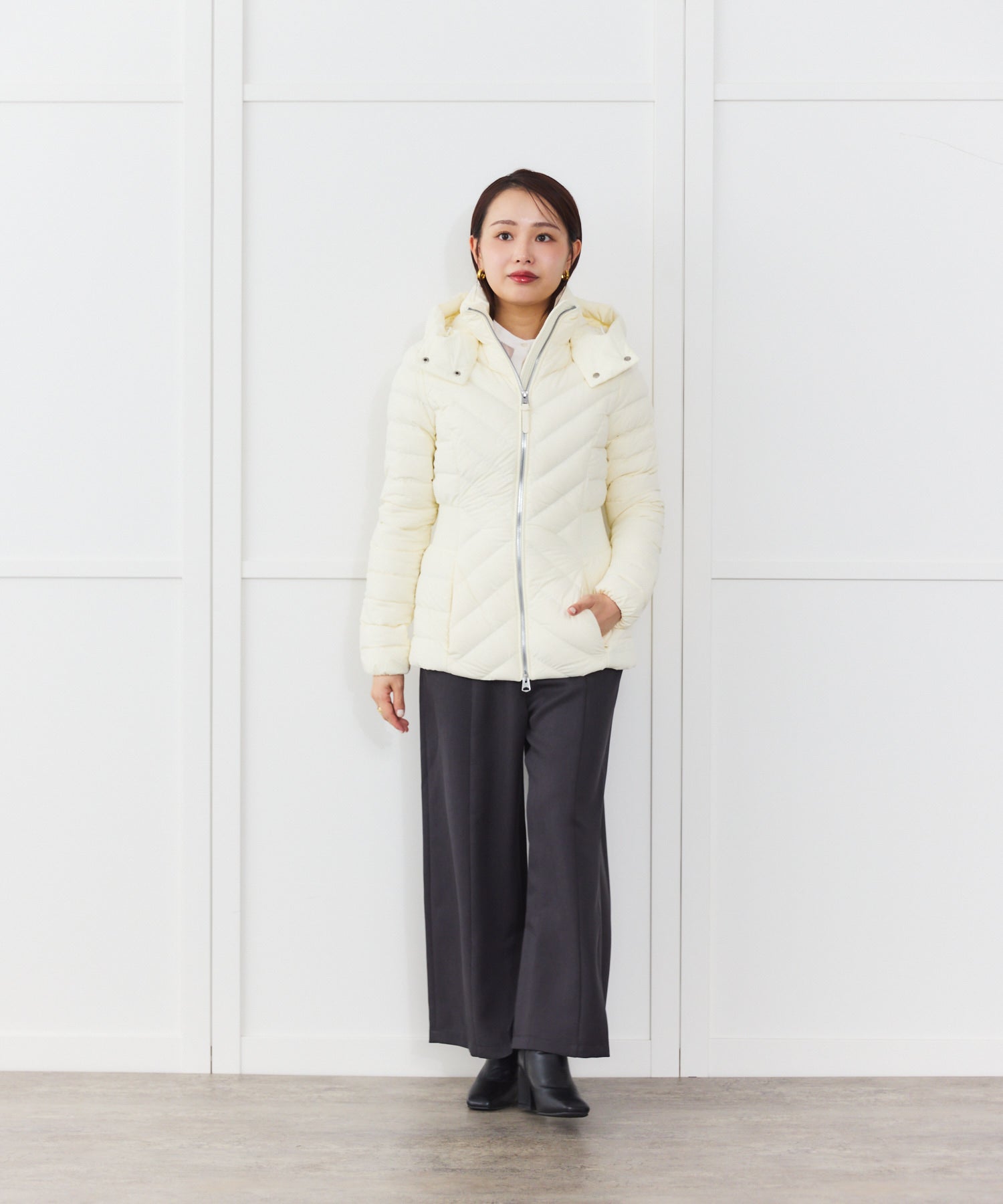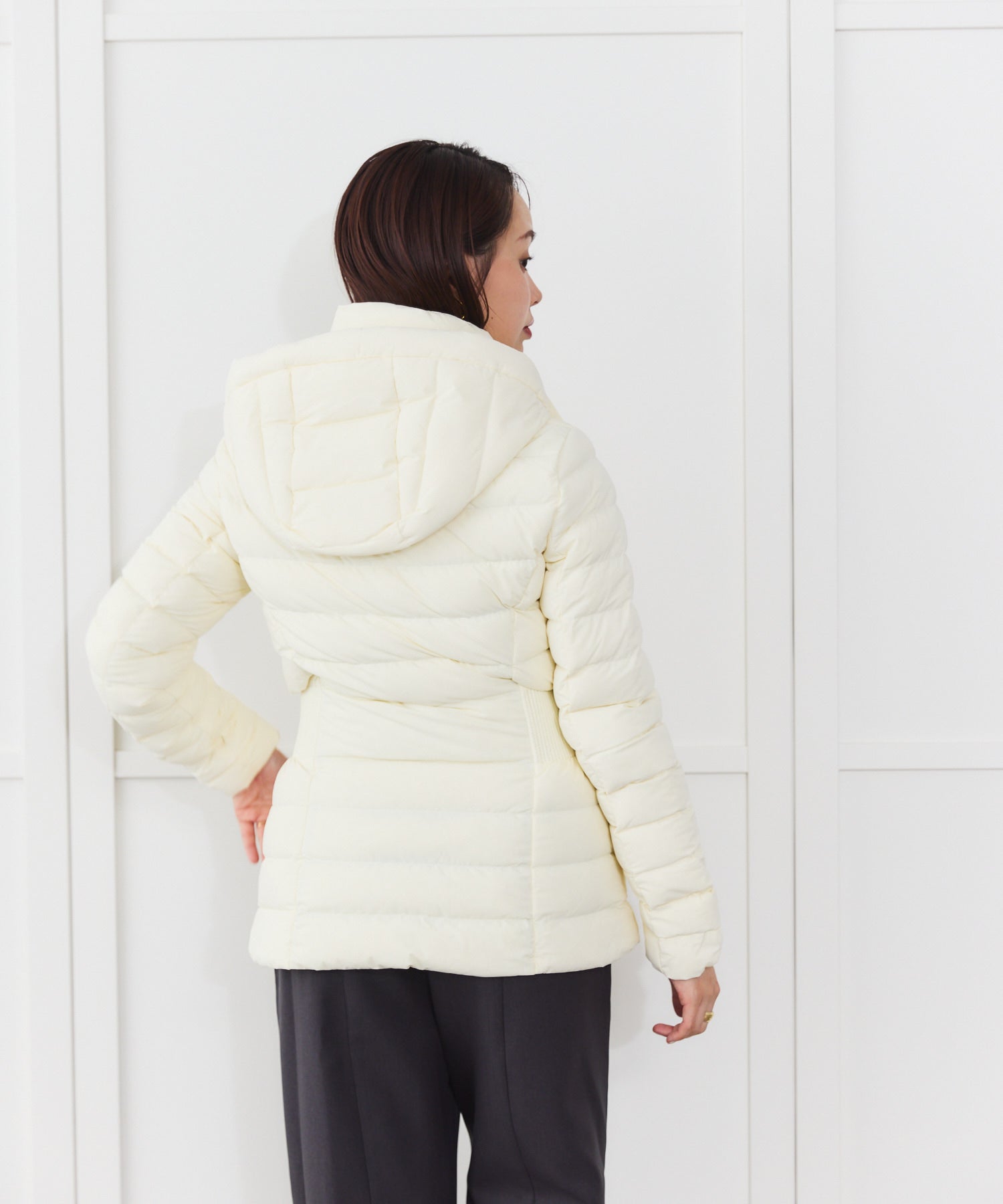 ボディラインを美しく見せる立体的なステッチデザインが特徴で、カジュアルになりがちなダウンも女性らしく上品な印象に。