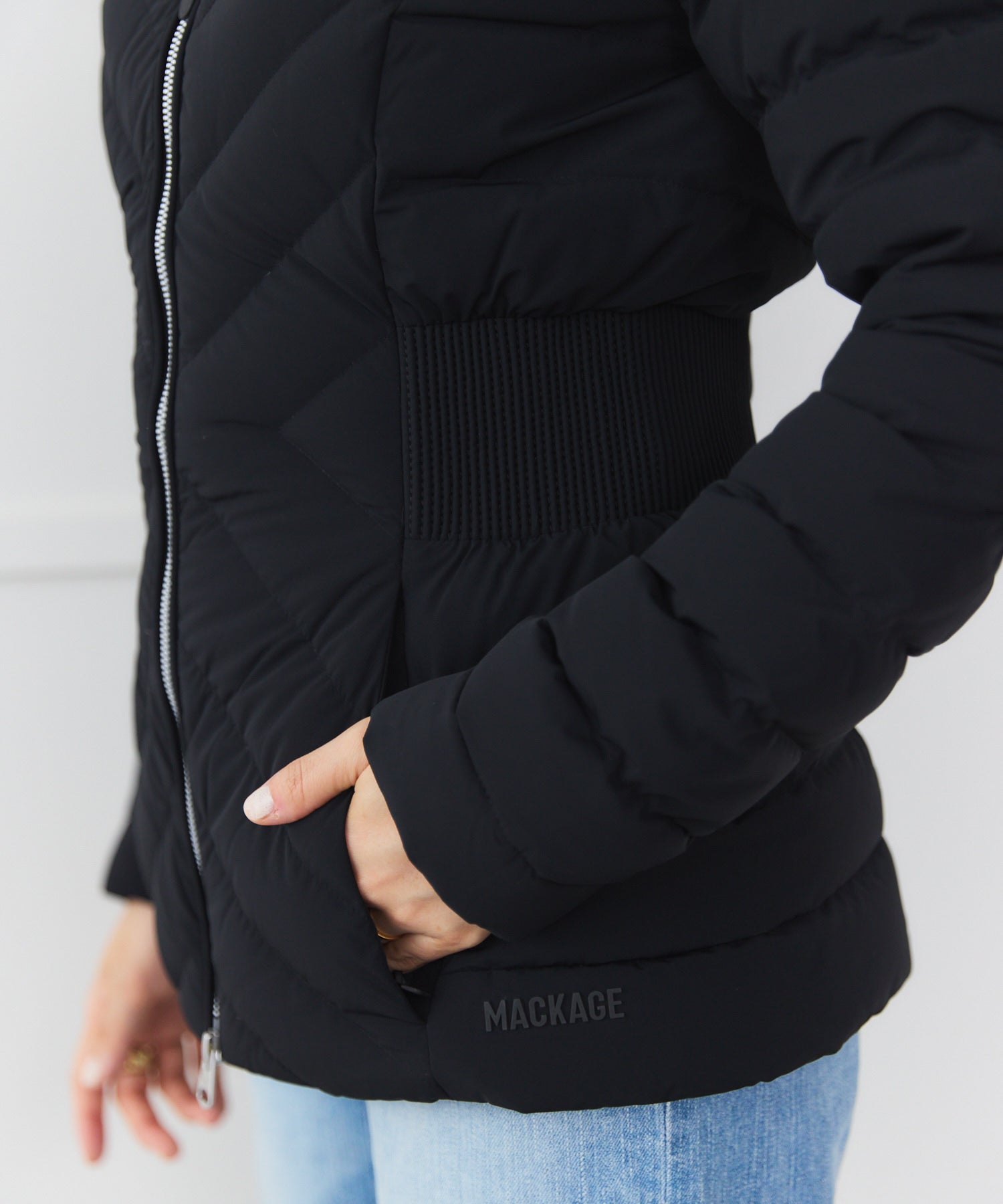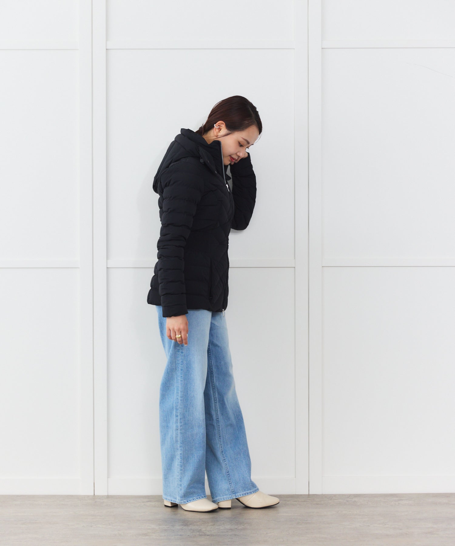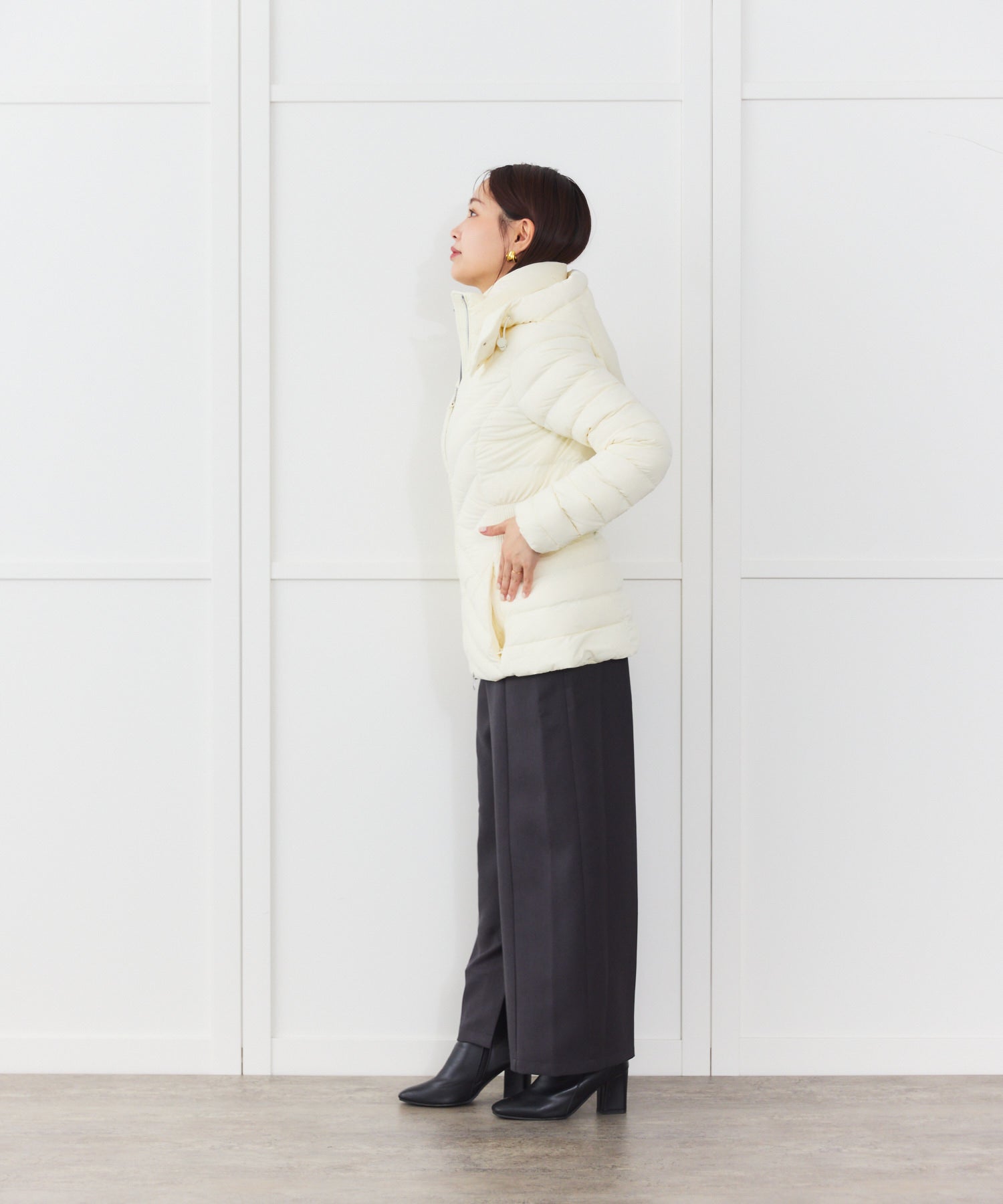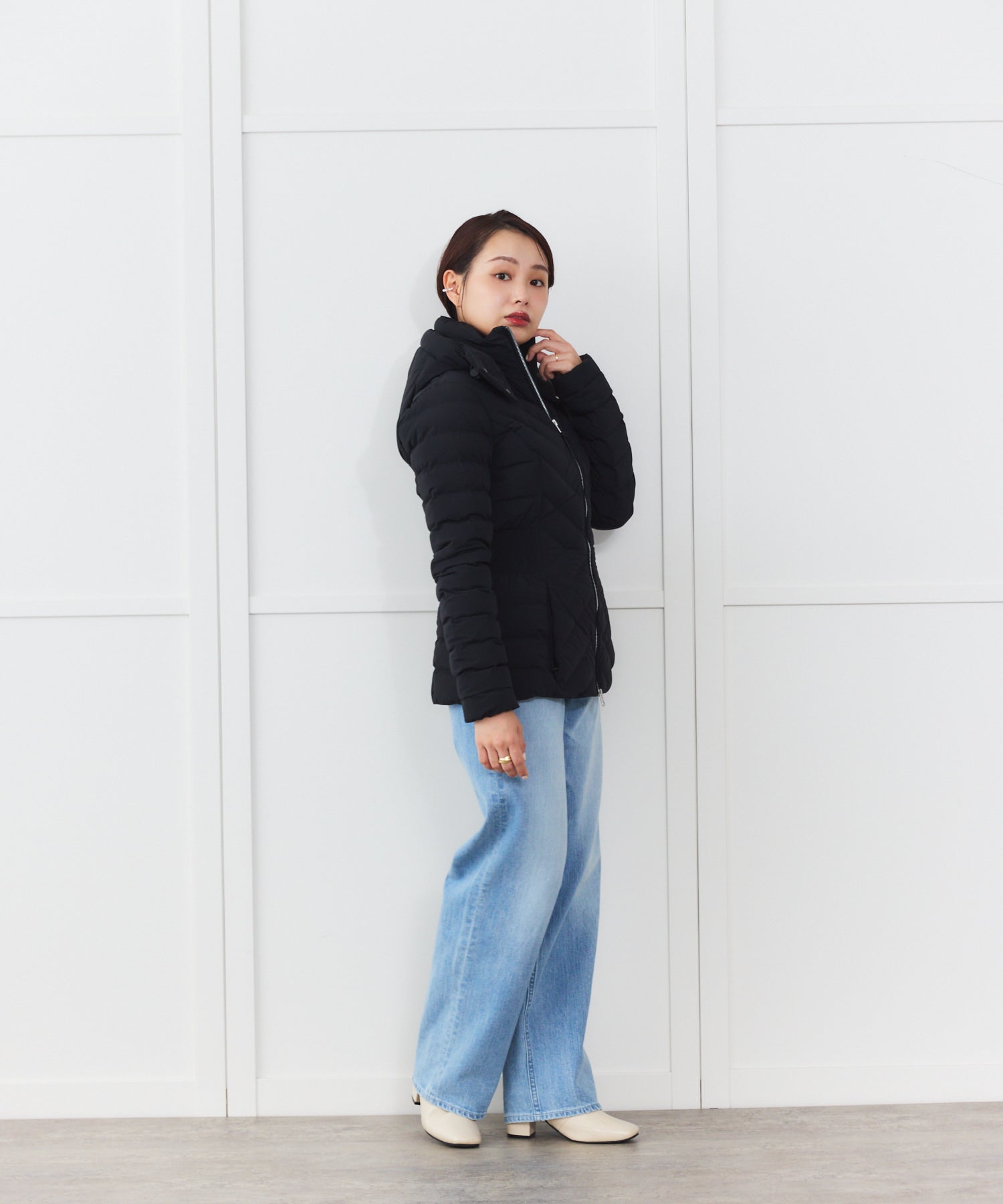 ボディラインを美しく見せる立体的なステッチデザインが特徴で、カジュアルになりがちなダウンも女性らしく上品な印象に。