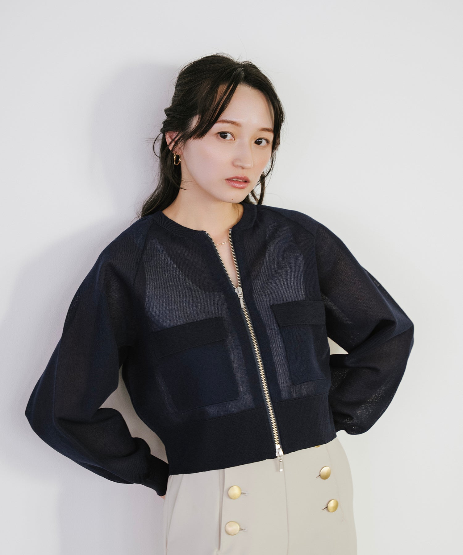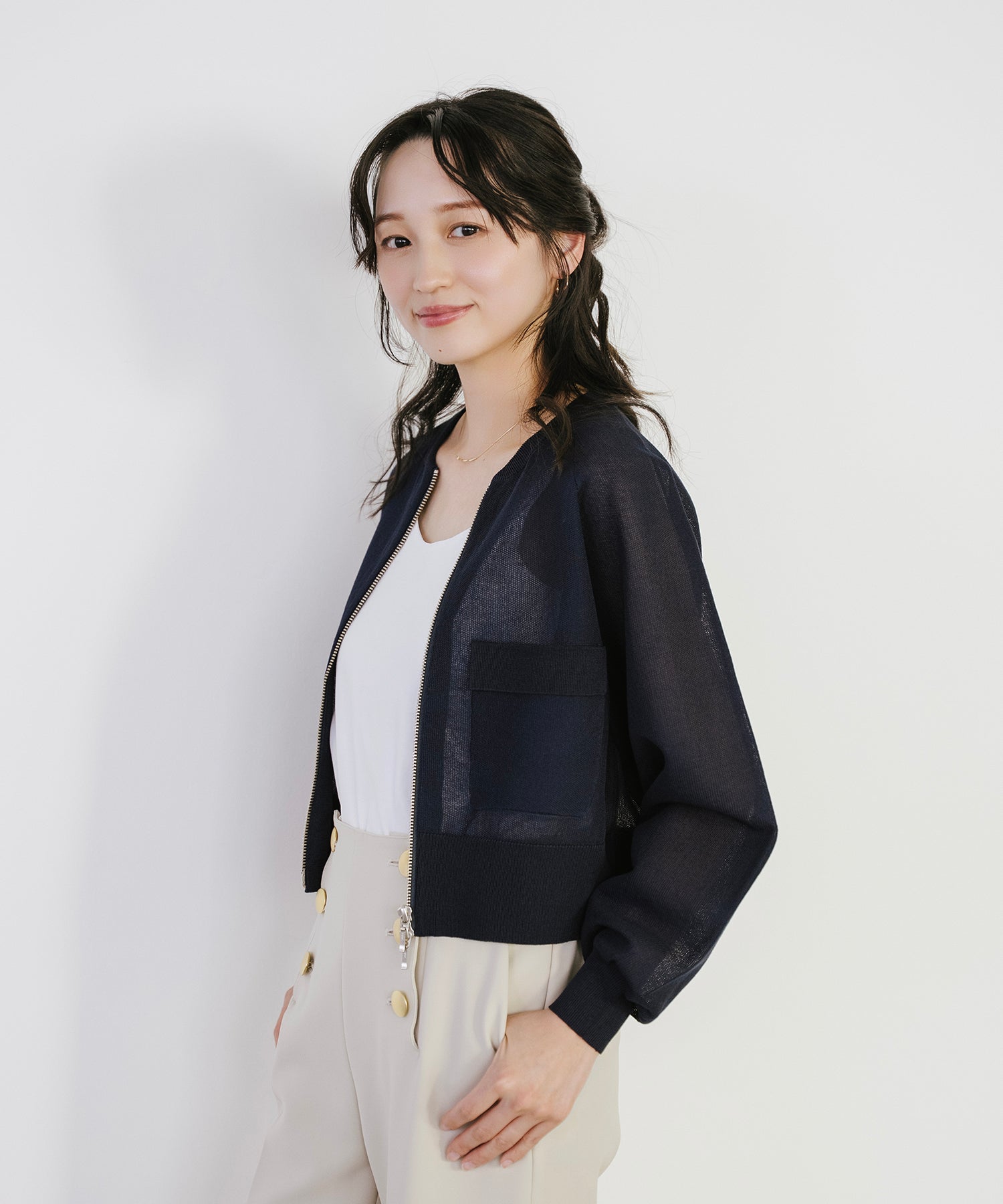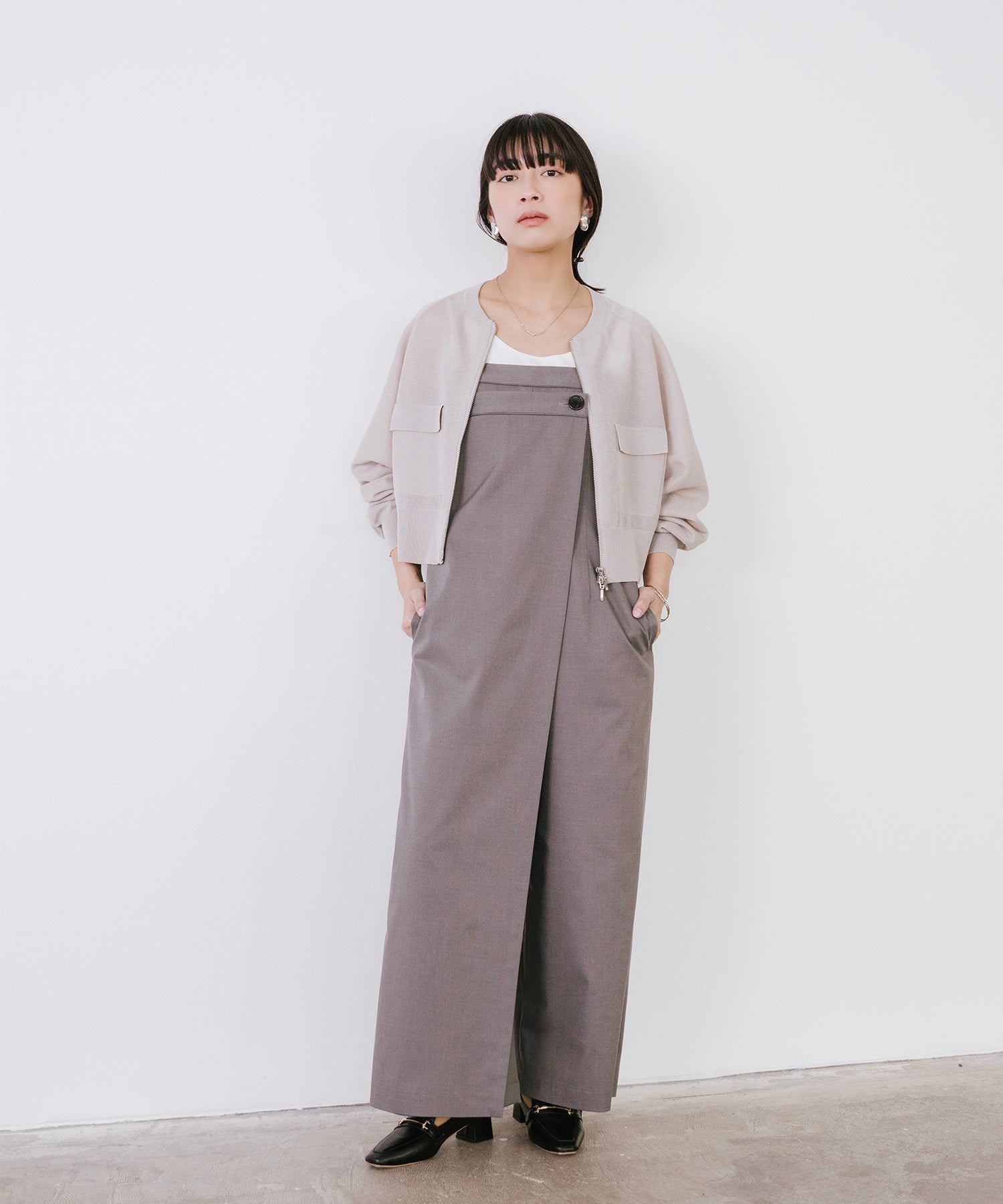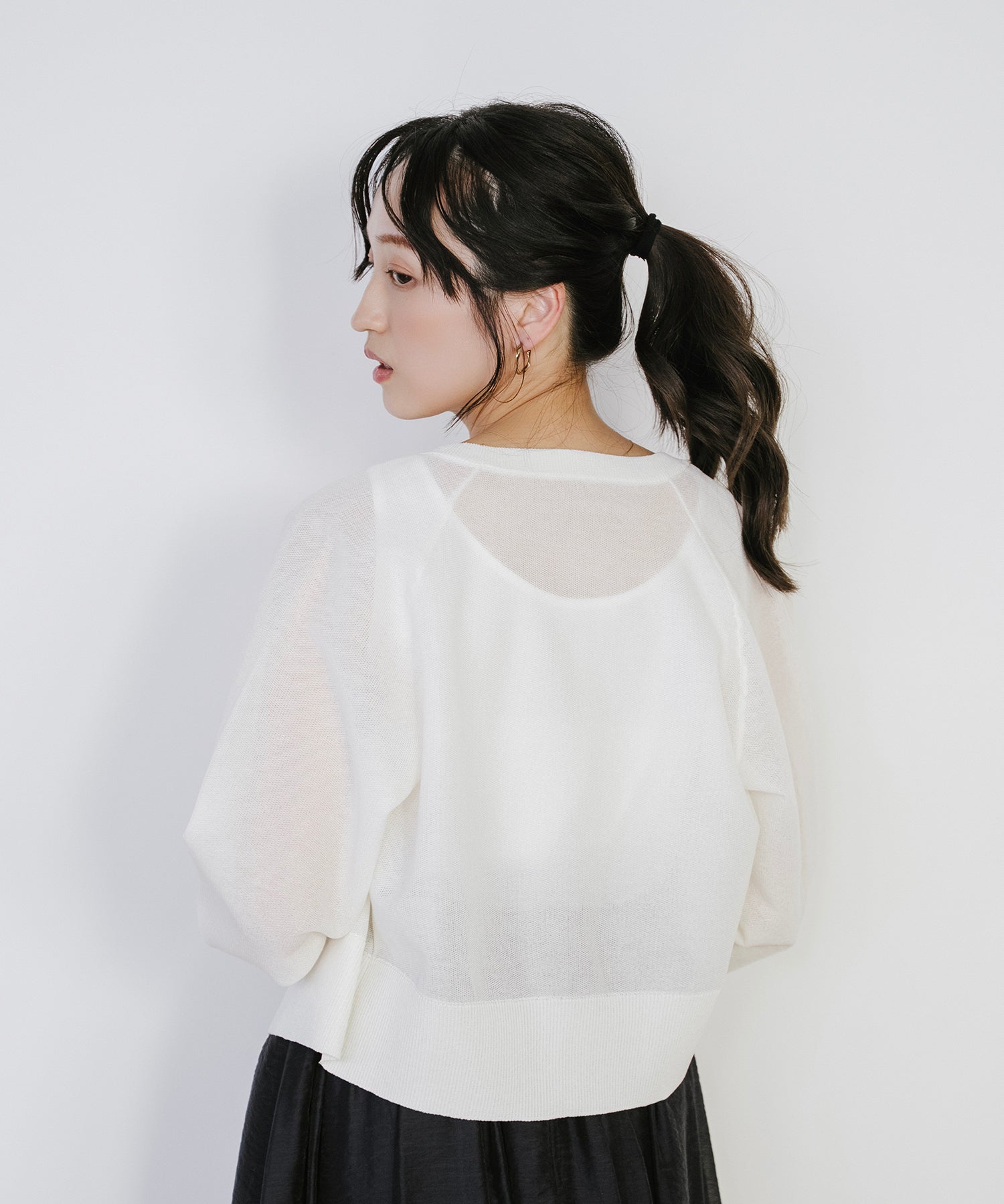 そのまま羽織として着用したり、あえて裾側を開けてスリットを強調するスタイルもオススメ。