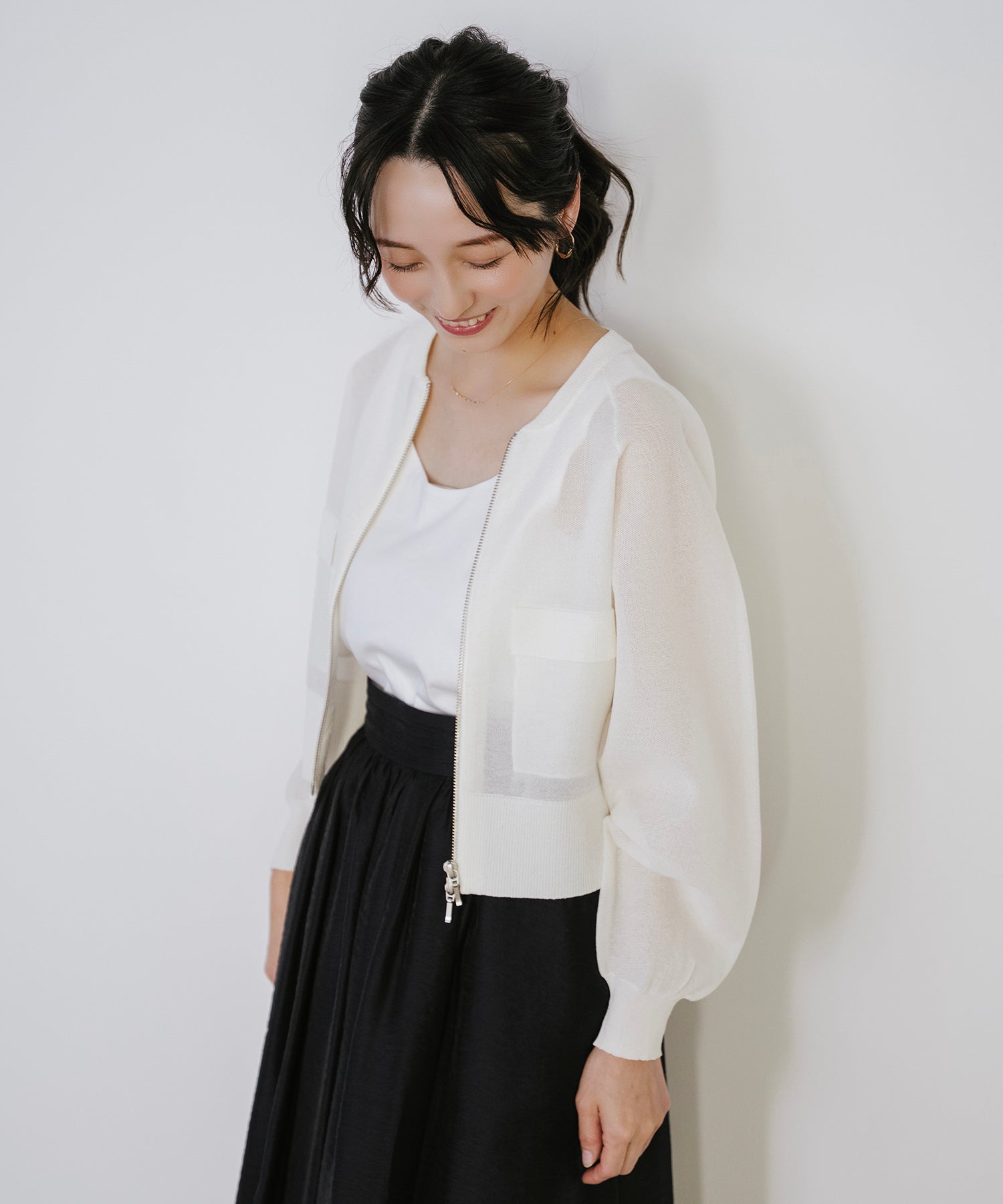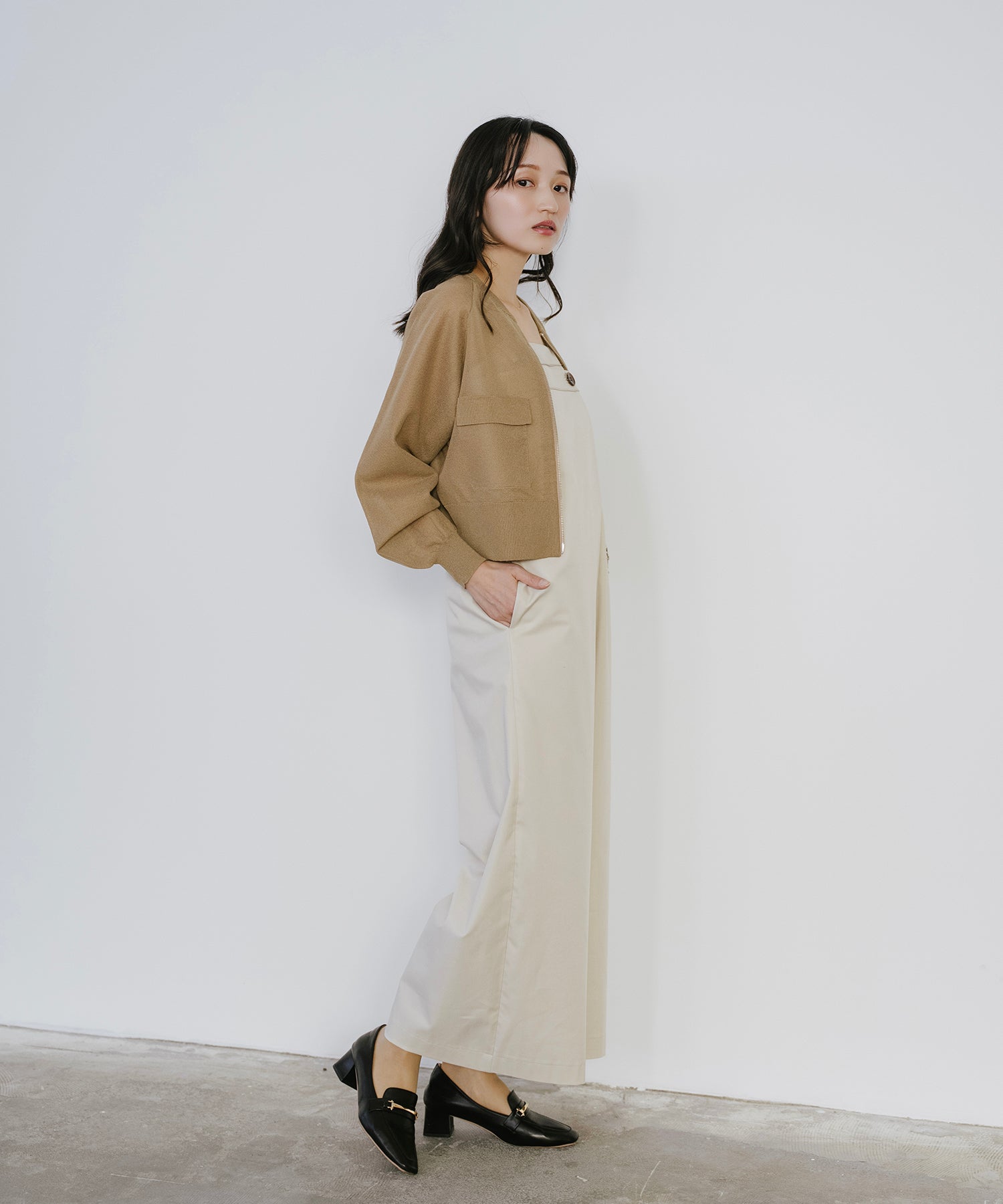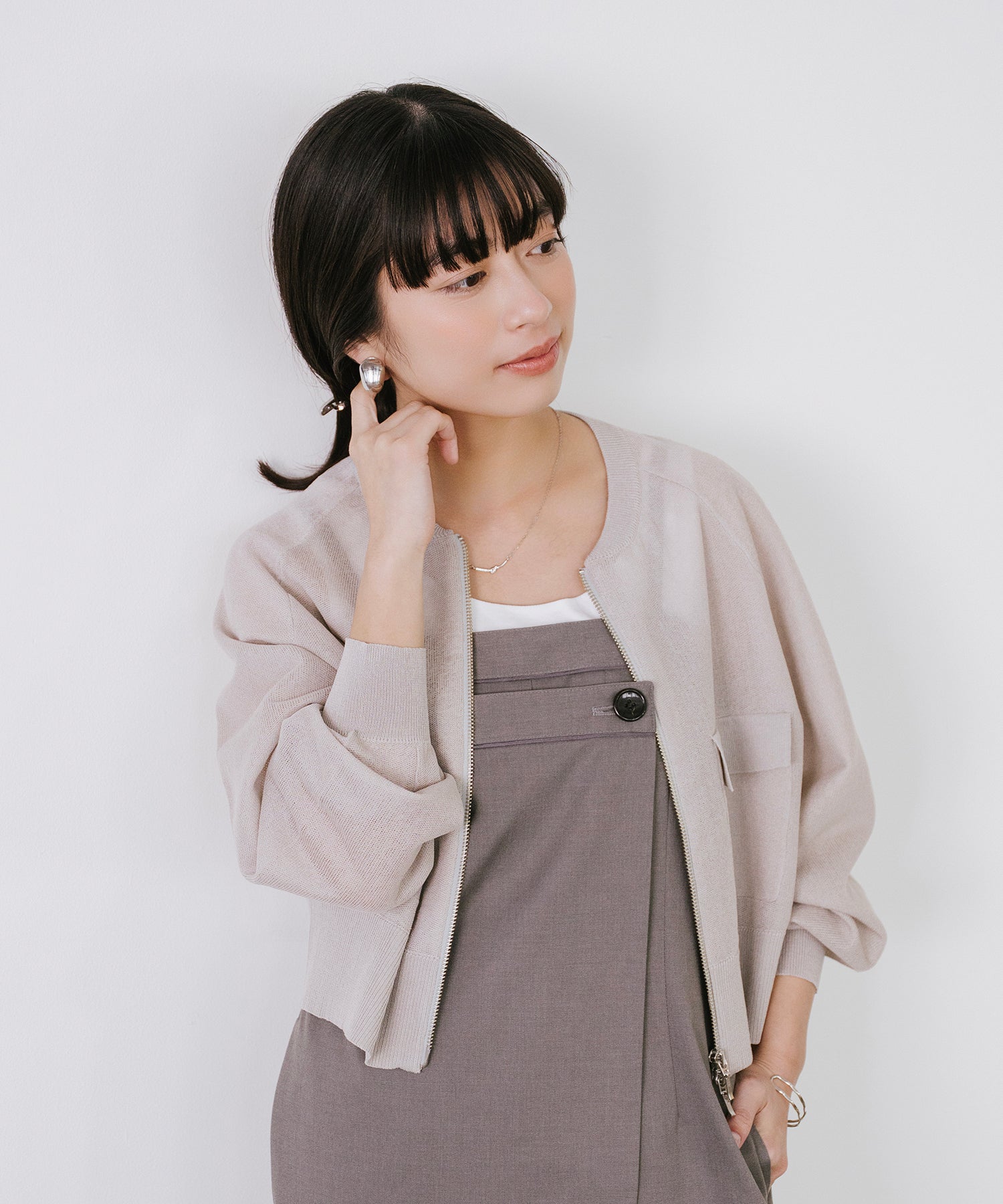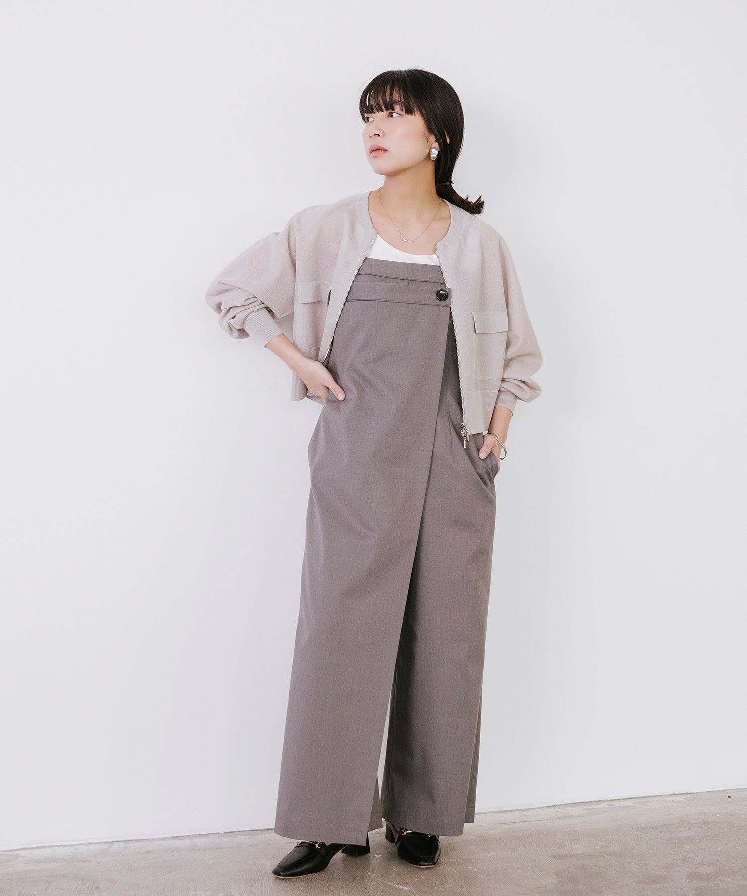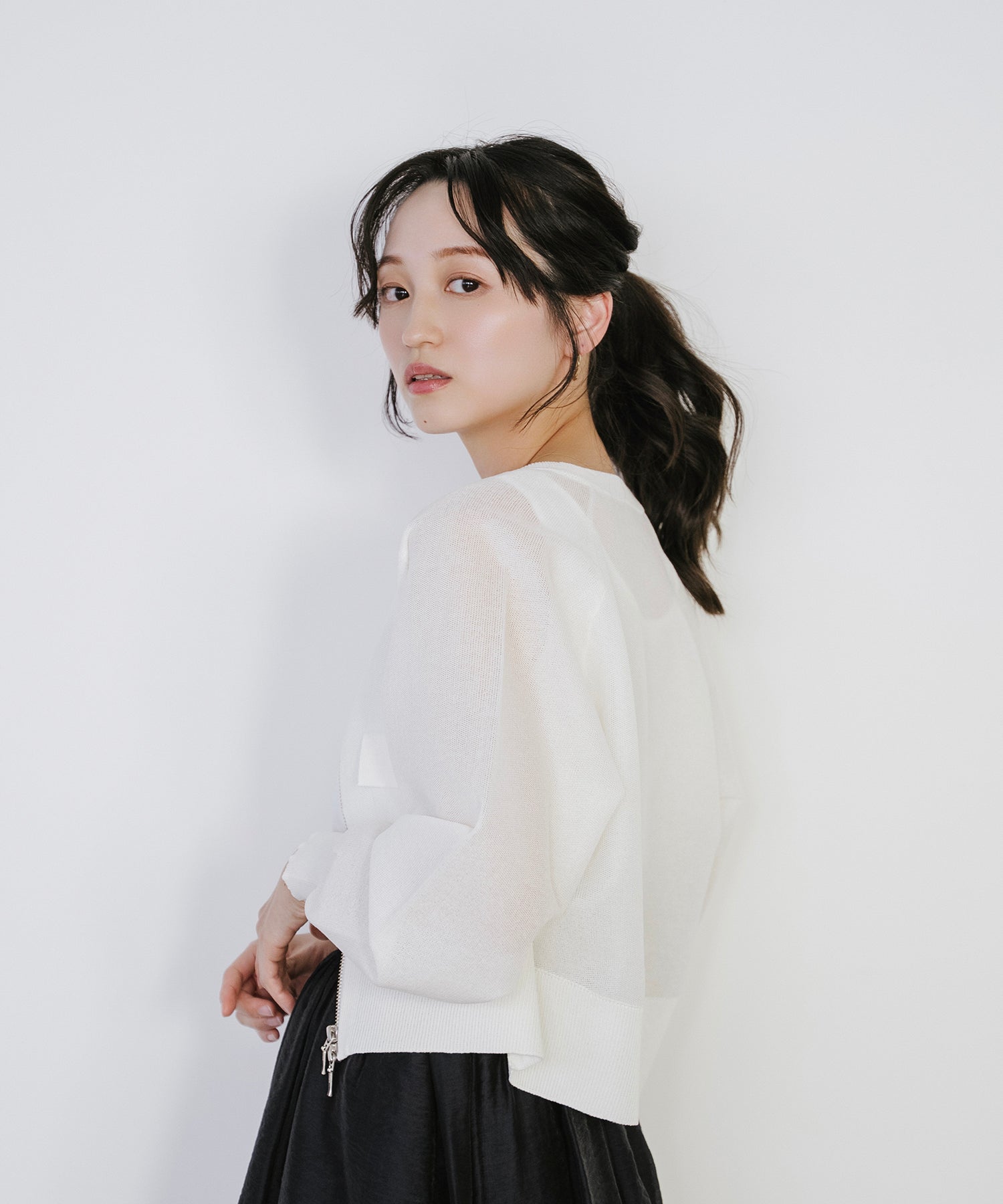 そのまま羽織として着用したり、あえて裾側を開けてスリットを強調するスタイルもオススメ。