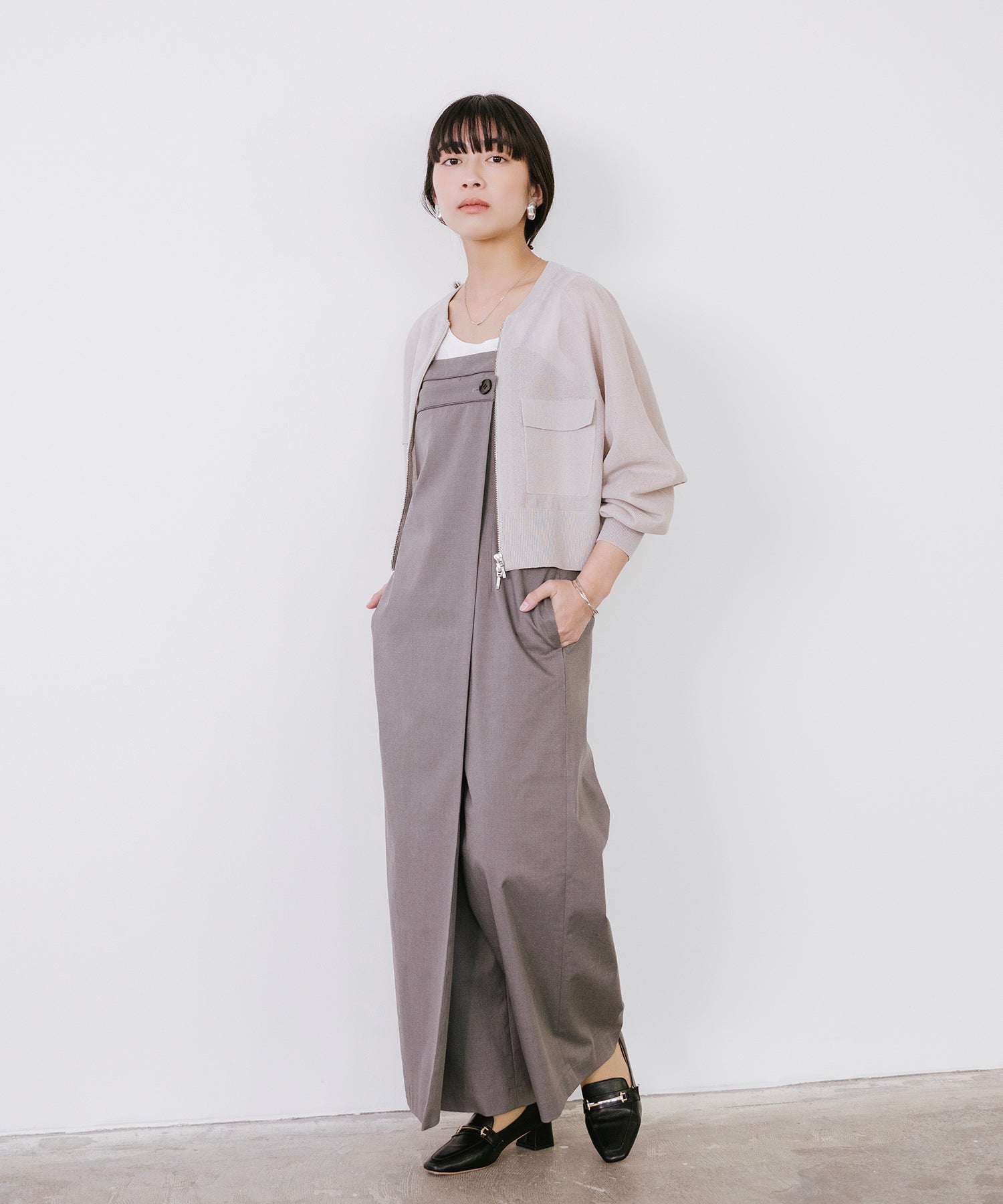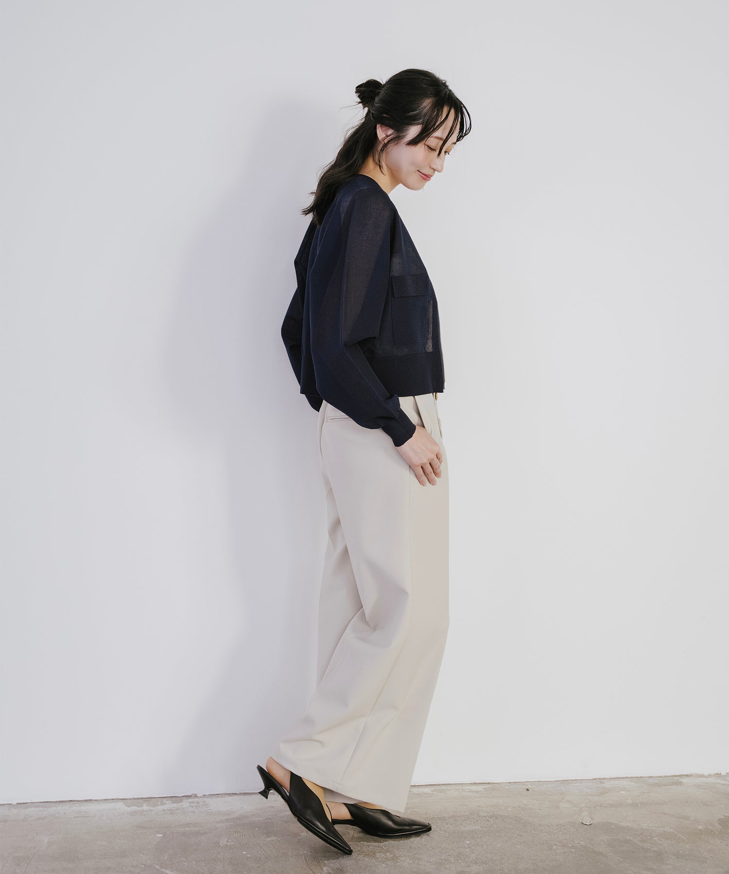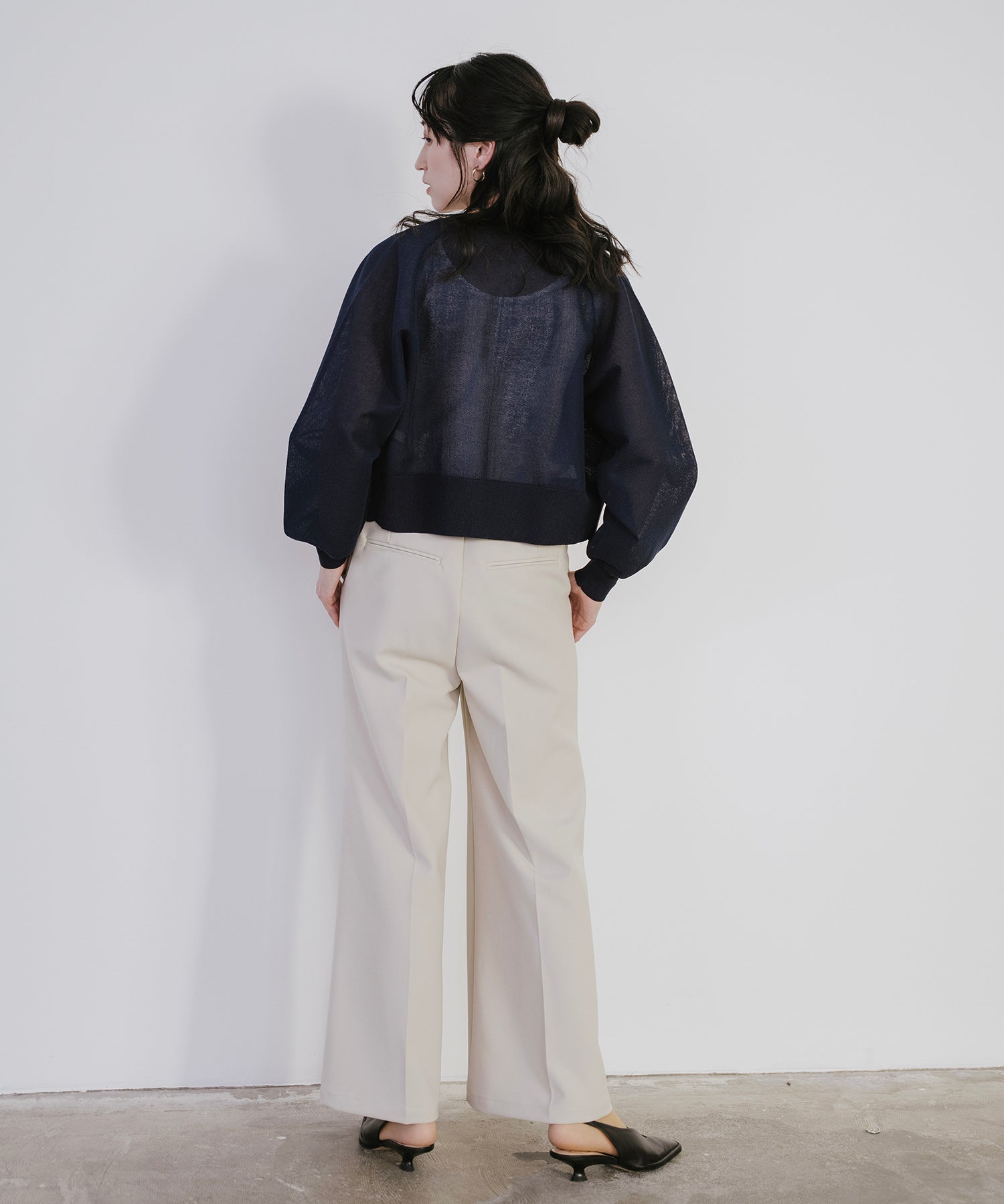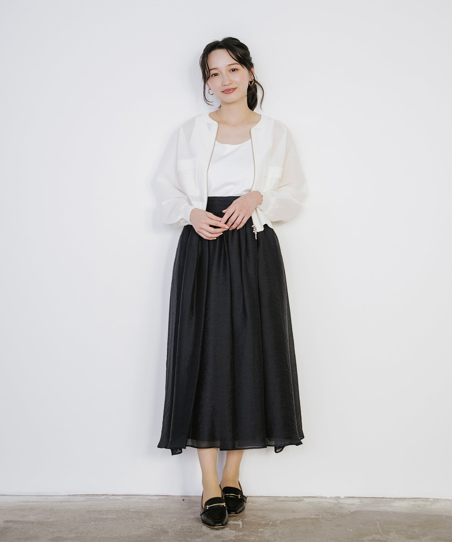 そのまま羽織として着用したり、あえて裾側を開けてスリットを強調するスタイルもオススメ。