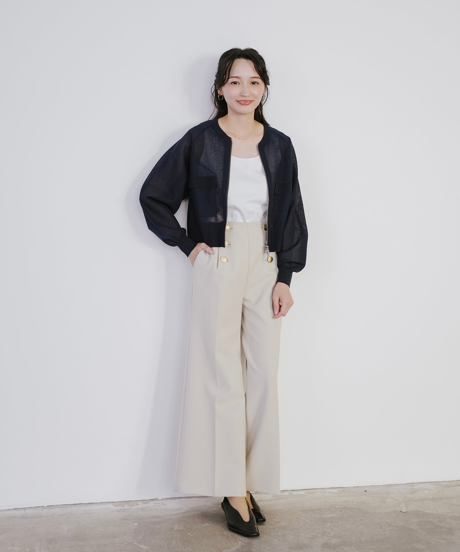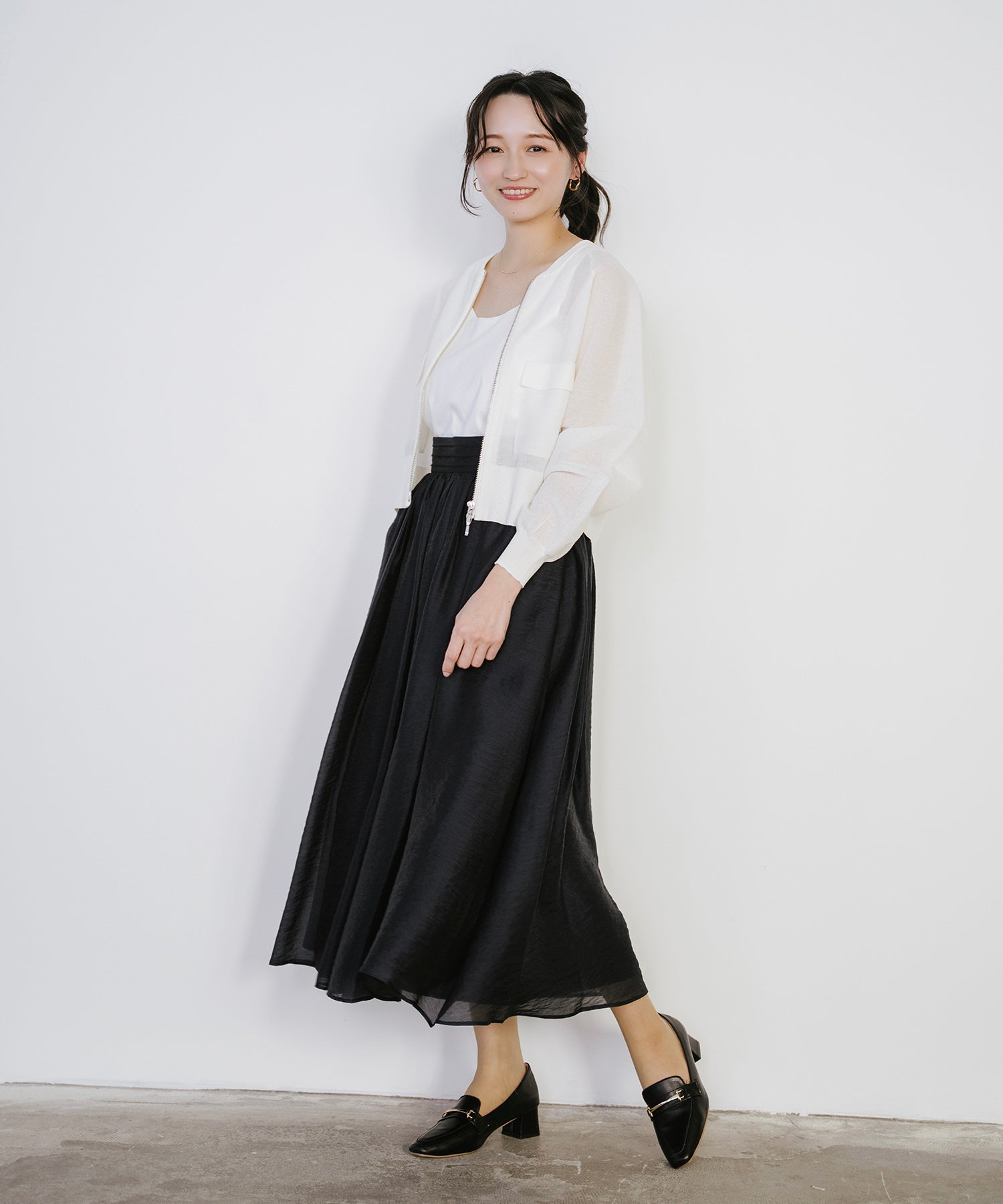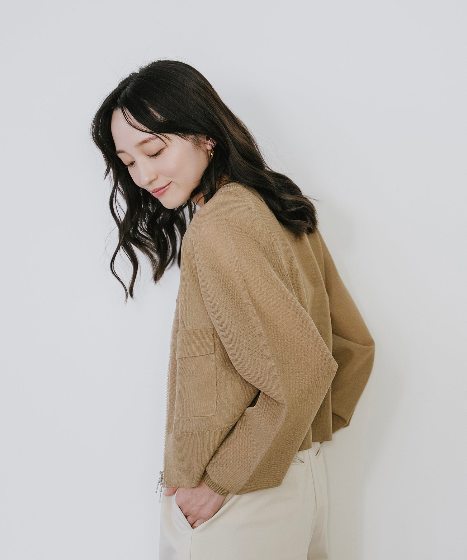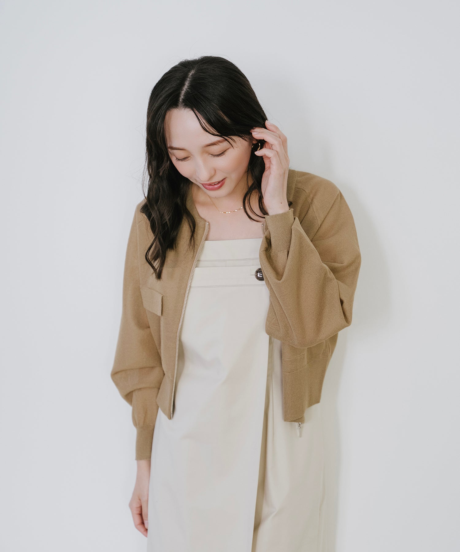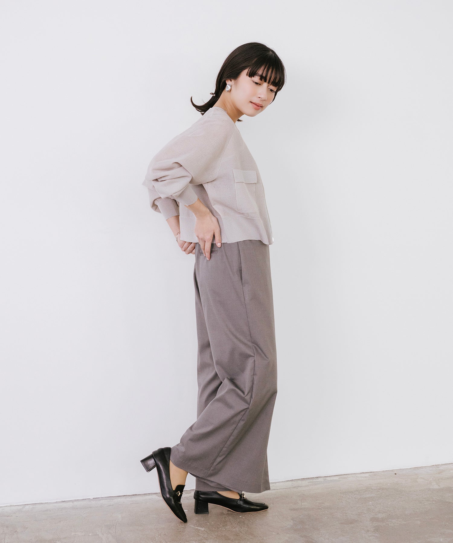そのまま羽織として着用したり、あえて裾側を開けてスリットを強調するスタイルもオススメ。