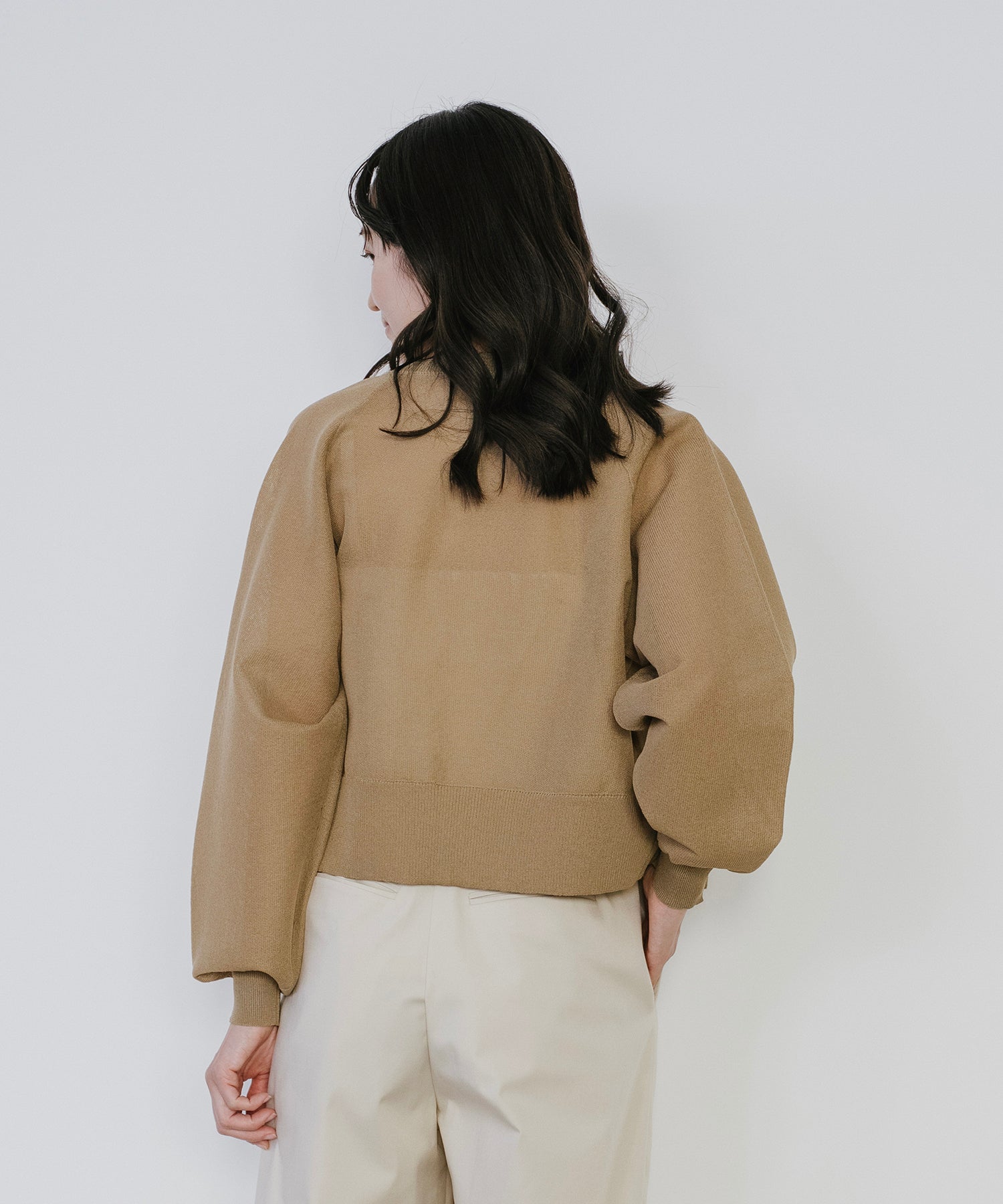 ラグランスリーブで肩ラインに程よくなじみ、インナーも着易い身幅を確保。