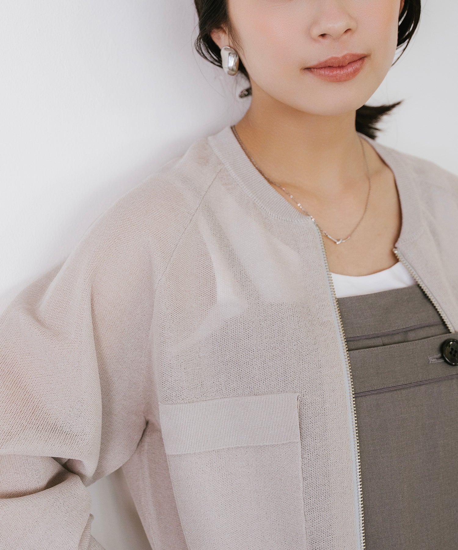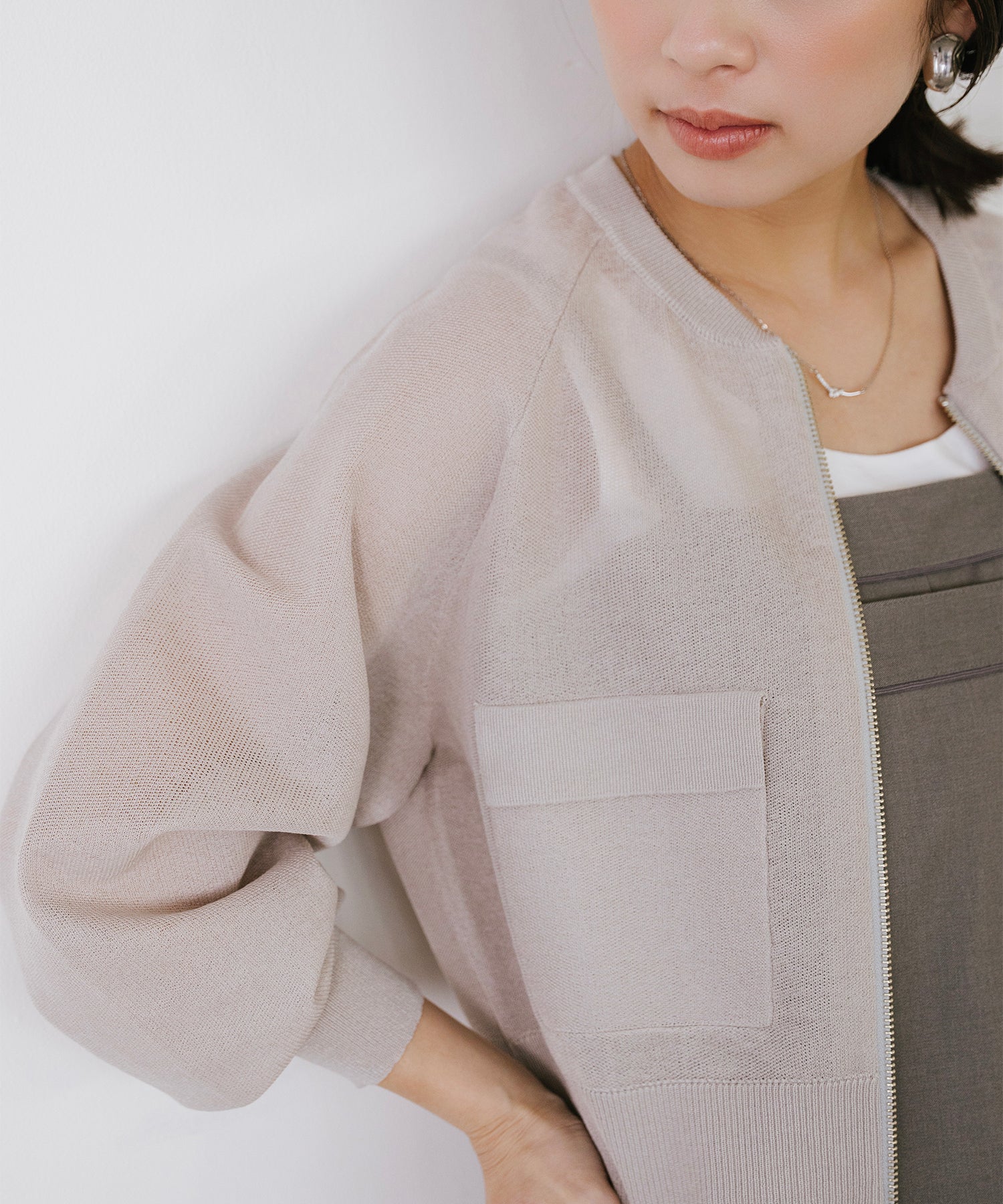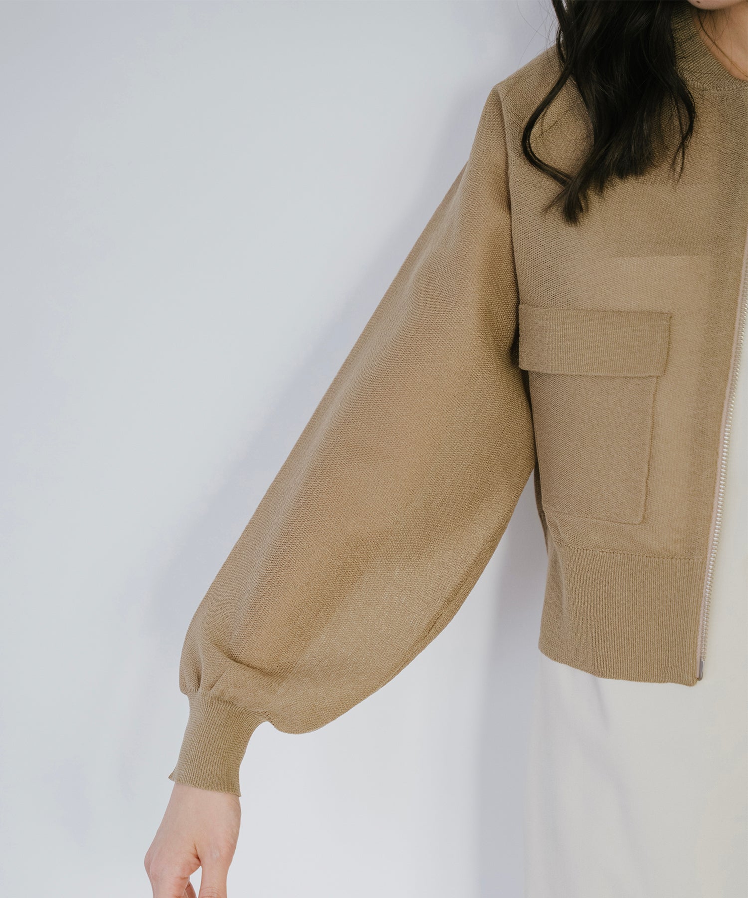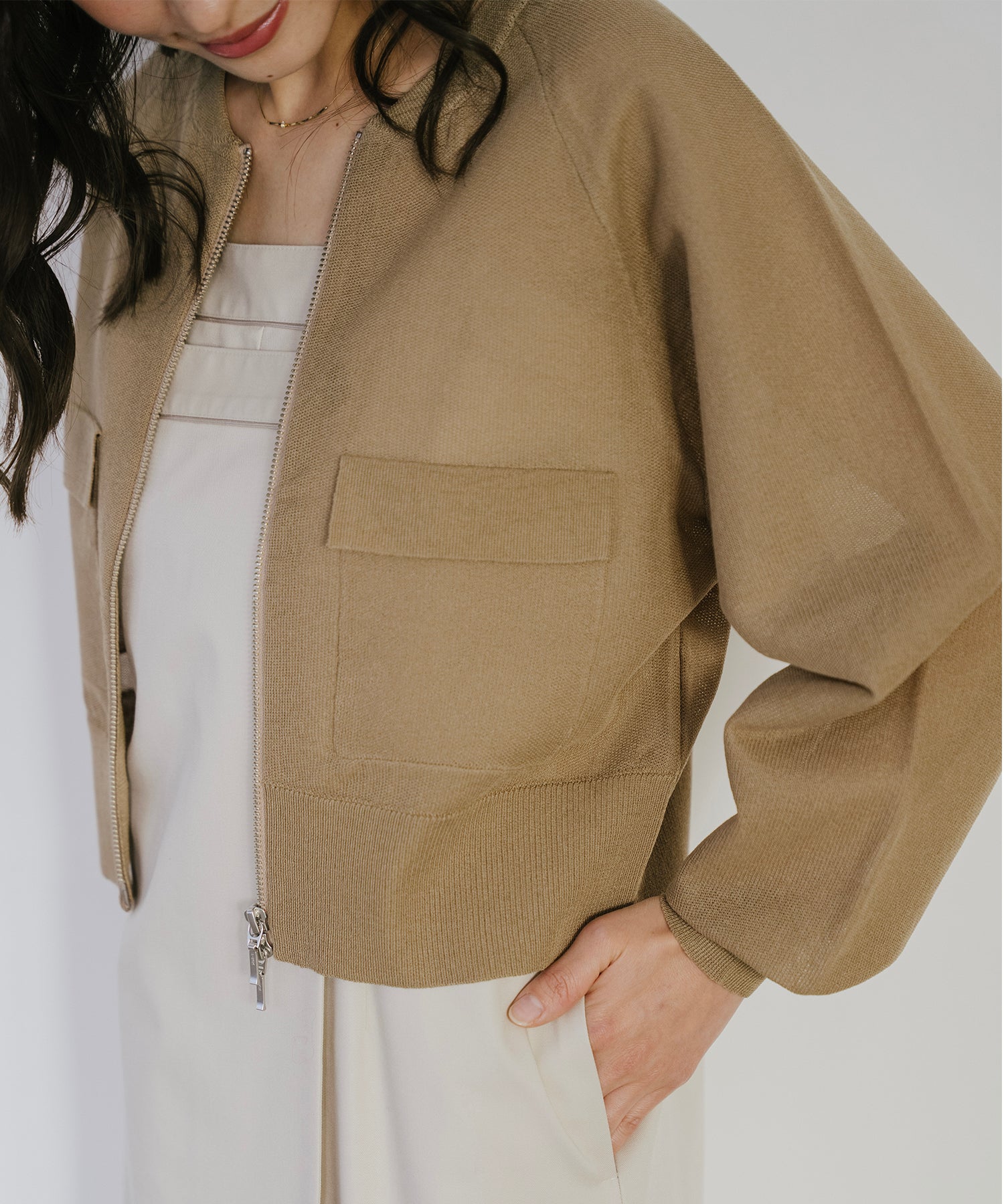 リネンライクで清涼感◎ ショート丈ニットブルゾン