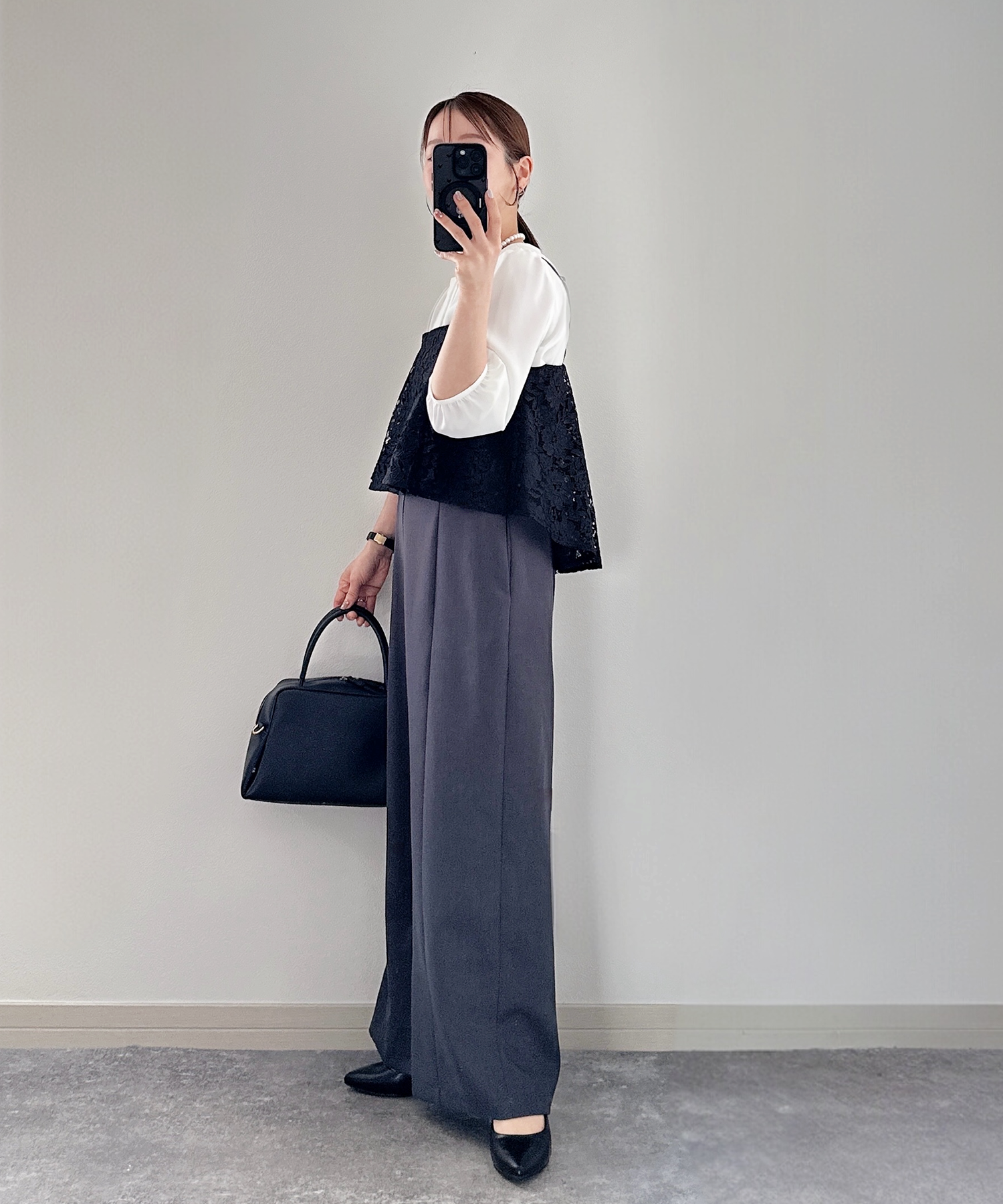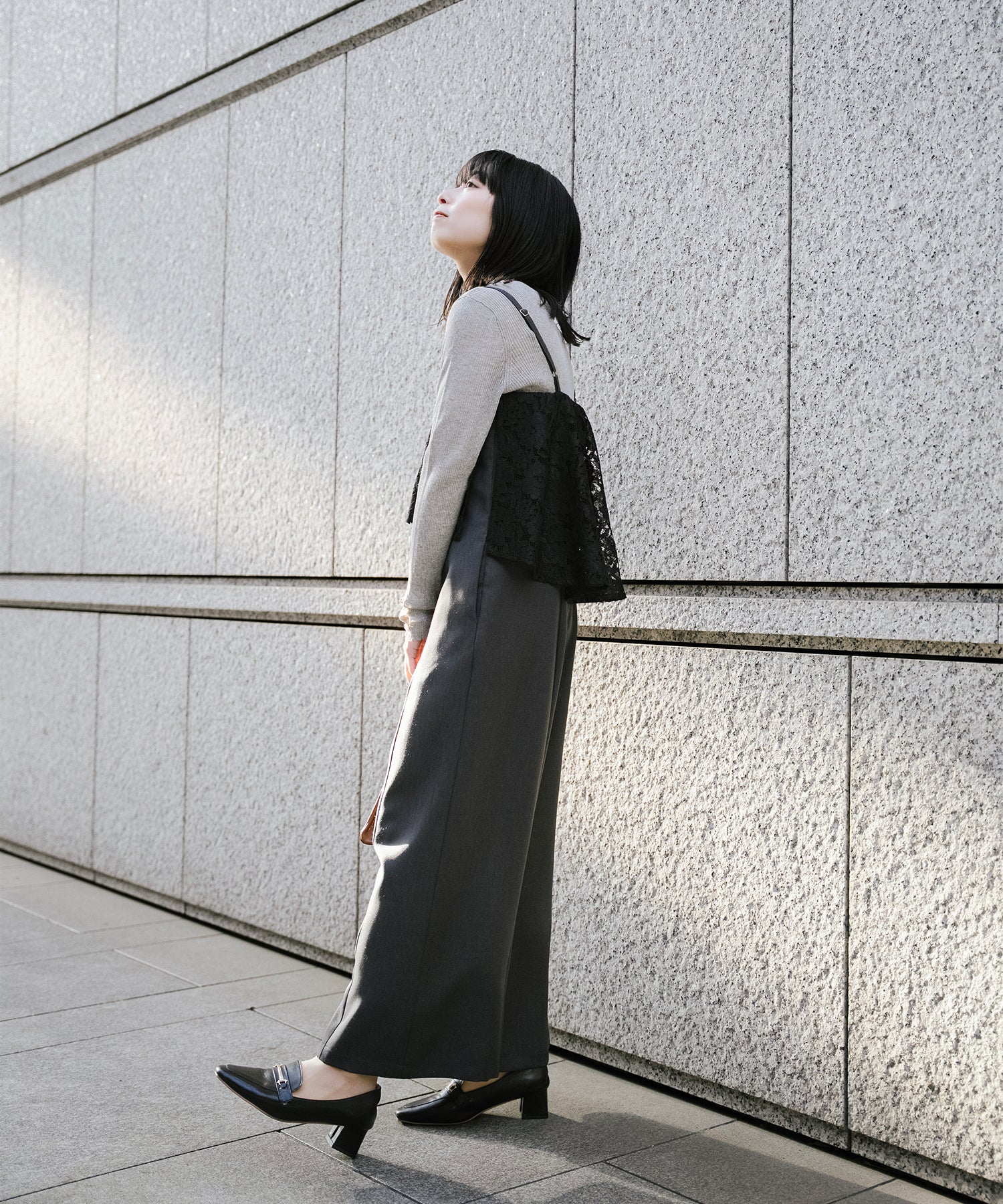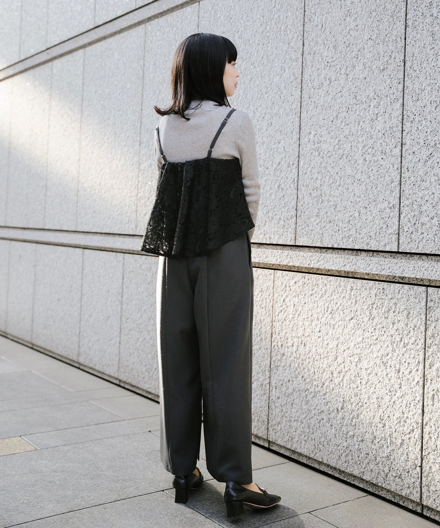 フルレングス丈でストレートに落ちるゆとりのあるシルエット。