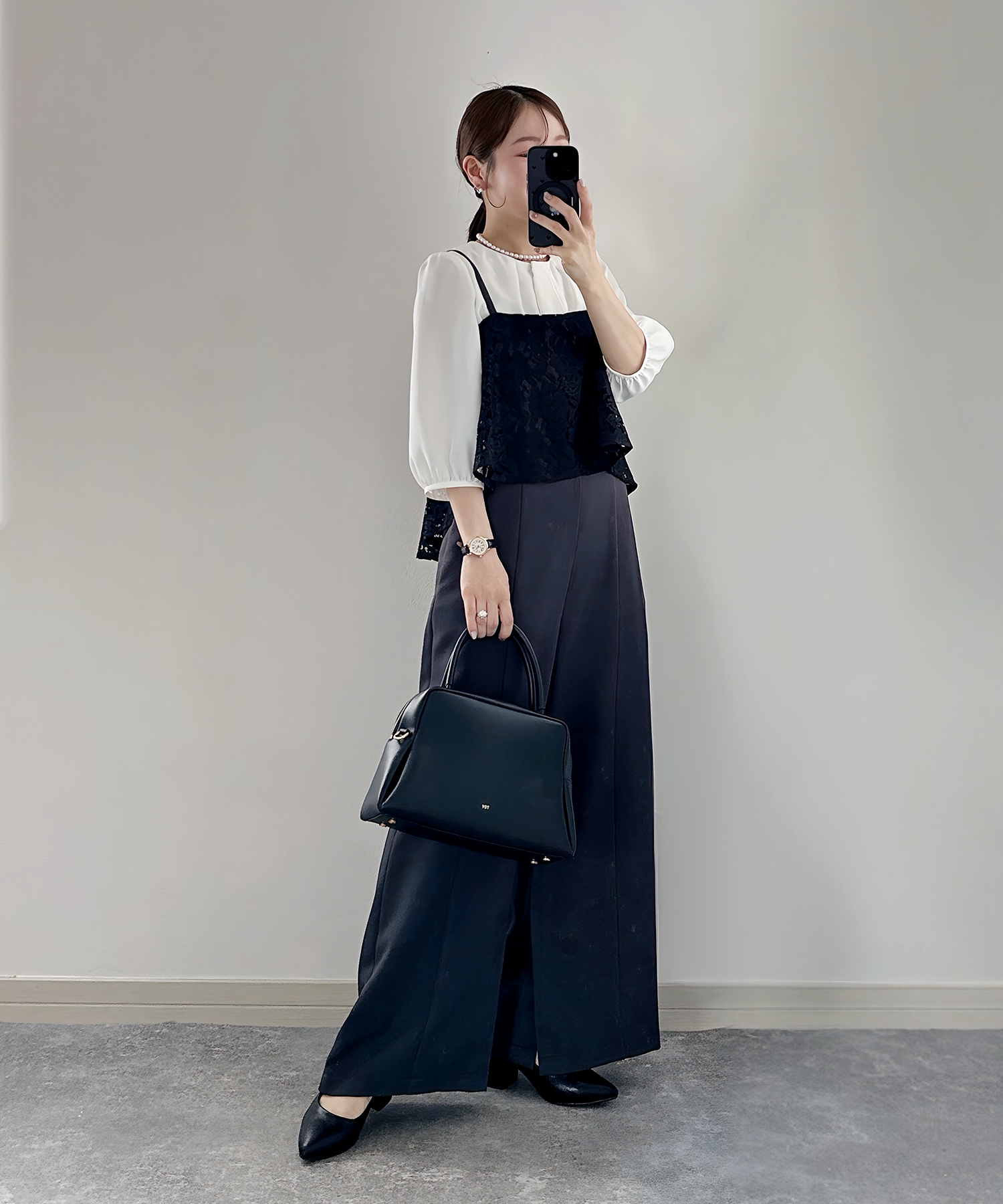 胸元から伸びるセンターシーム入りで足元までスッキリ見え。