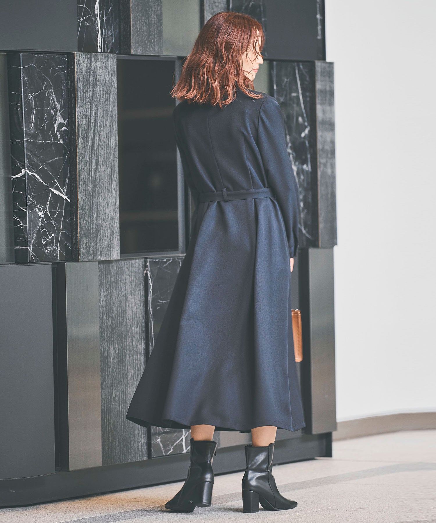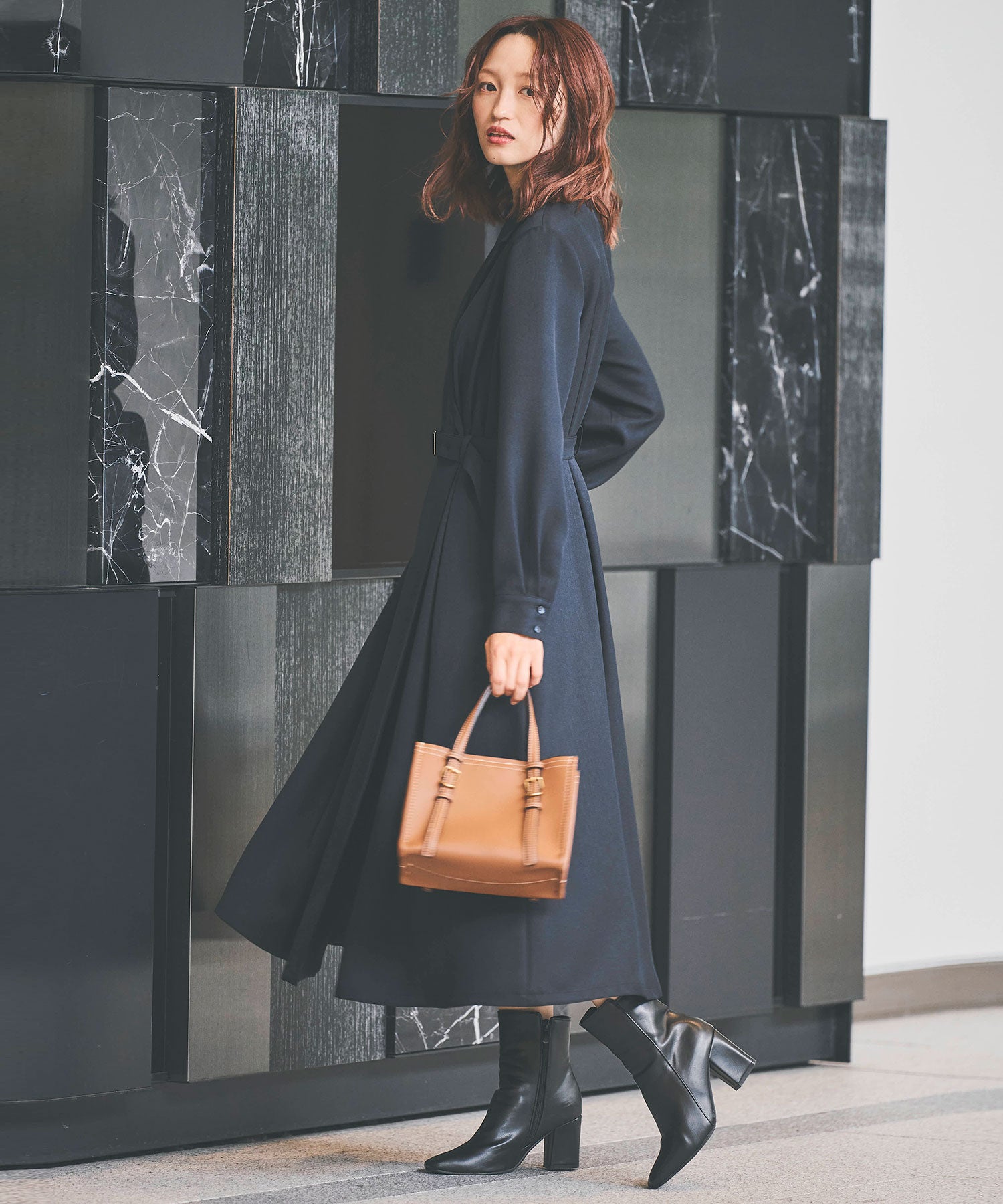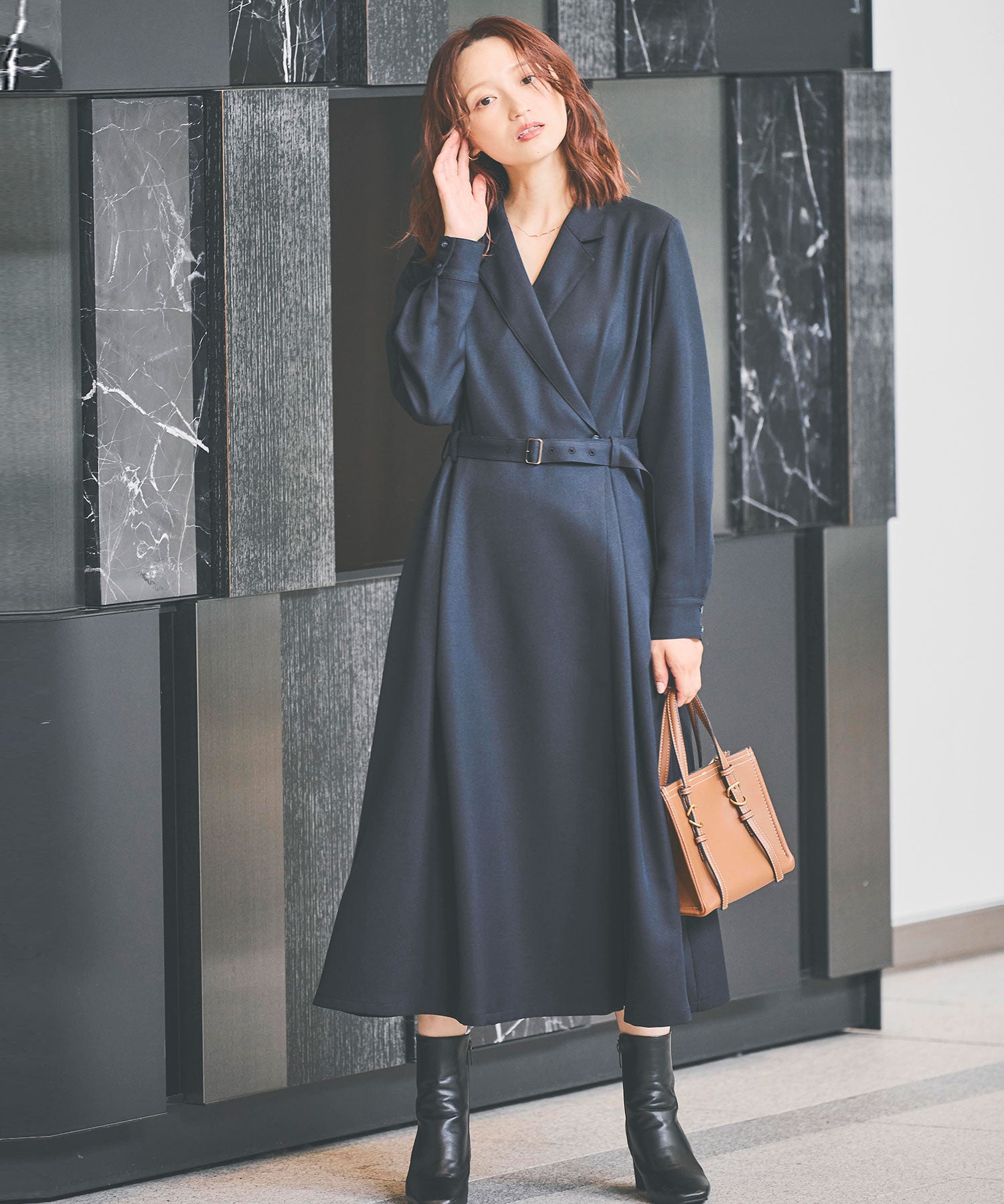 華奢な共布ベルト付きで上品に、きちんと感もプラス