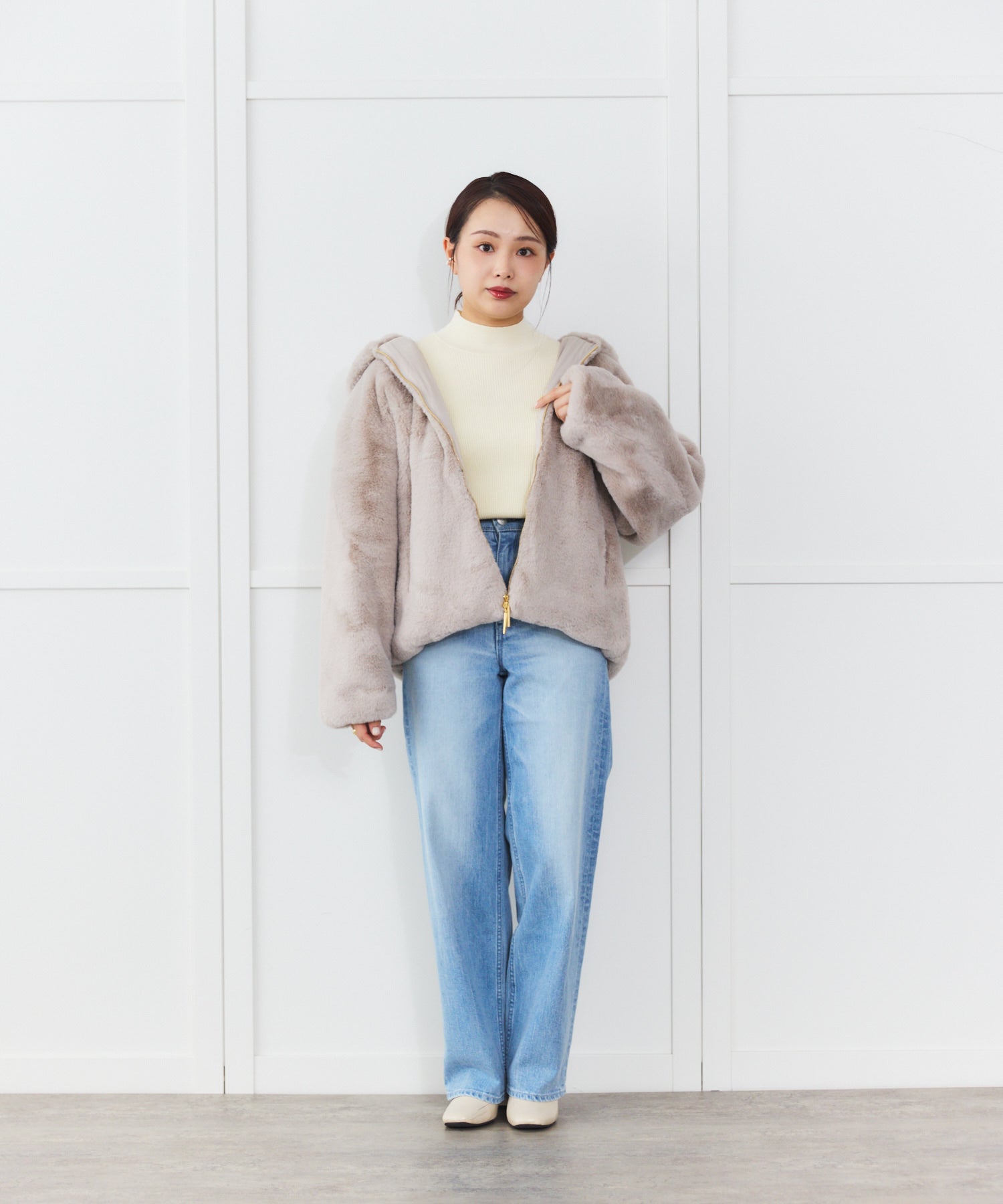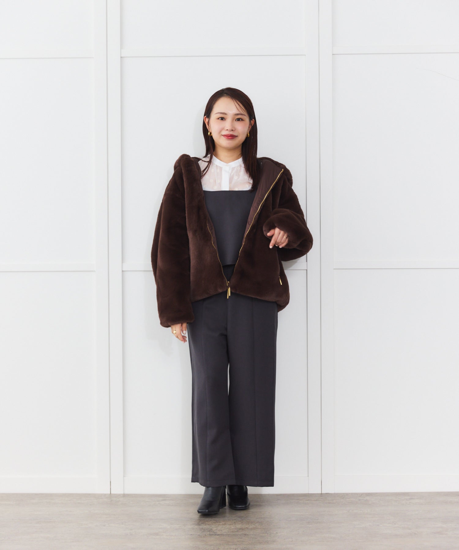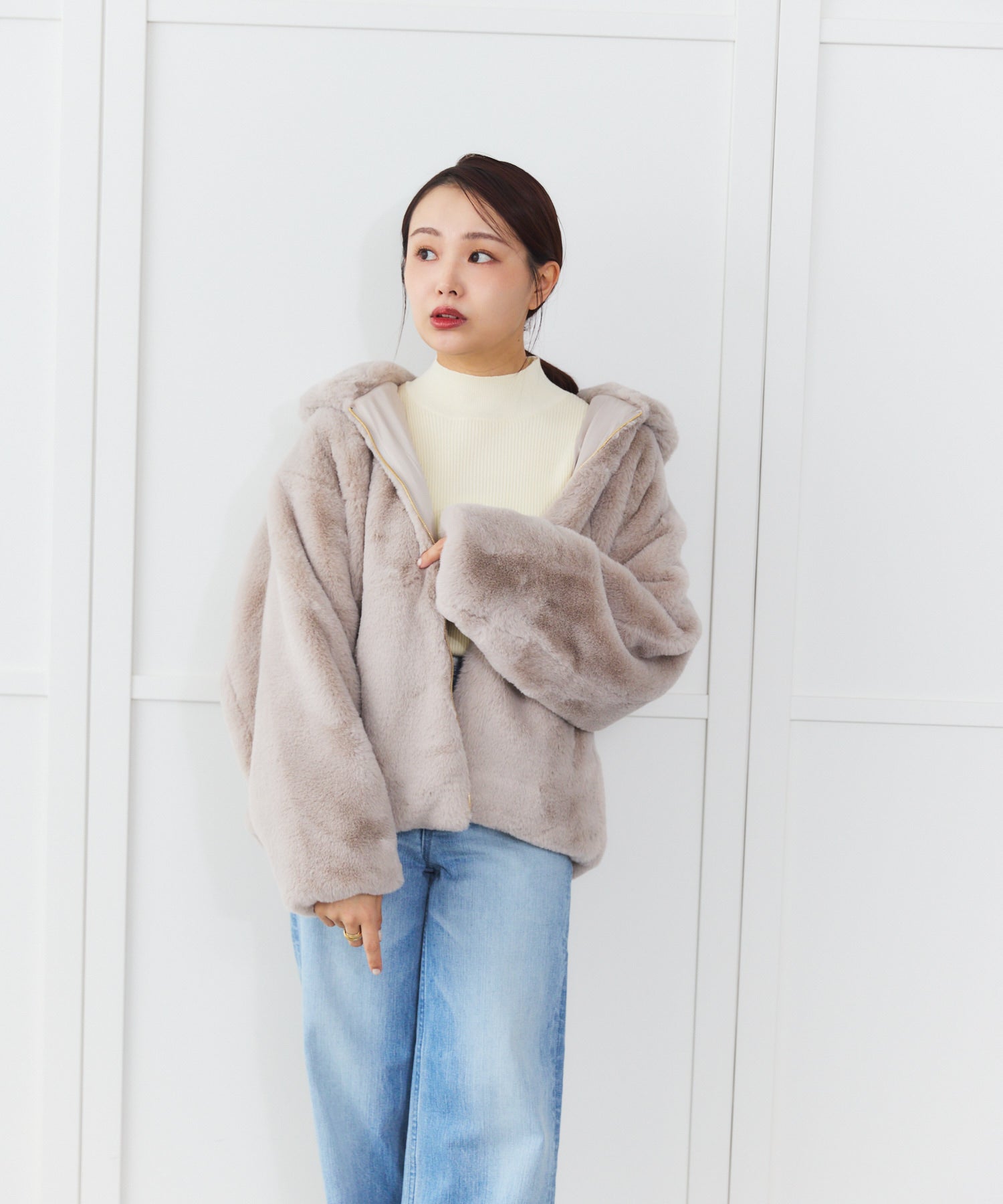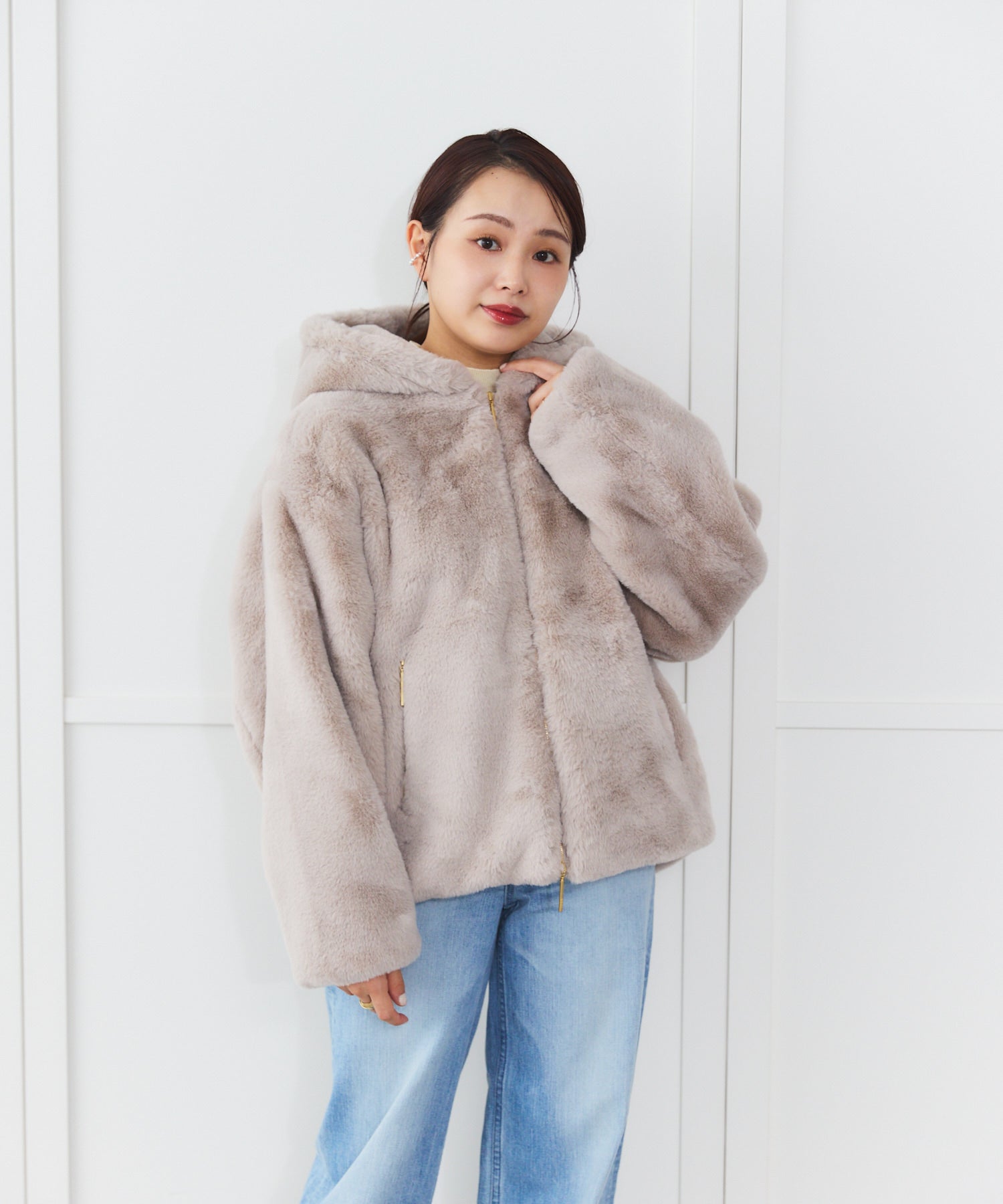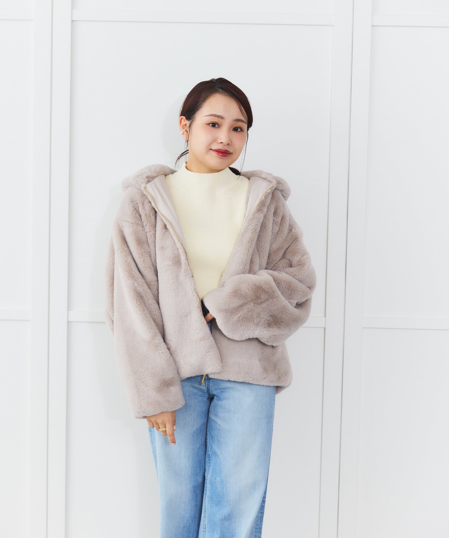 上品なツヤ感のある毛足の長いファーとボリュームのあるシルエットが大人コーデにぴったりのアイテム