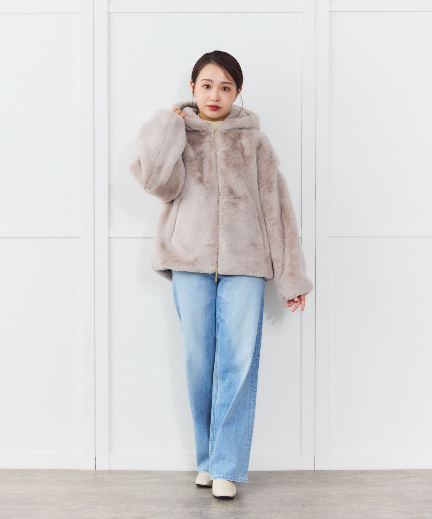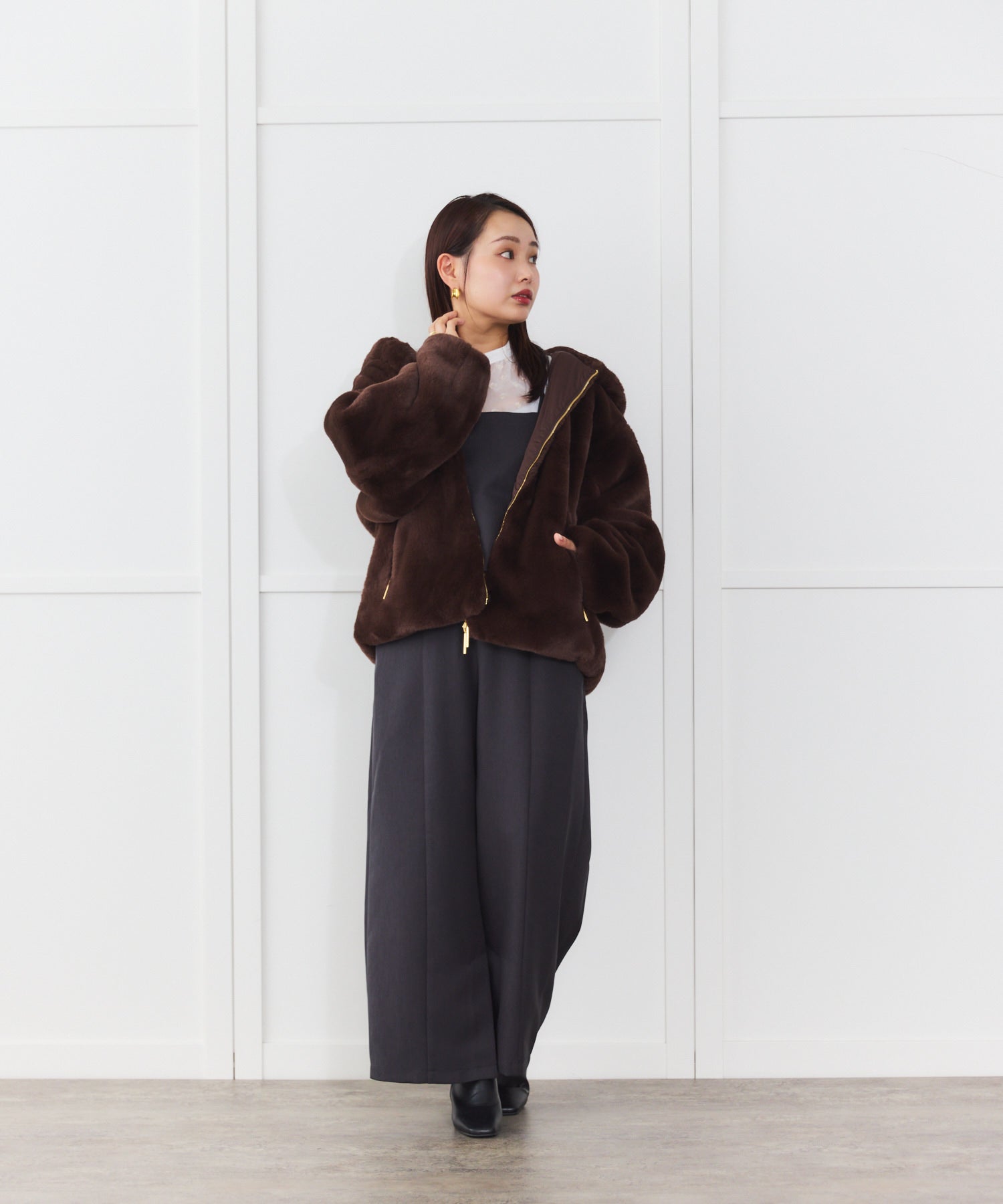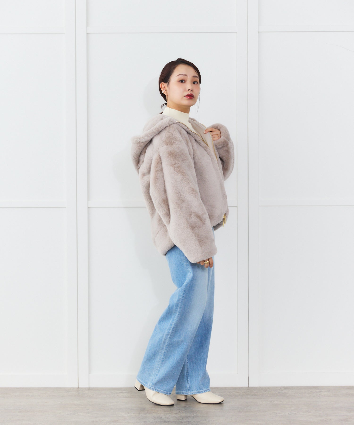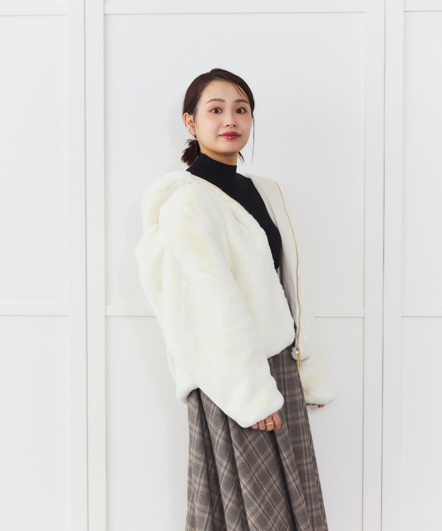上品なツヤ感のある毛足の長いファーとボリュームのあるシルエットが大人コーデにぴったりのアイテム
