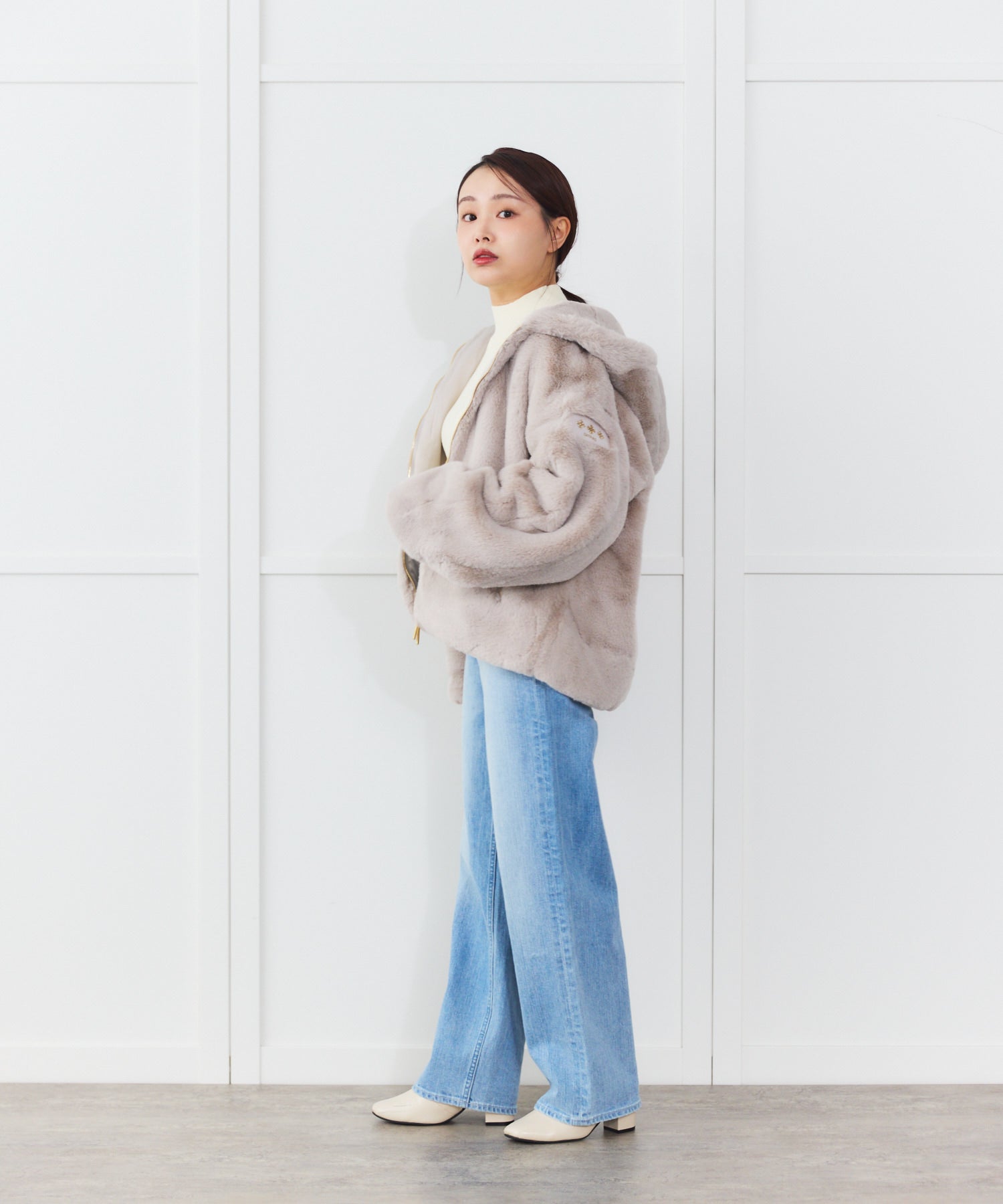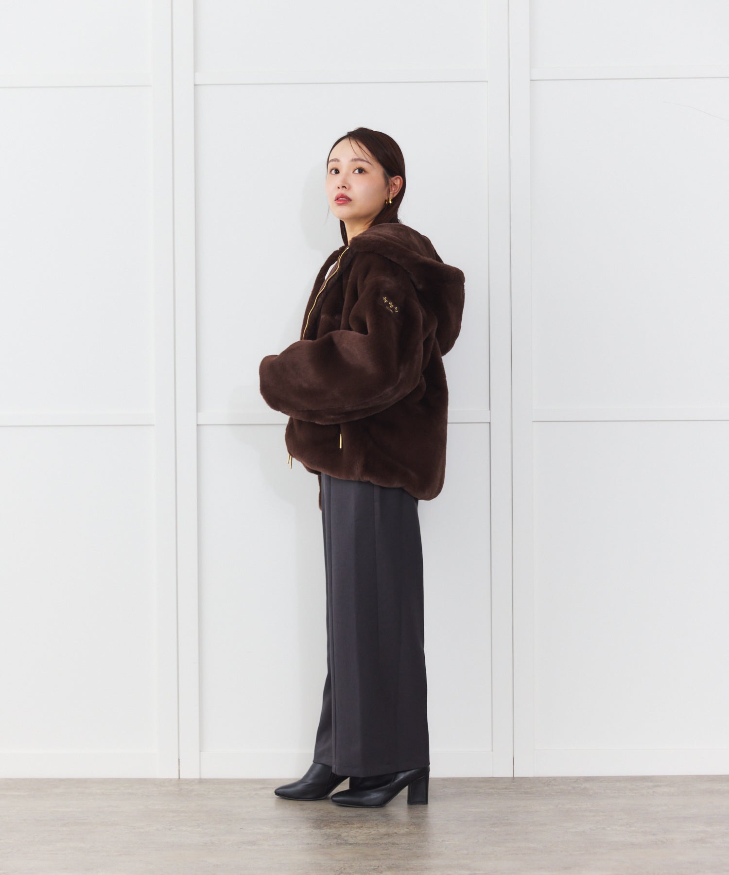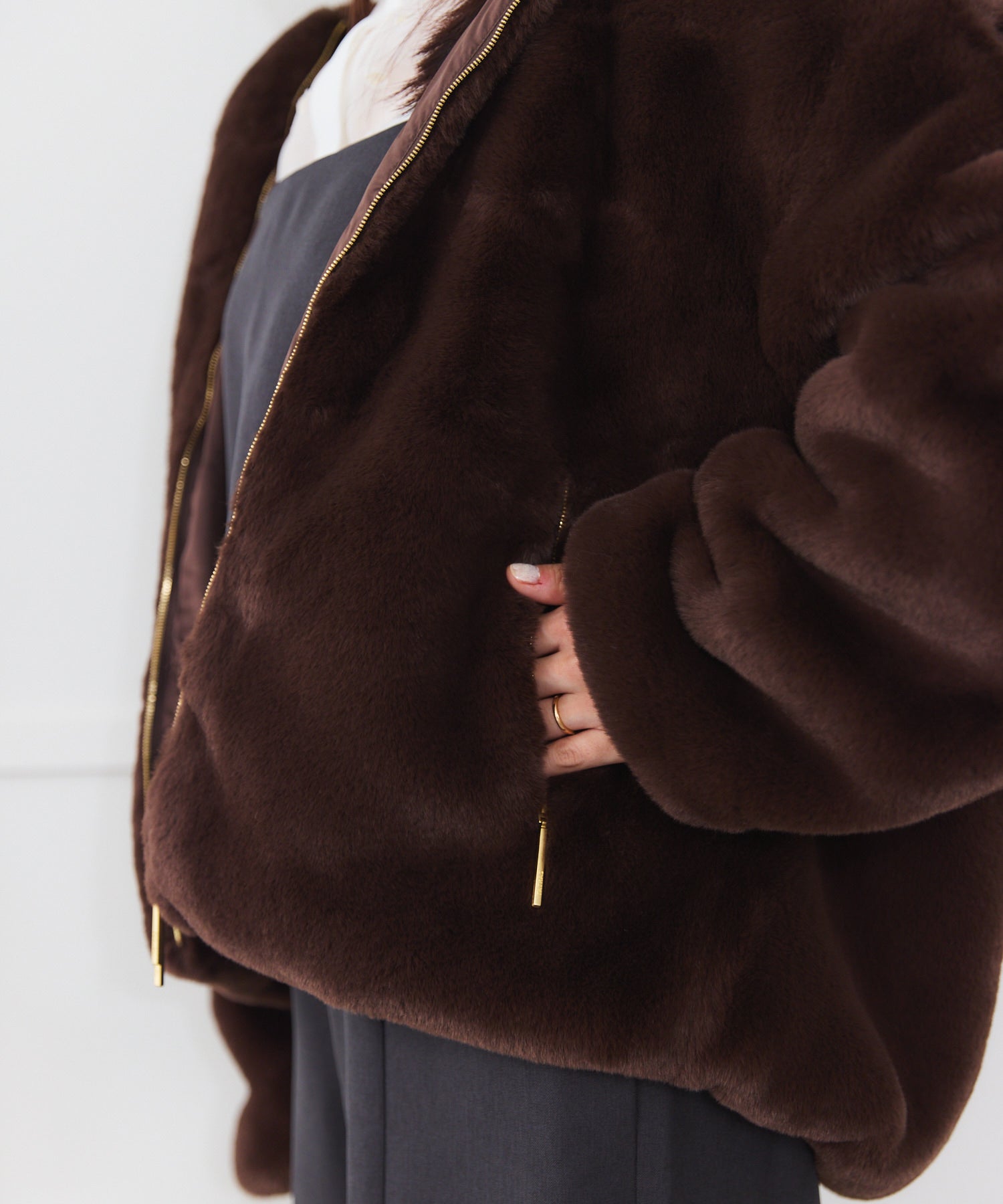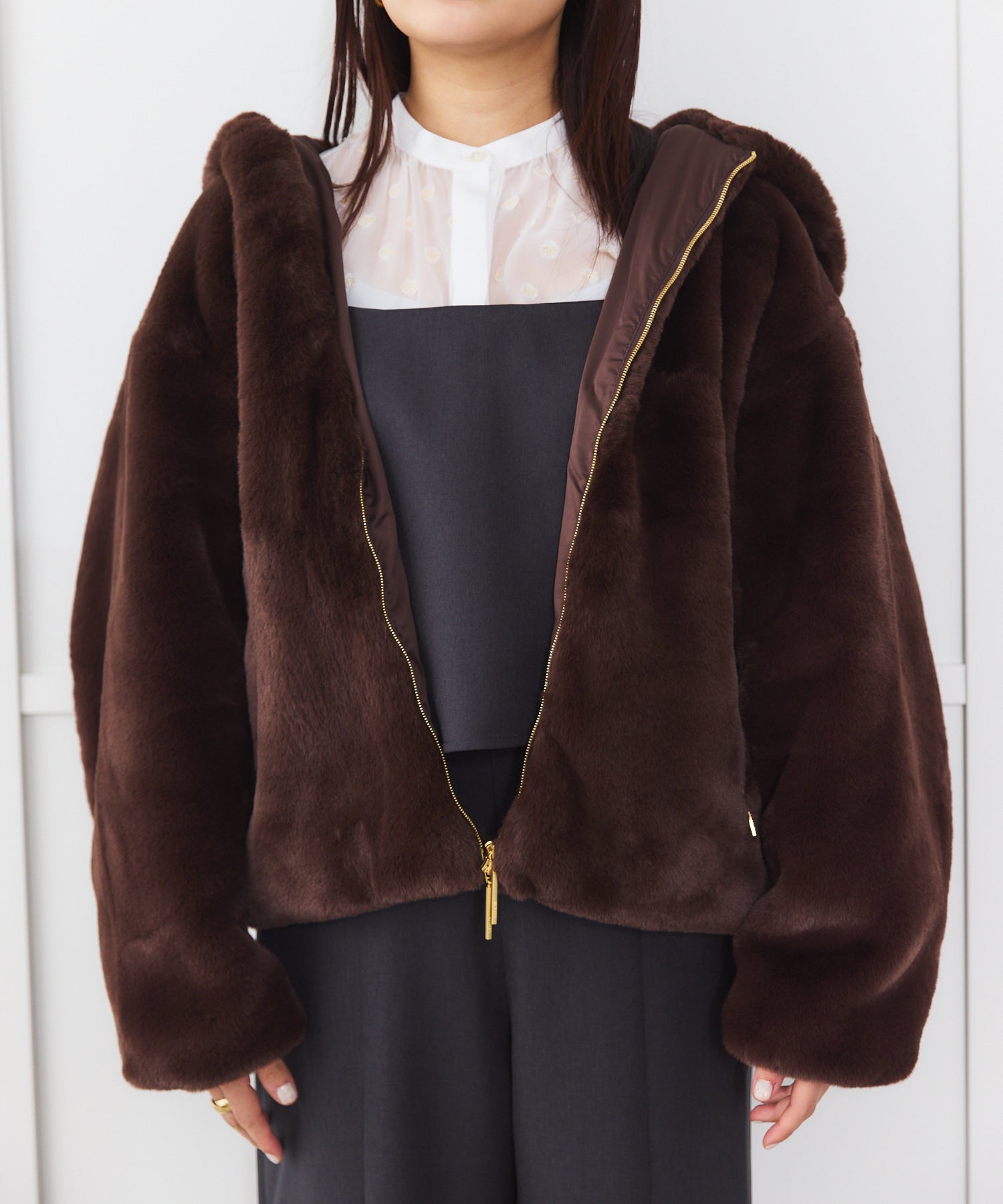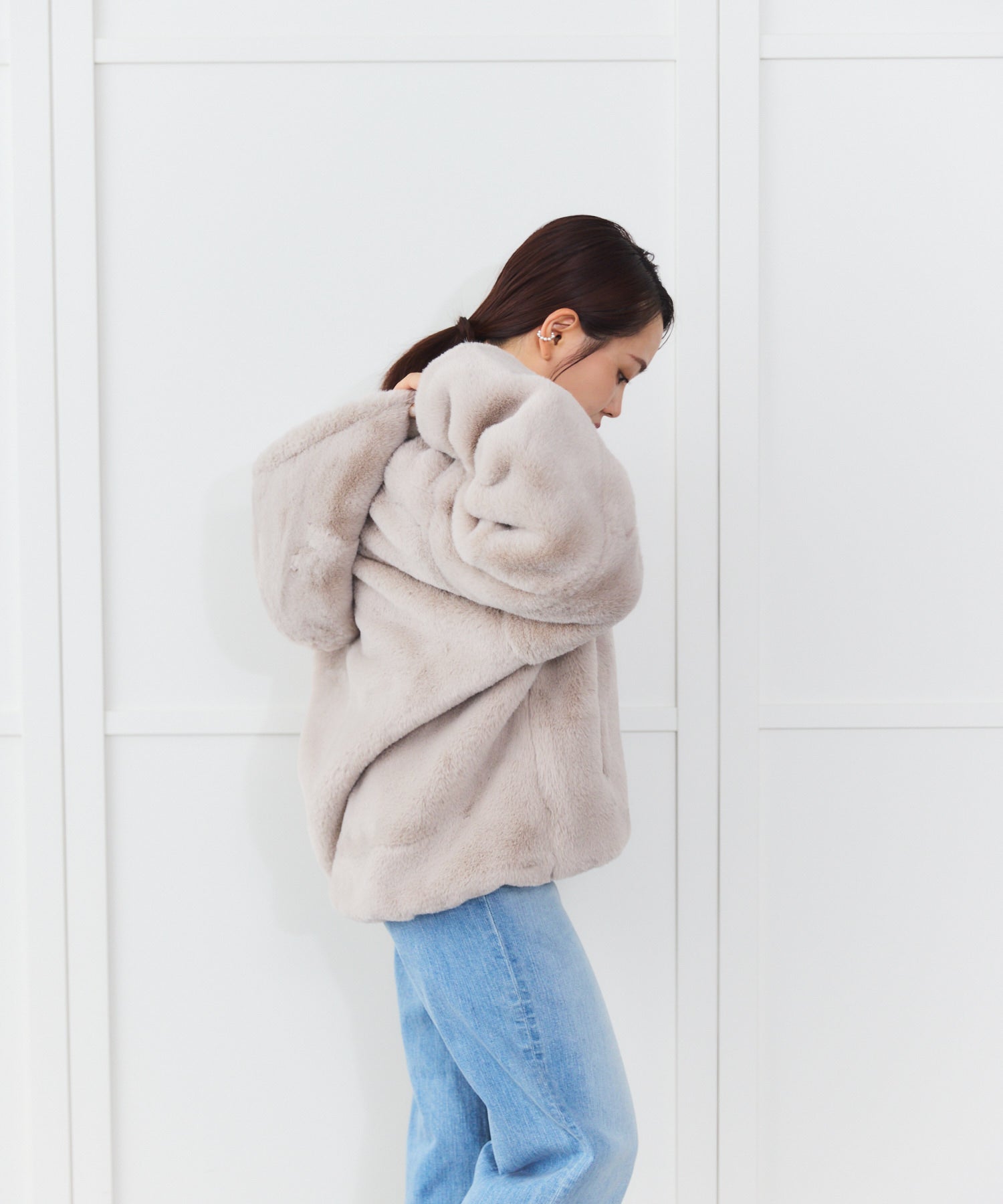 上品なツヤ感のある毛足の長いファーとボリュームのあるシルエットが大人コーデにぴったりのアイテム