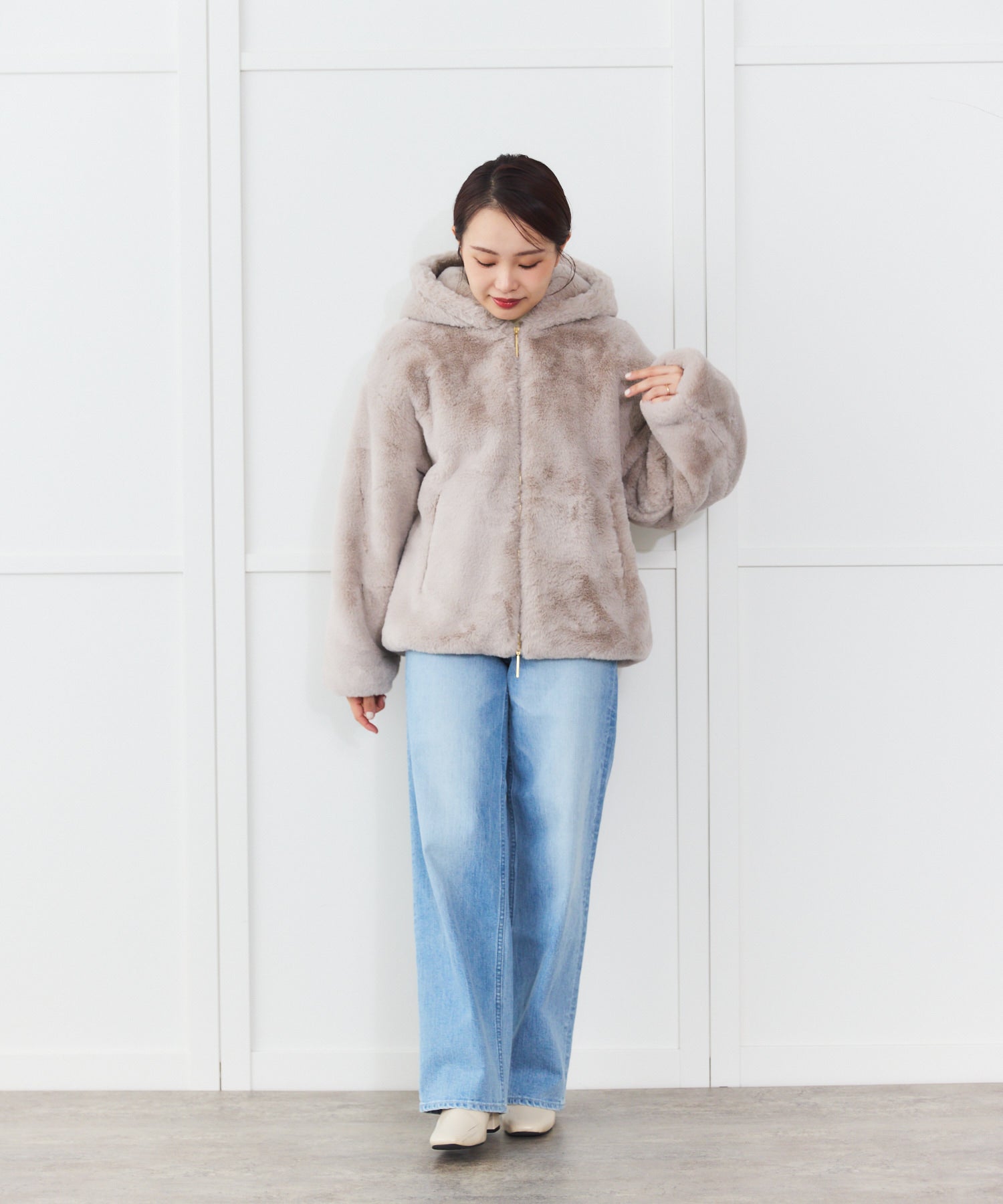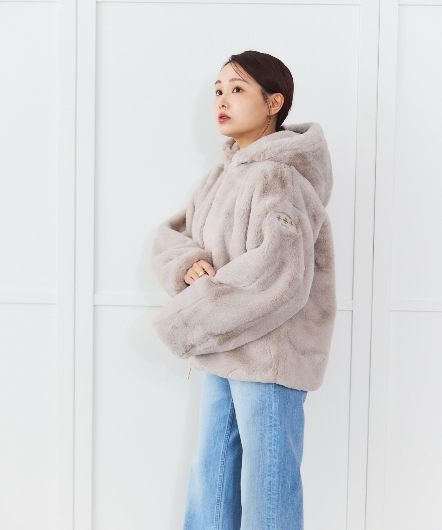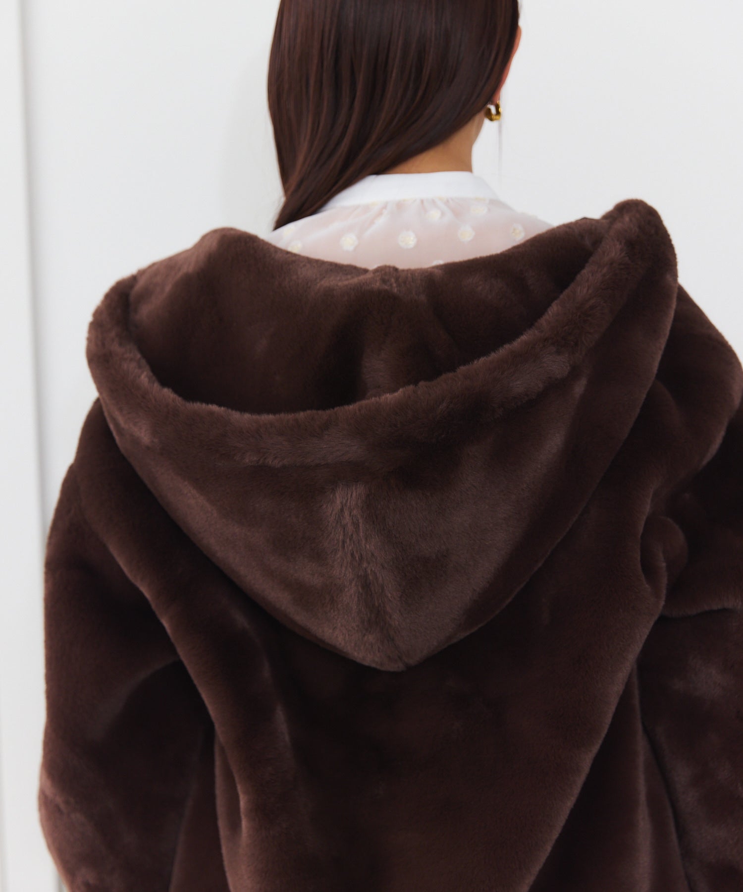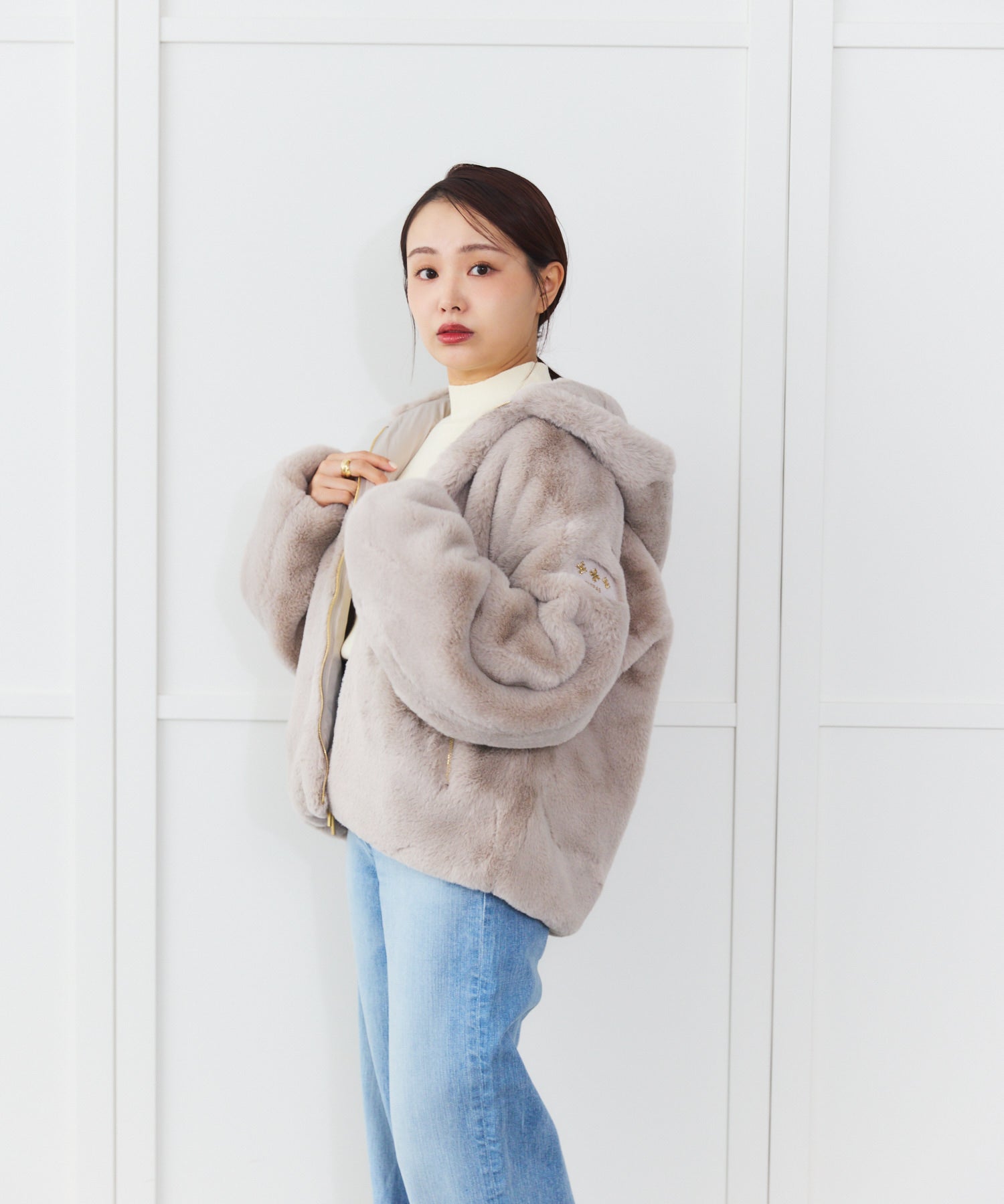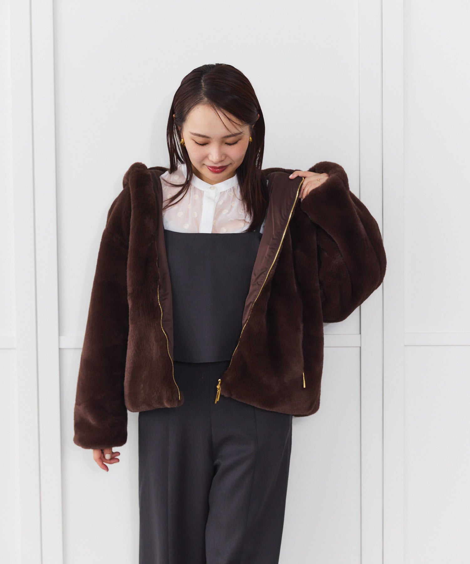 上品なツヤ感のある毛足の長いファーとボリュームのあるシルエットが大人コーデにぴったりのアイテム