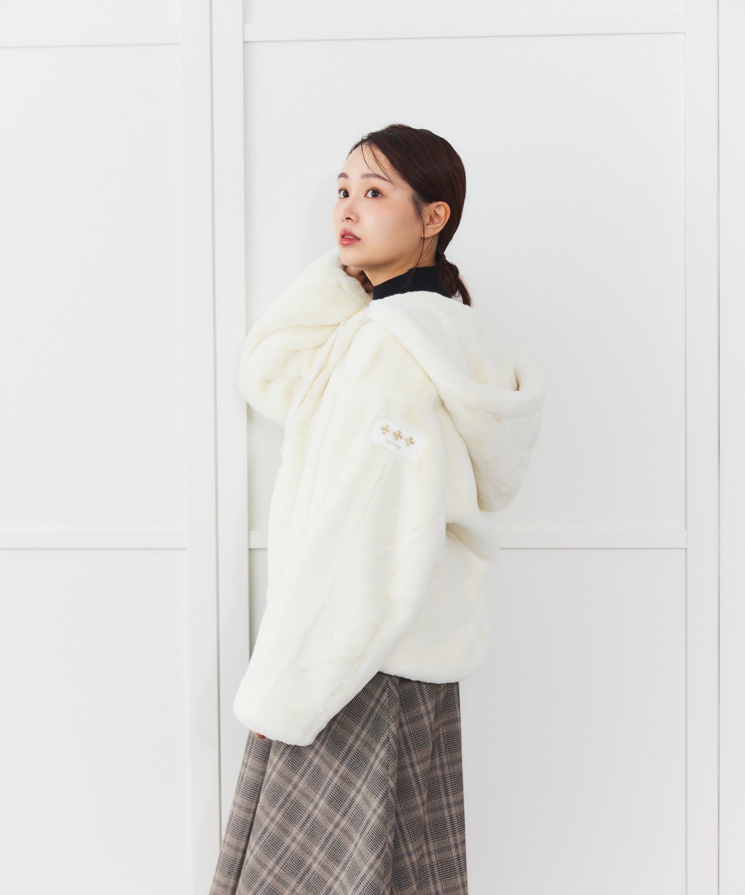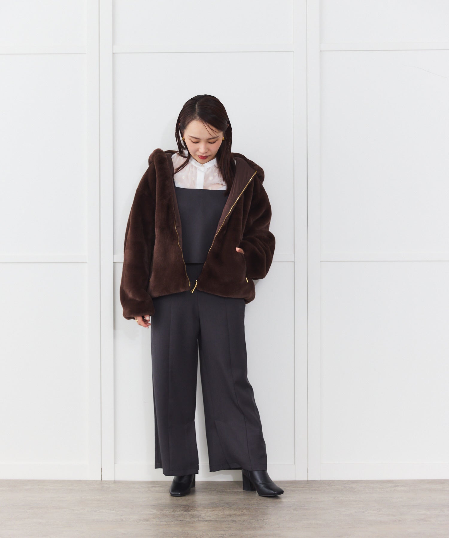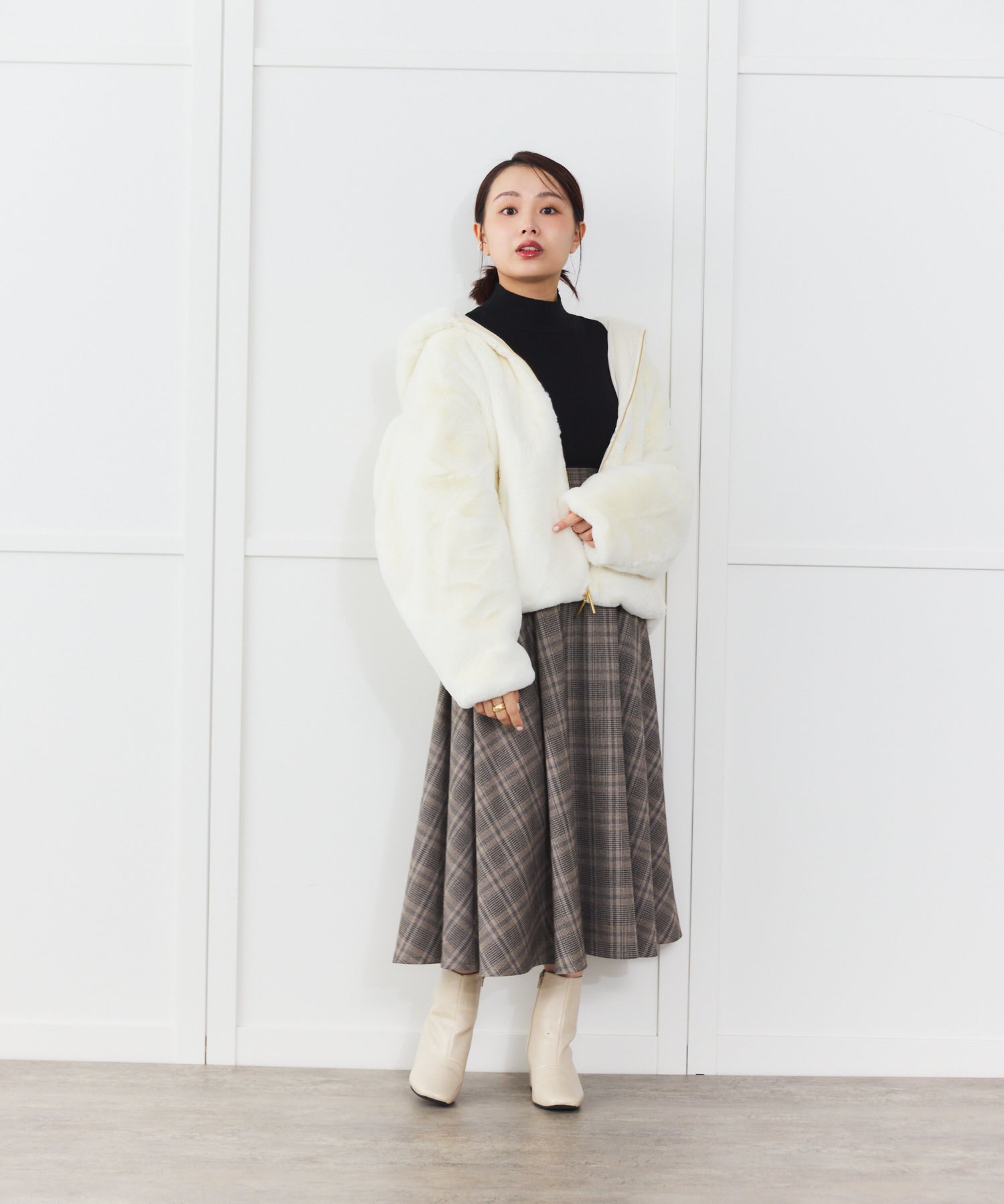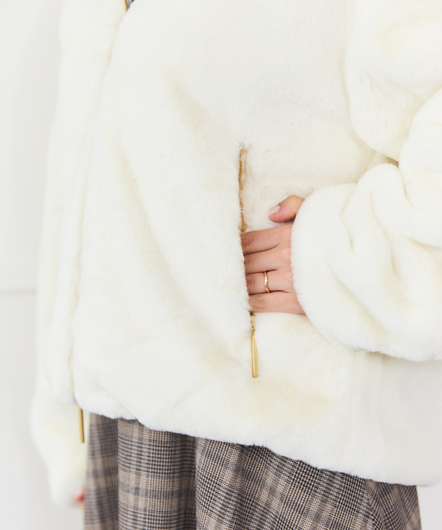 上品なツヤ感のある毛足の長いファーとボリュームのあるシルエットが大人コーデにぴったりのアイテム