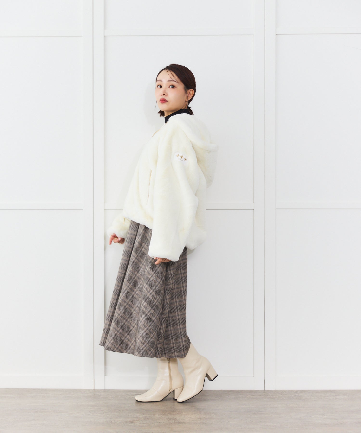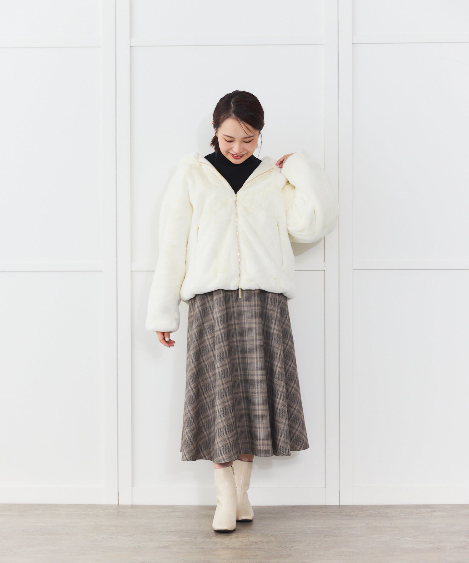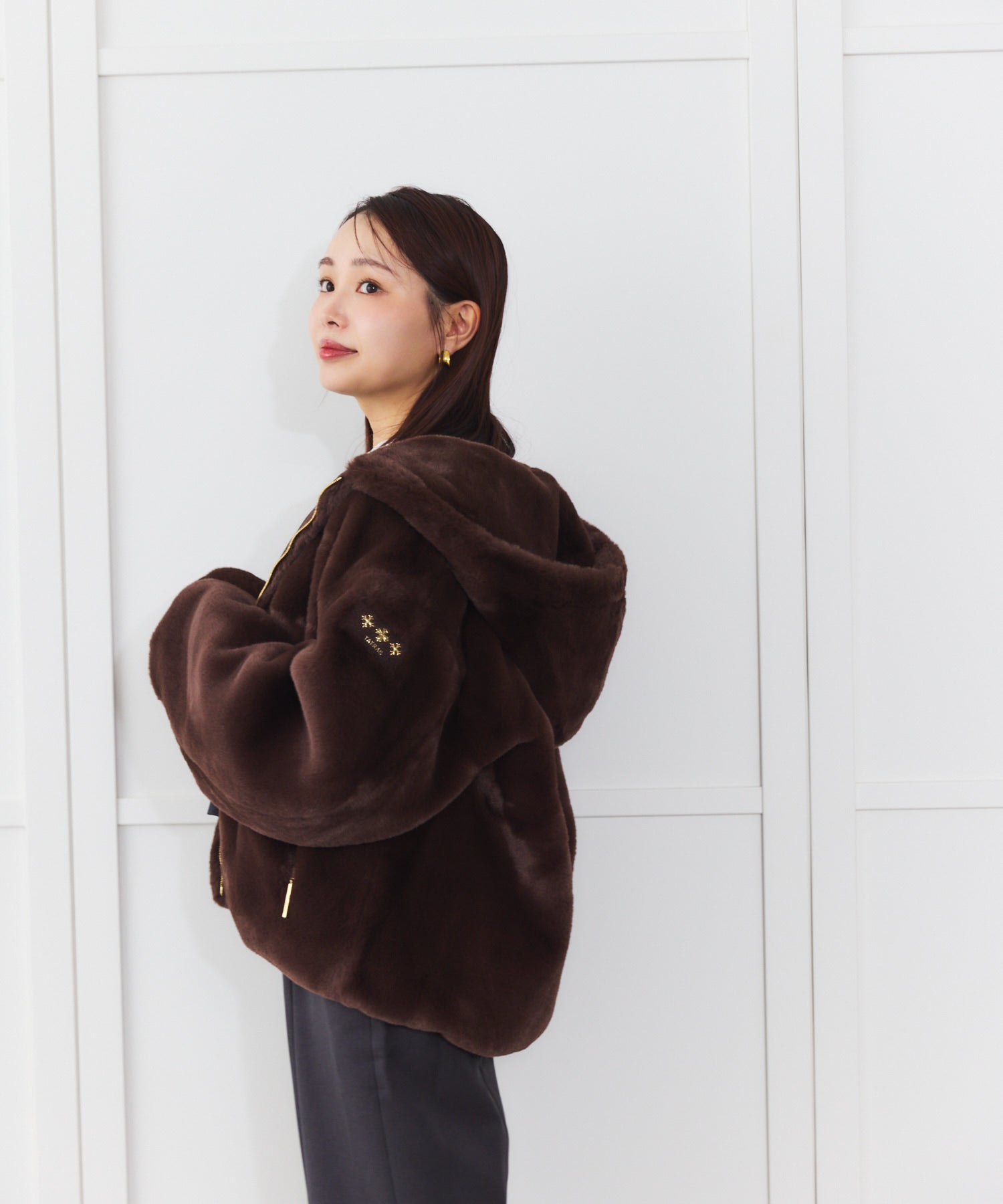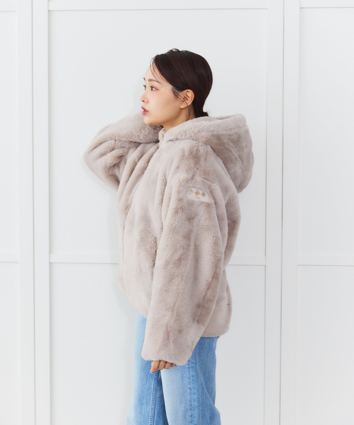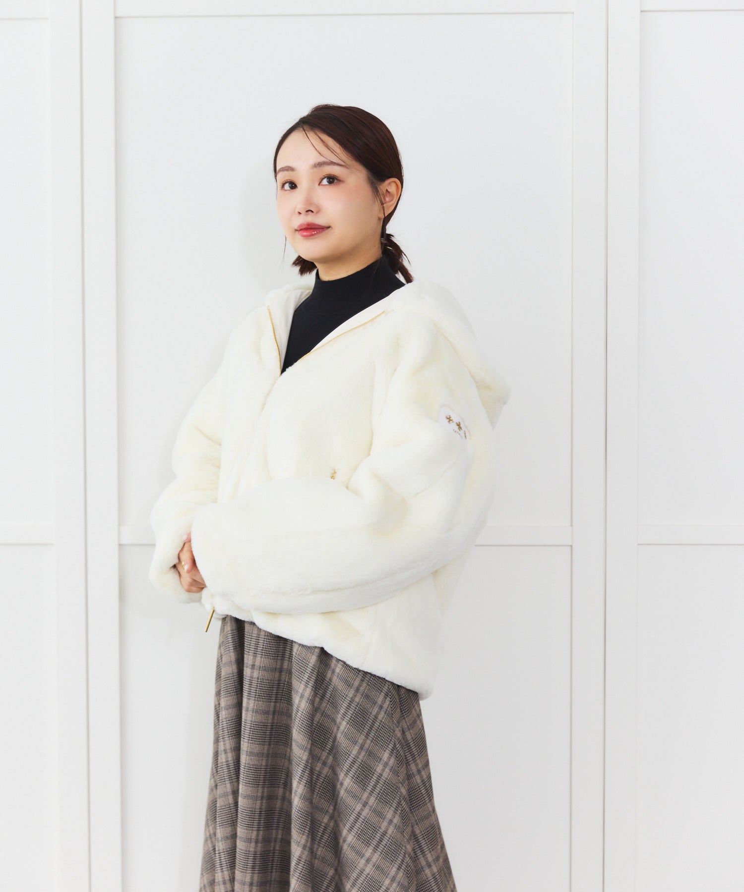 上品なツヤ感のある毛足の長いファーとボリュームのあるシルエットが大人コーデにぴったりのアイテム