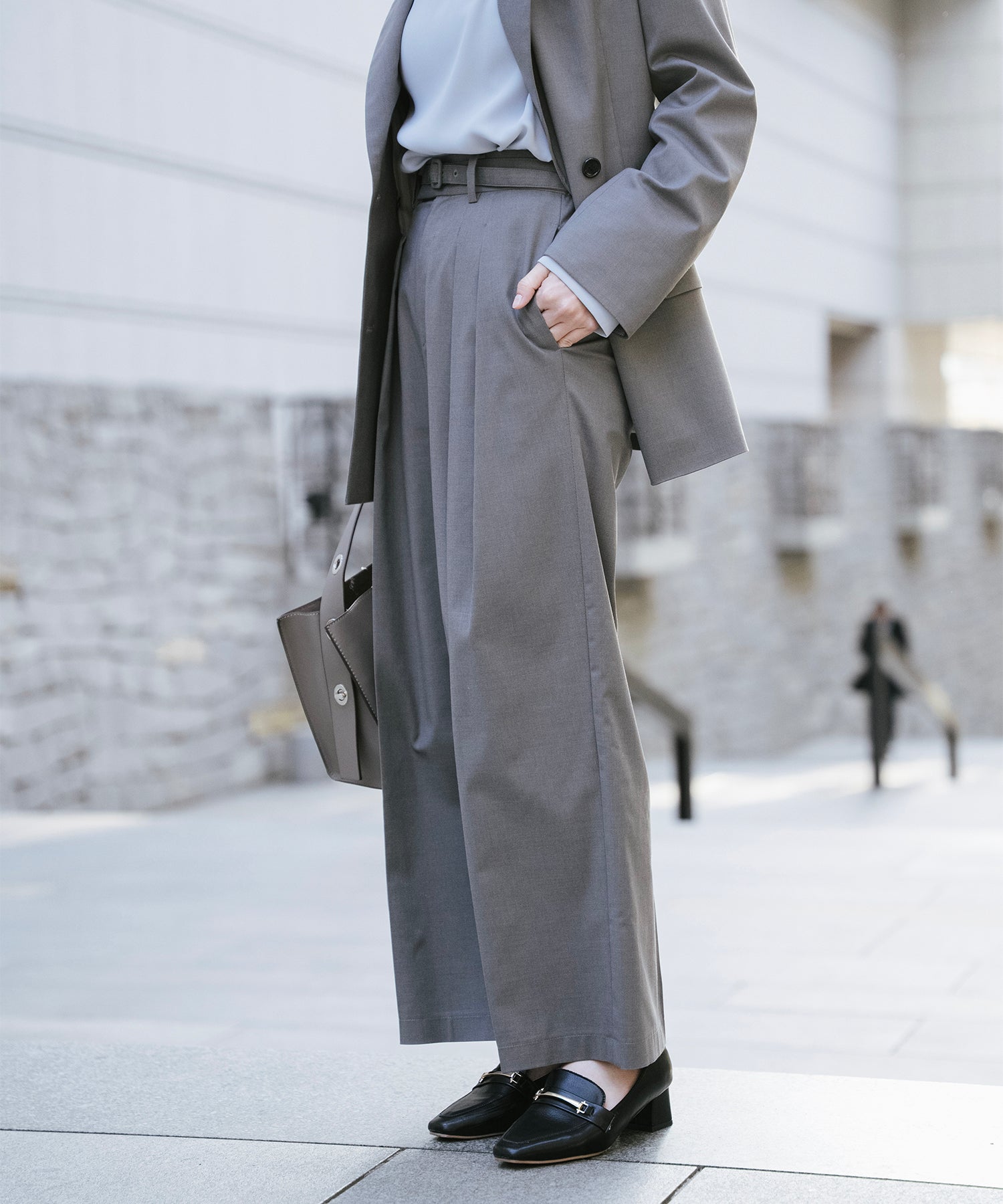 単品使いはもちろん、セットアップとしてもバランス良く着こなせる一本です。