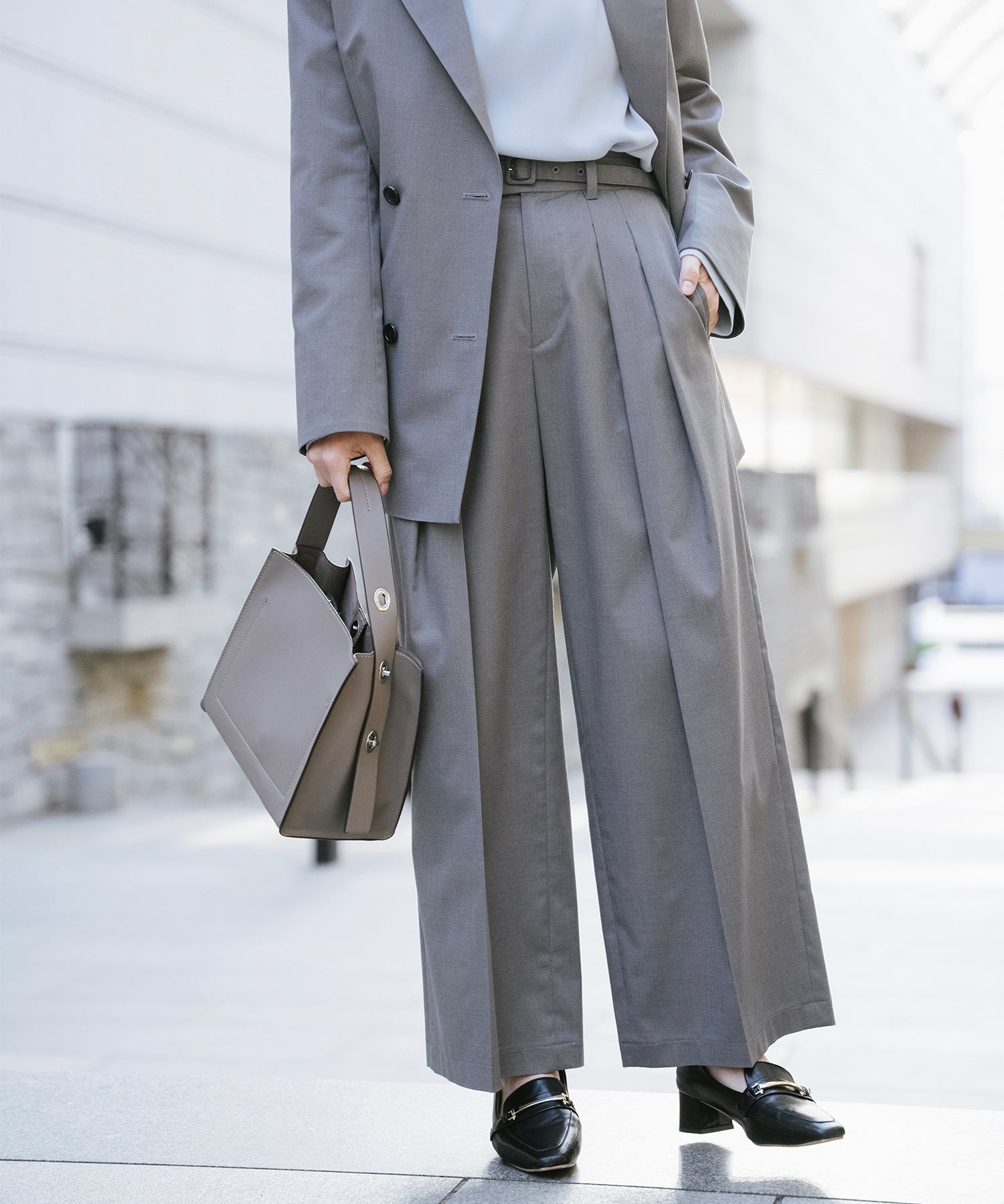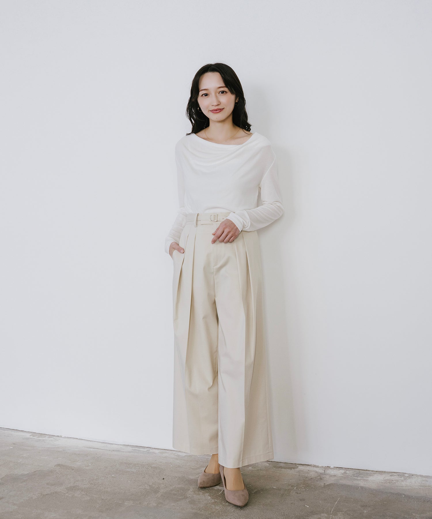 ワイドすぎないセミワイド幅が、きれいめで洗練された印象を演出。