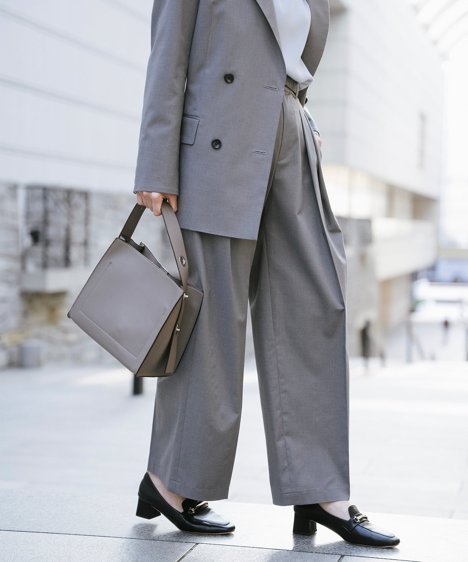 なめらかで上品な表面感が特徴で、きれいめな印象を演出。