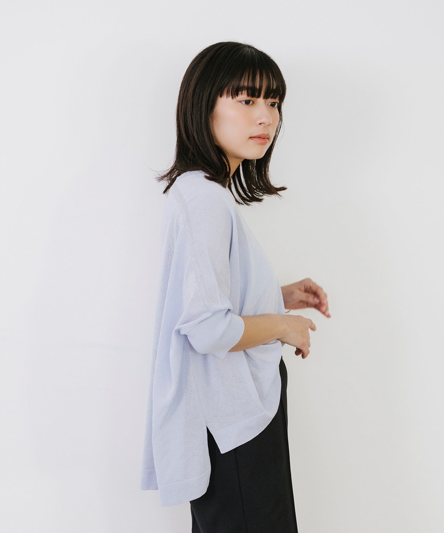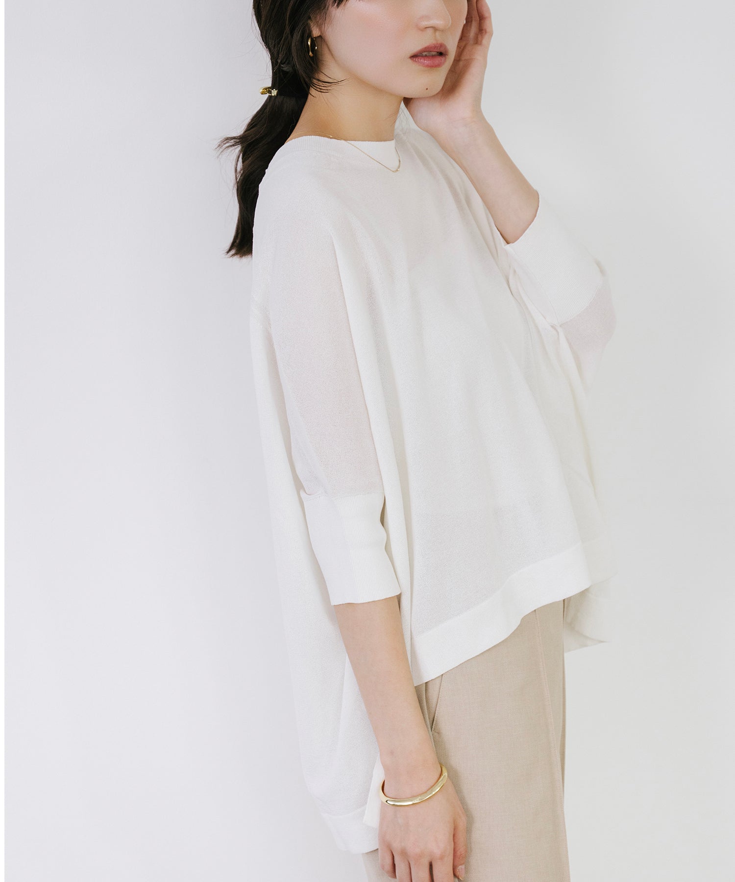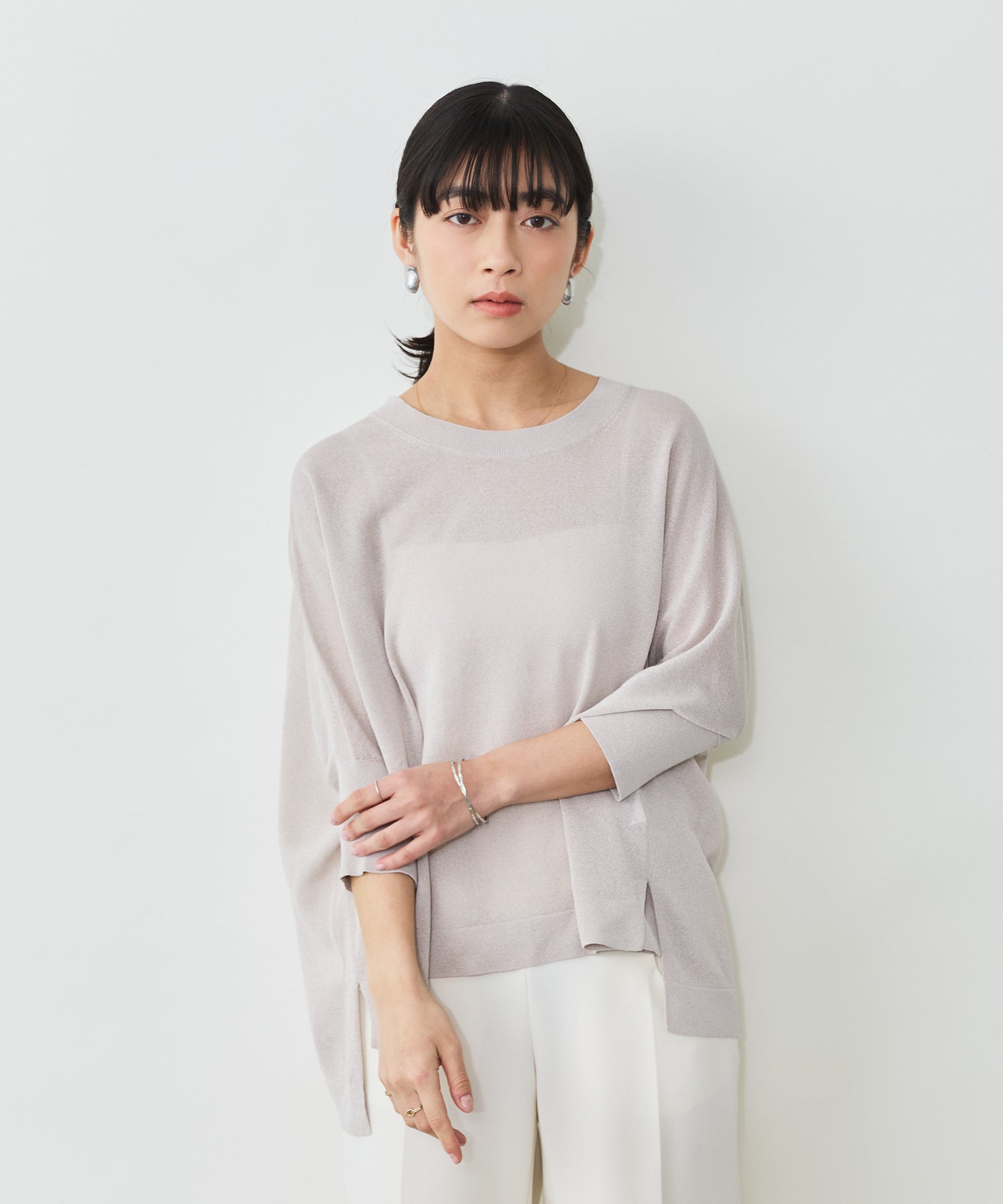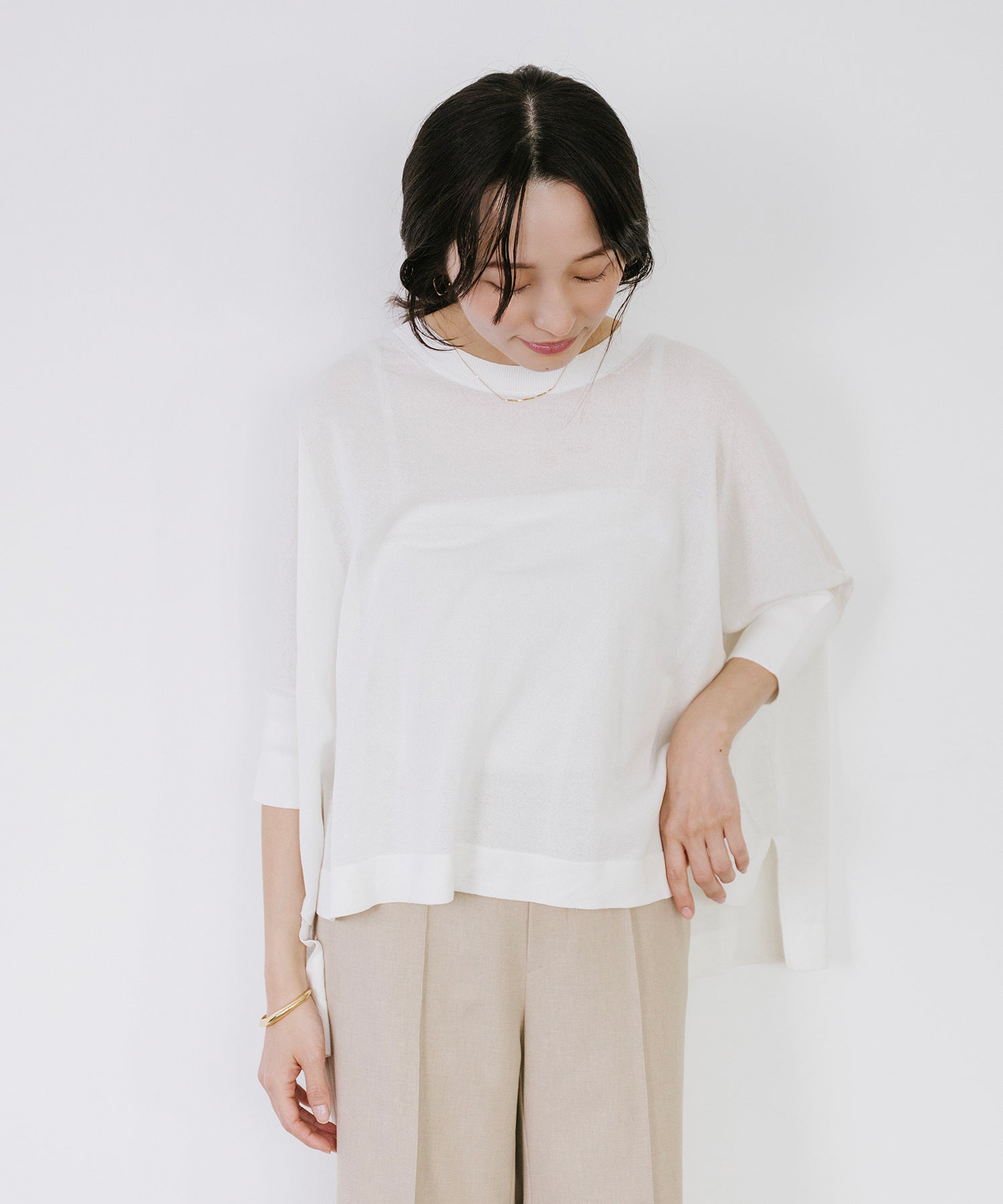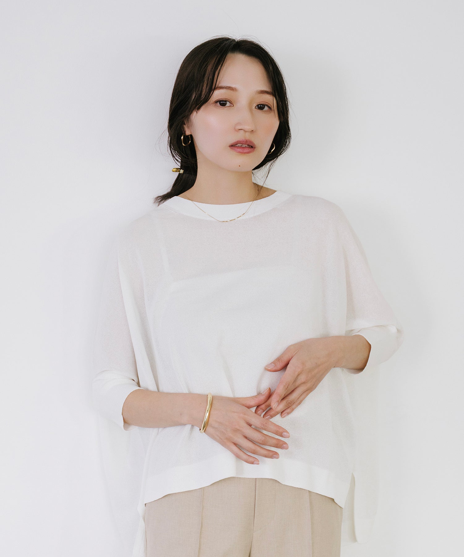ニットながら重さを感じにくく、春夏シーズンに取り入れやすい素材感です。