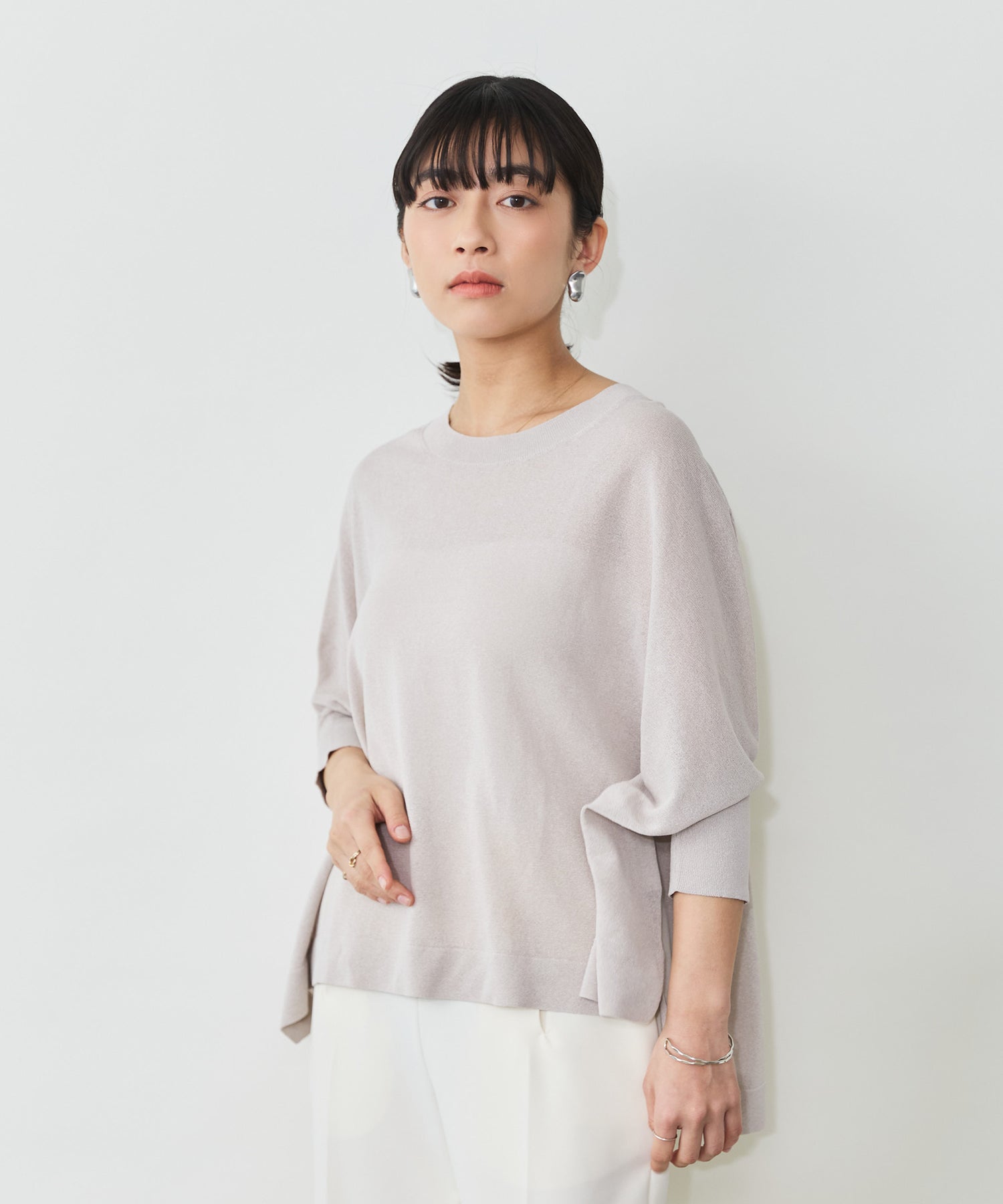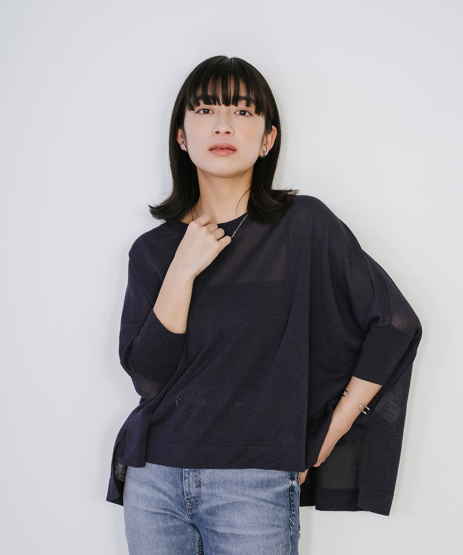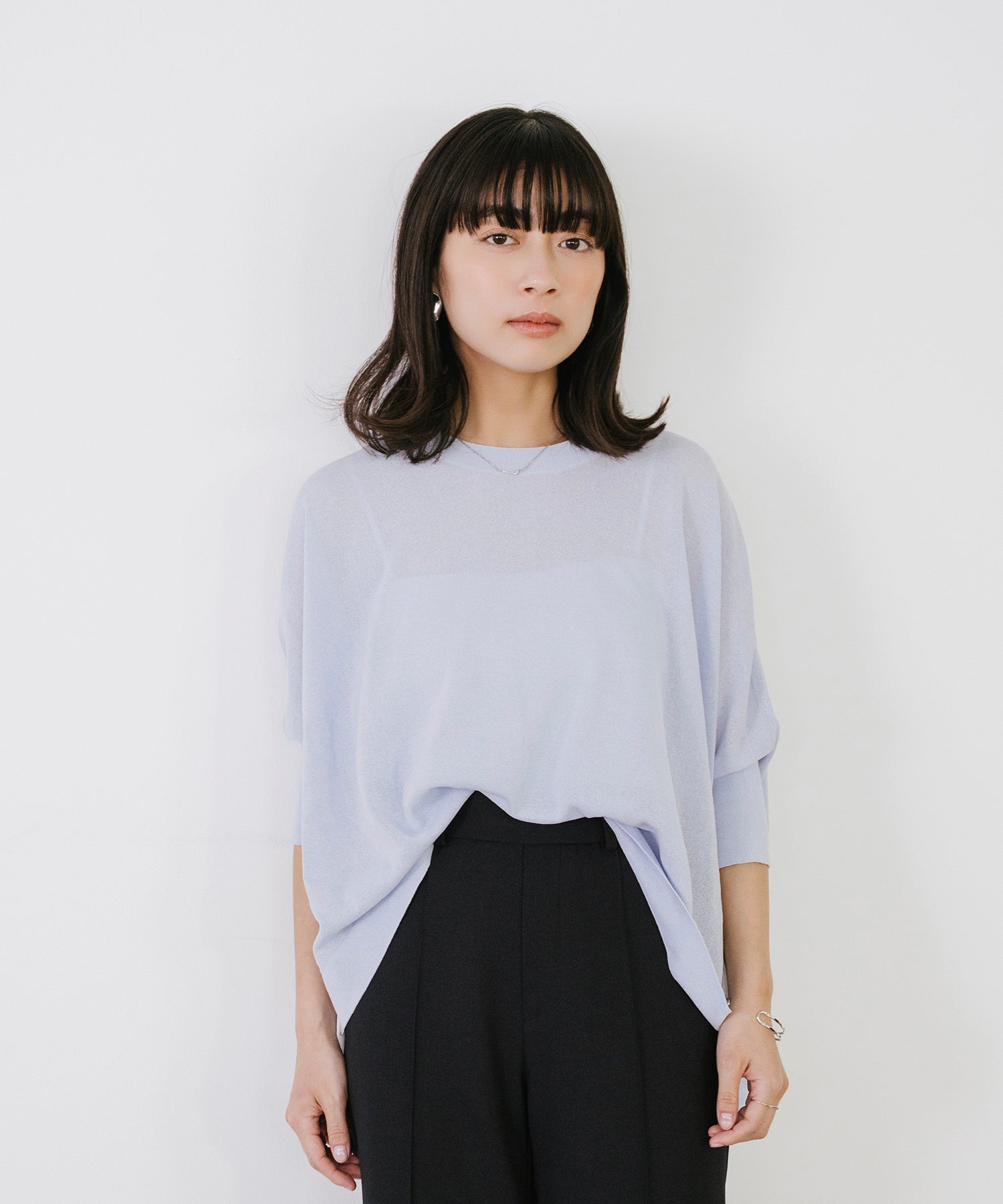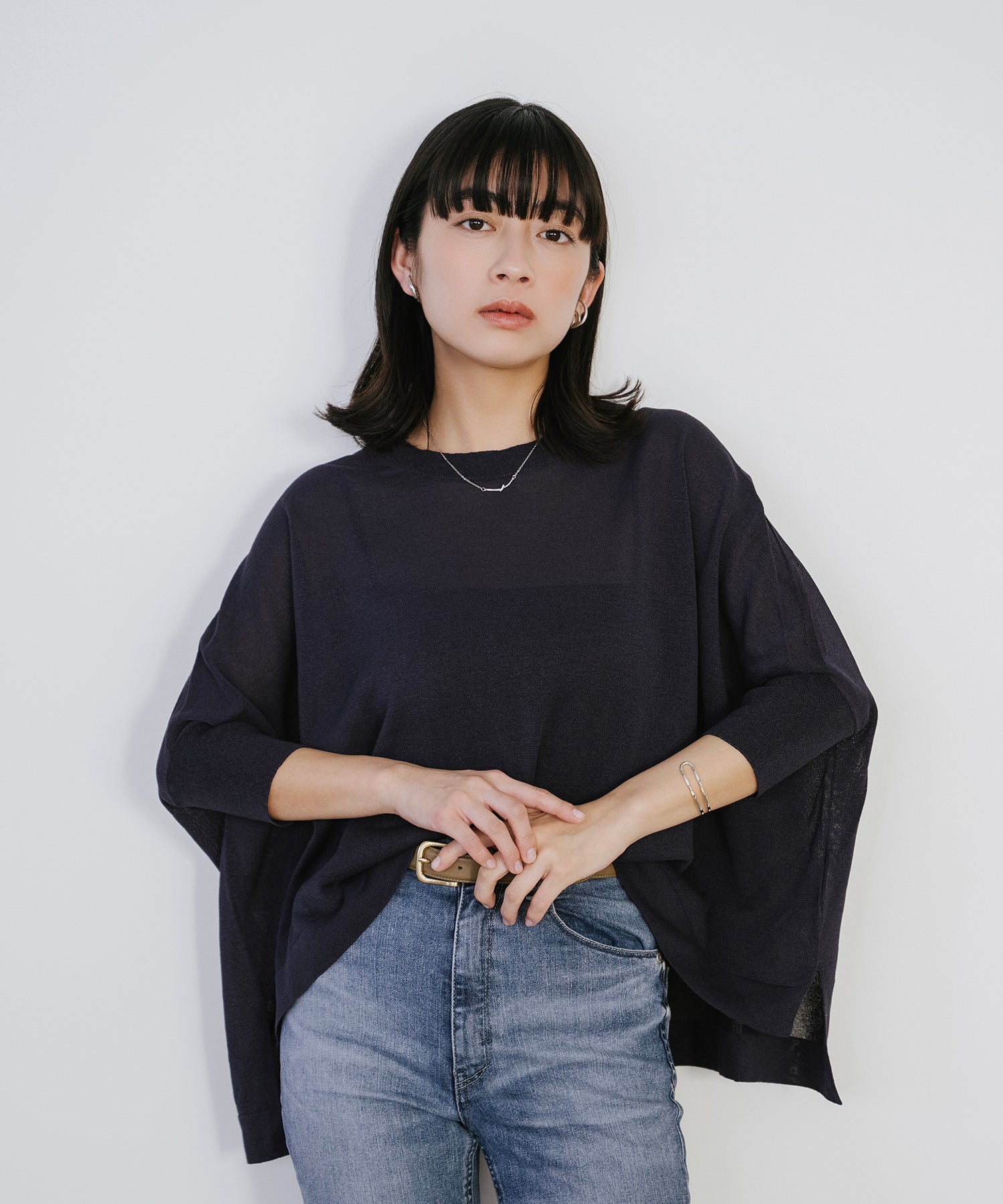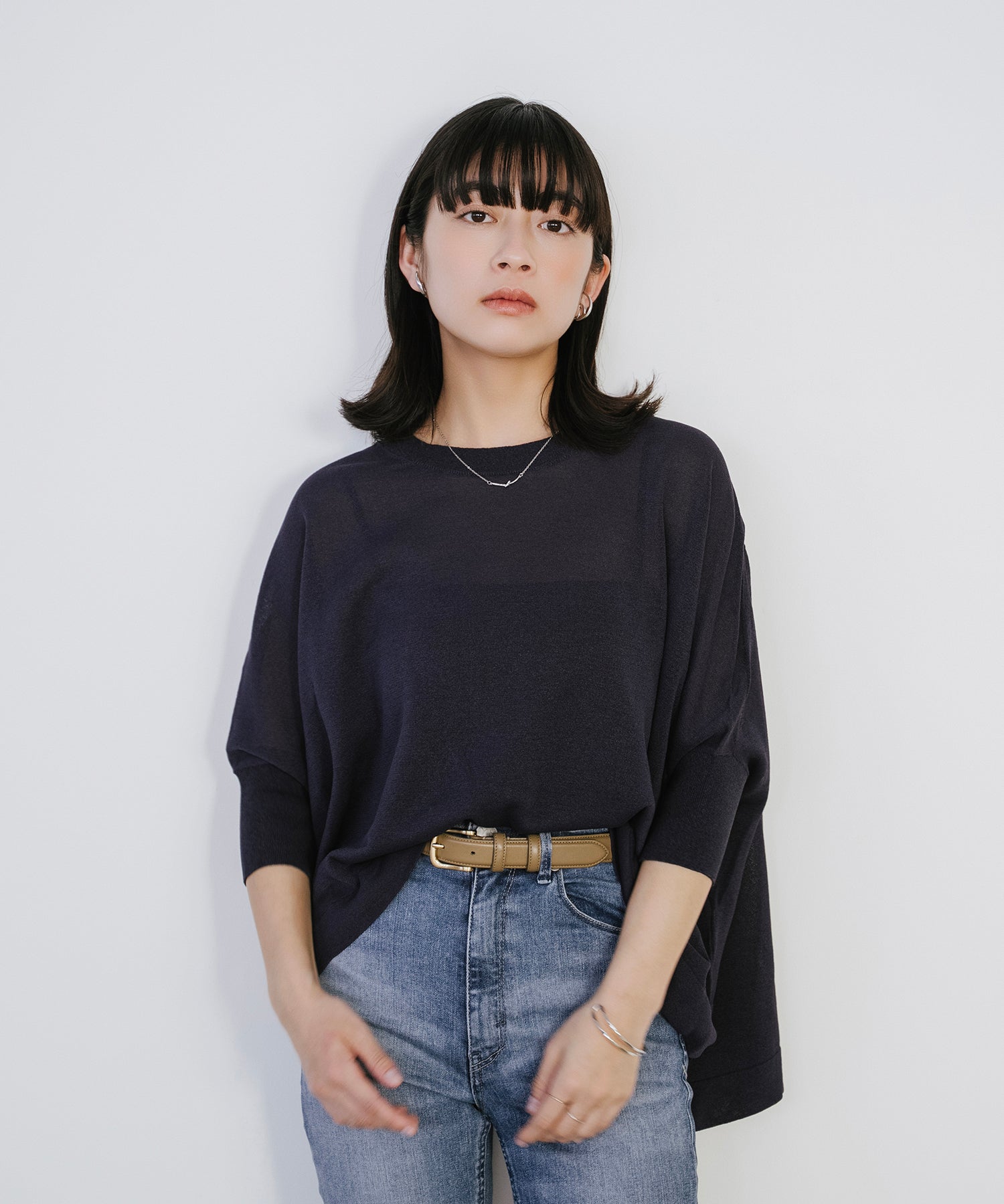 ニットながら重さを感じにくく、春夏シーズンに取り入れやすい素材感です。