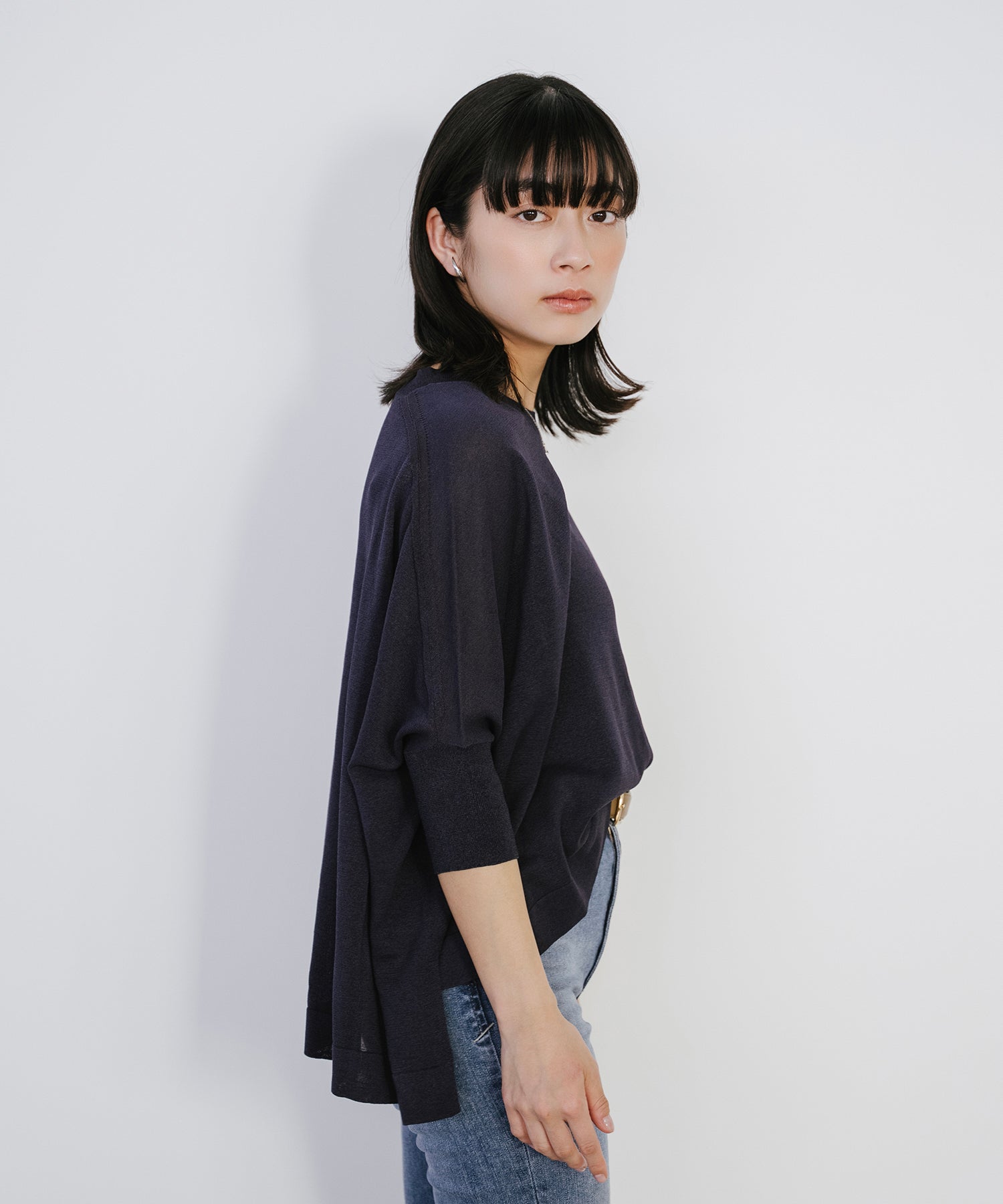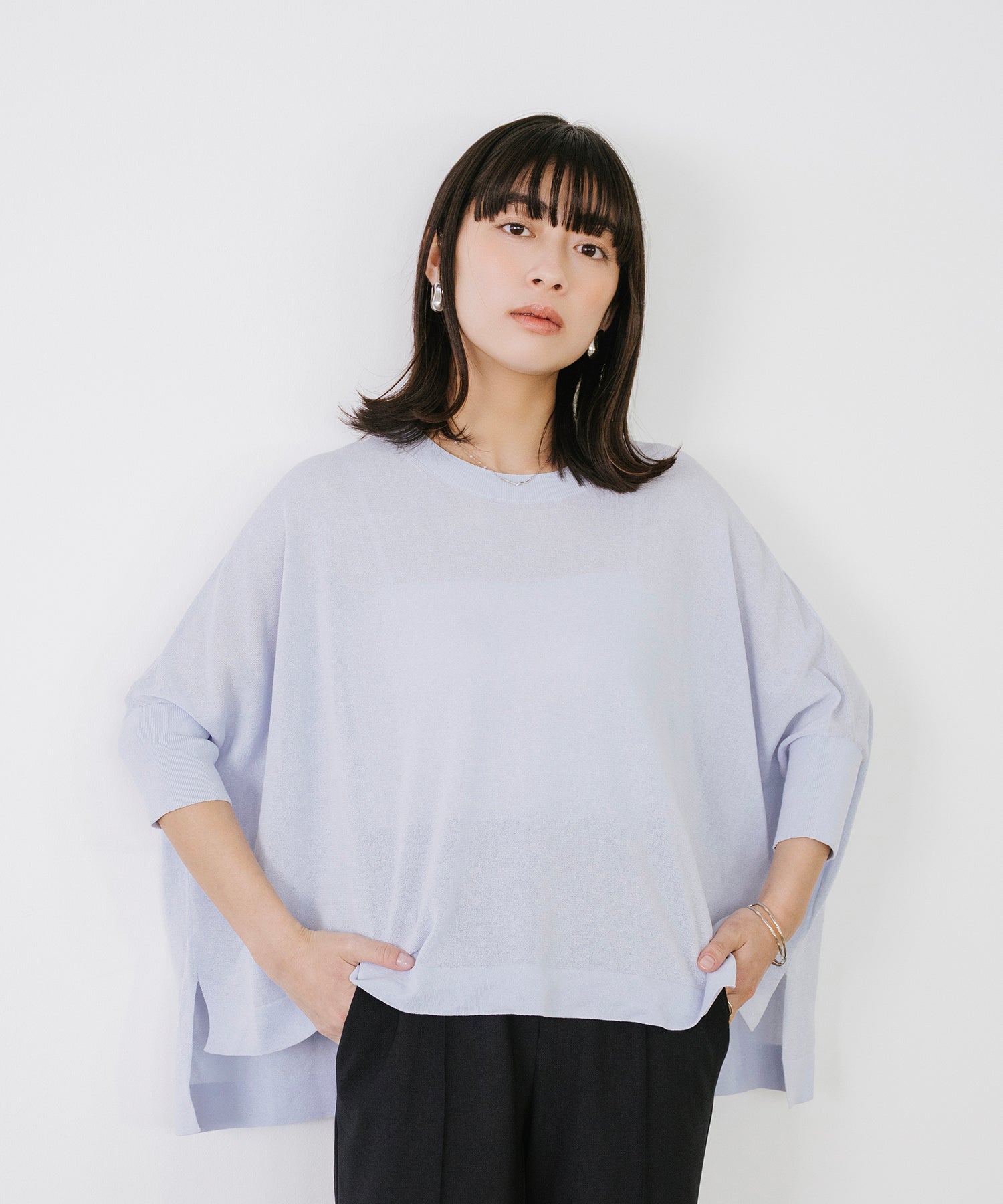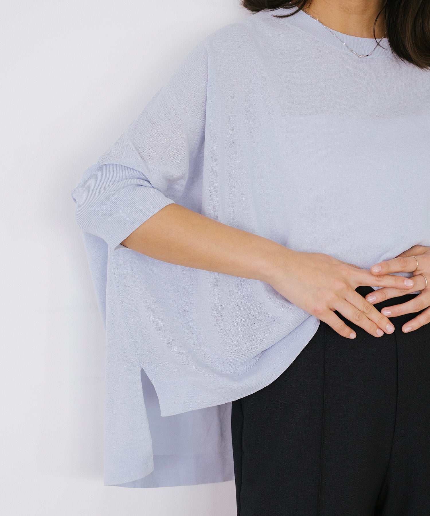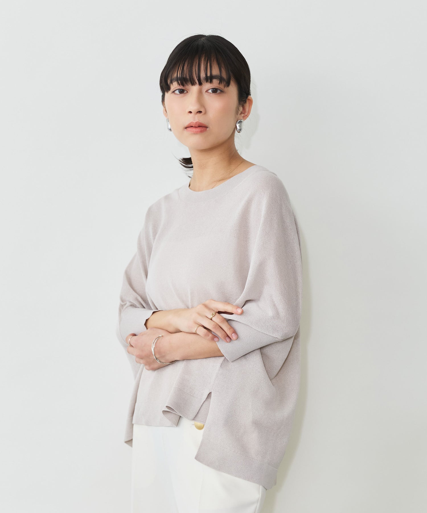 ニットながら重さを感じにくく、春夏シーズンに取り入れやすい素材感です。