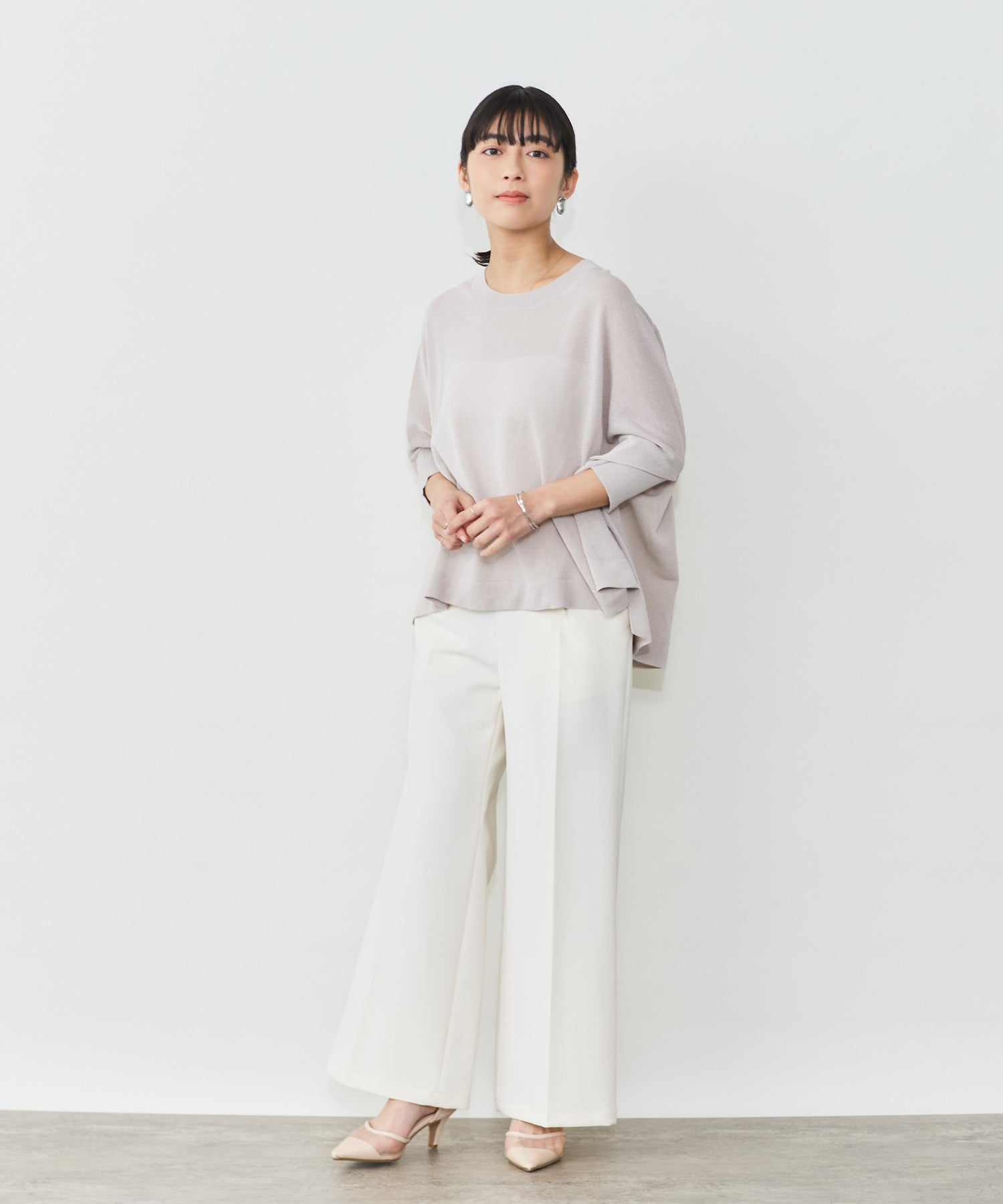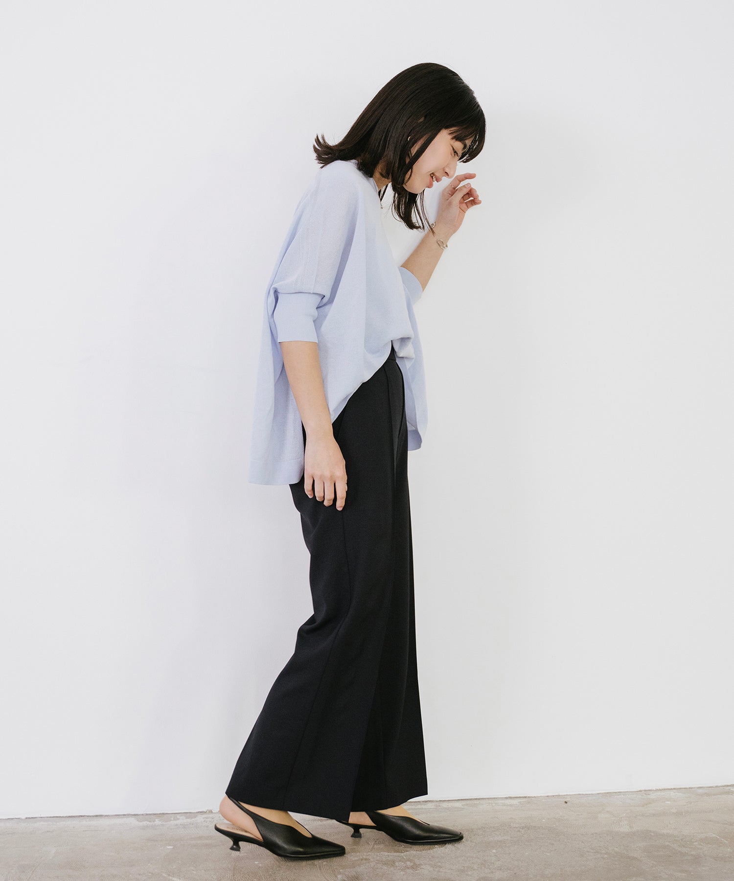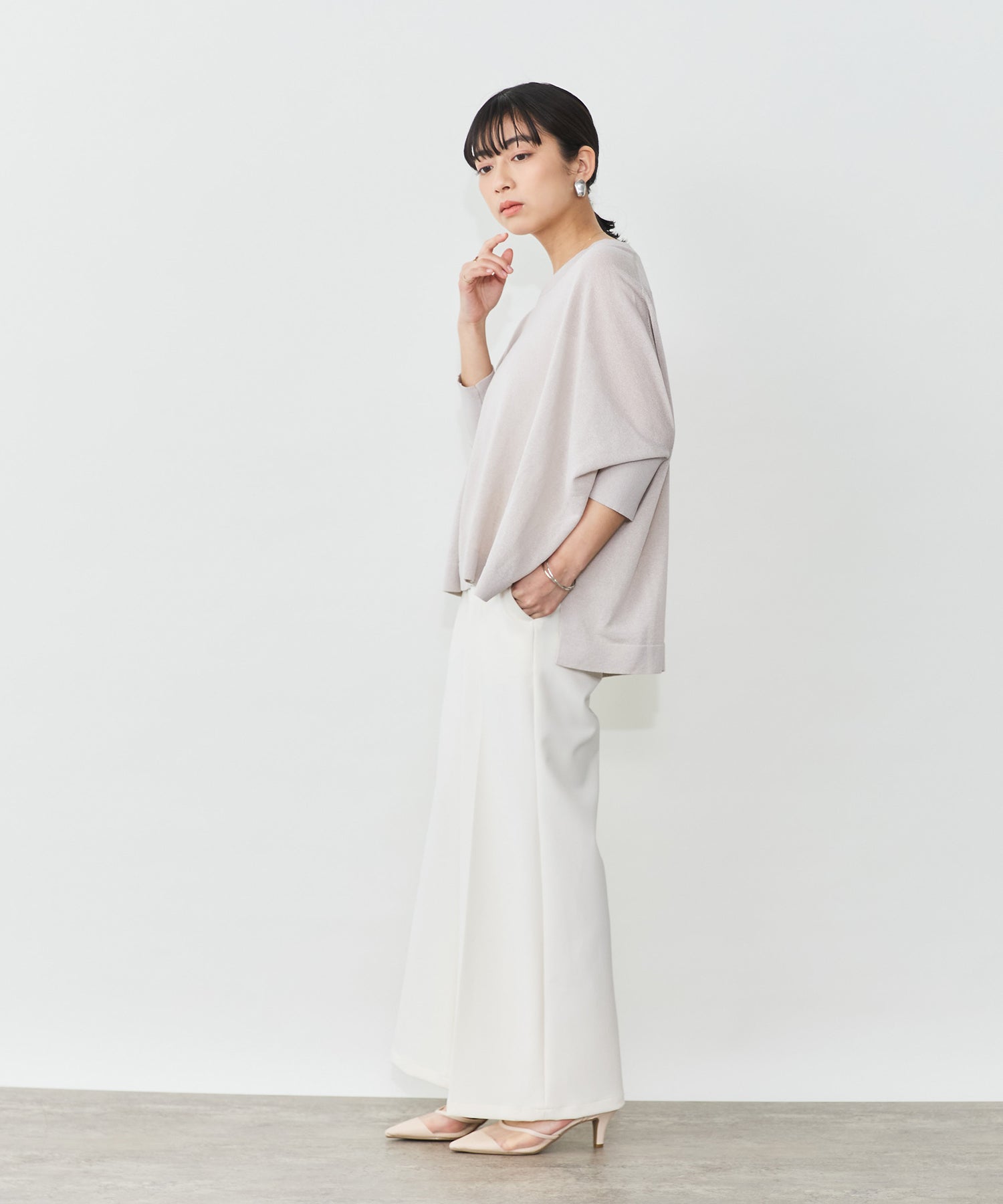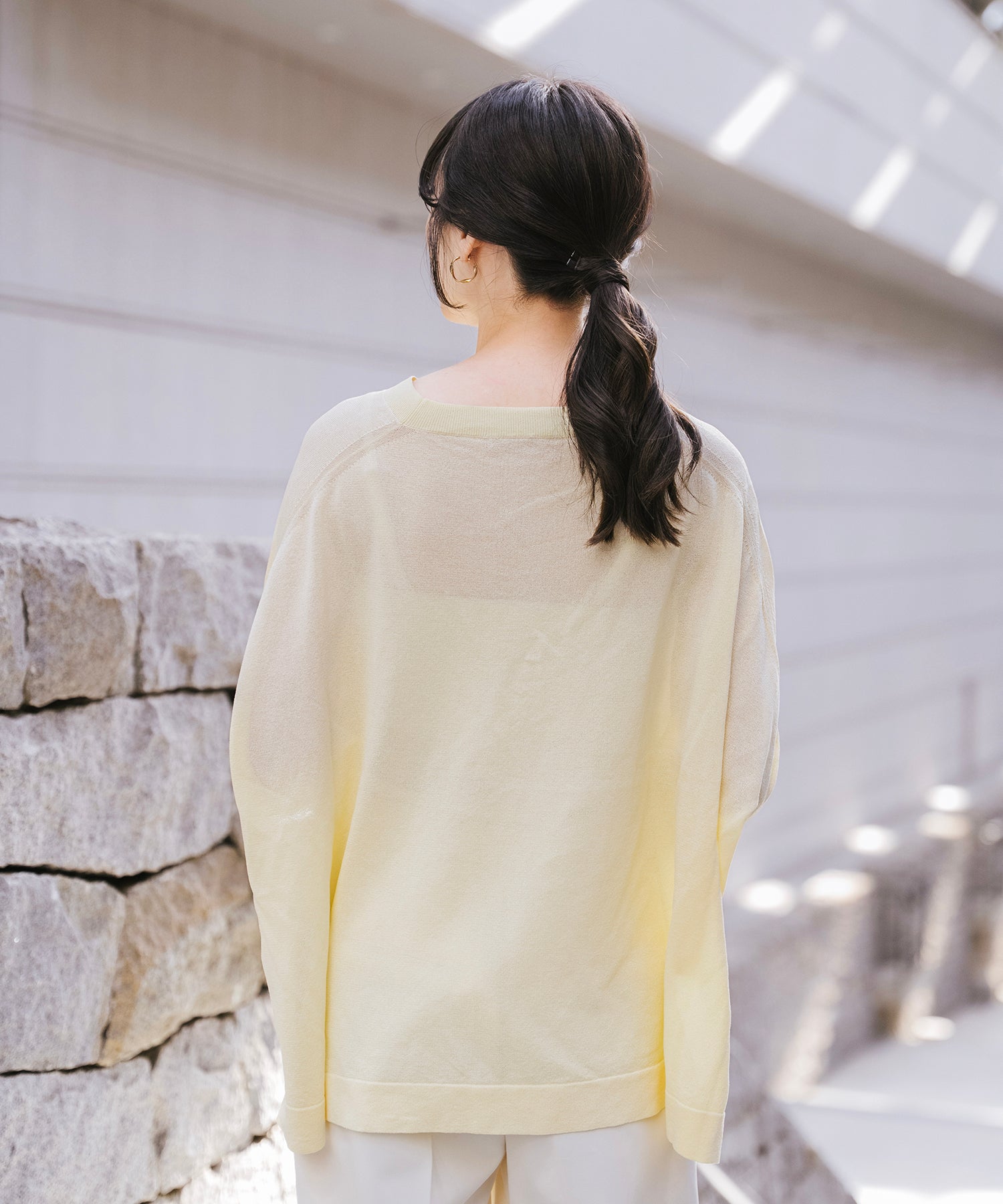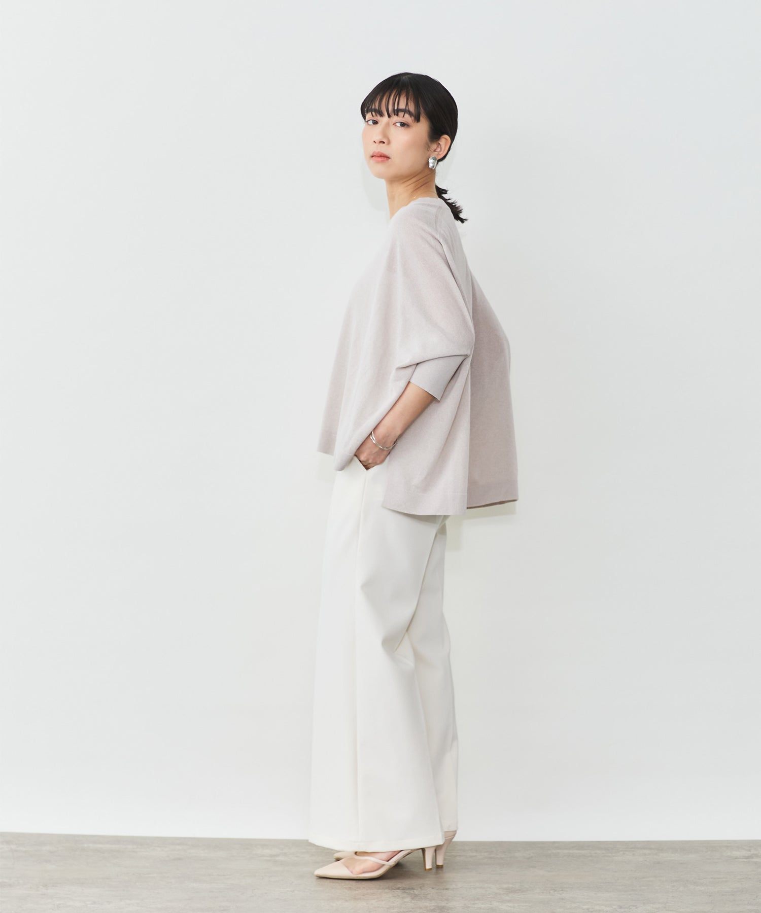 ニットながら重さを感じにくく、春夏シーズンに取り入れやすい素材感です。
