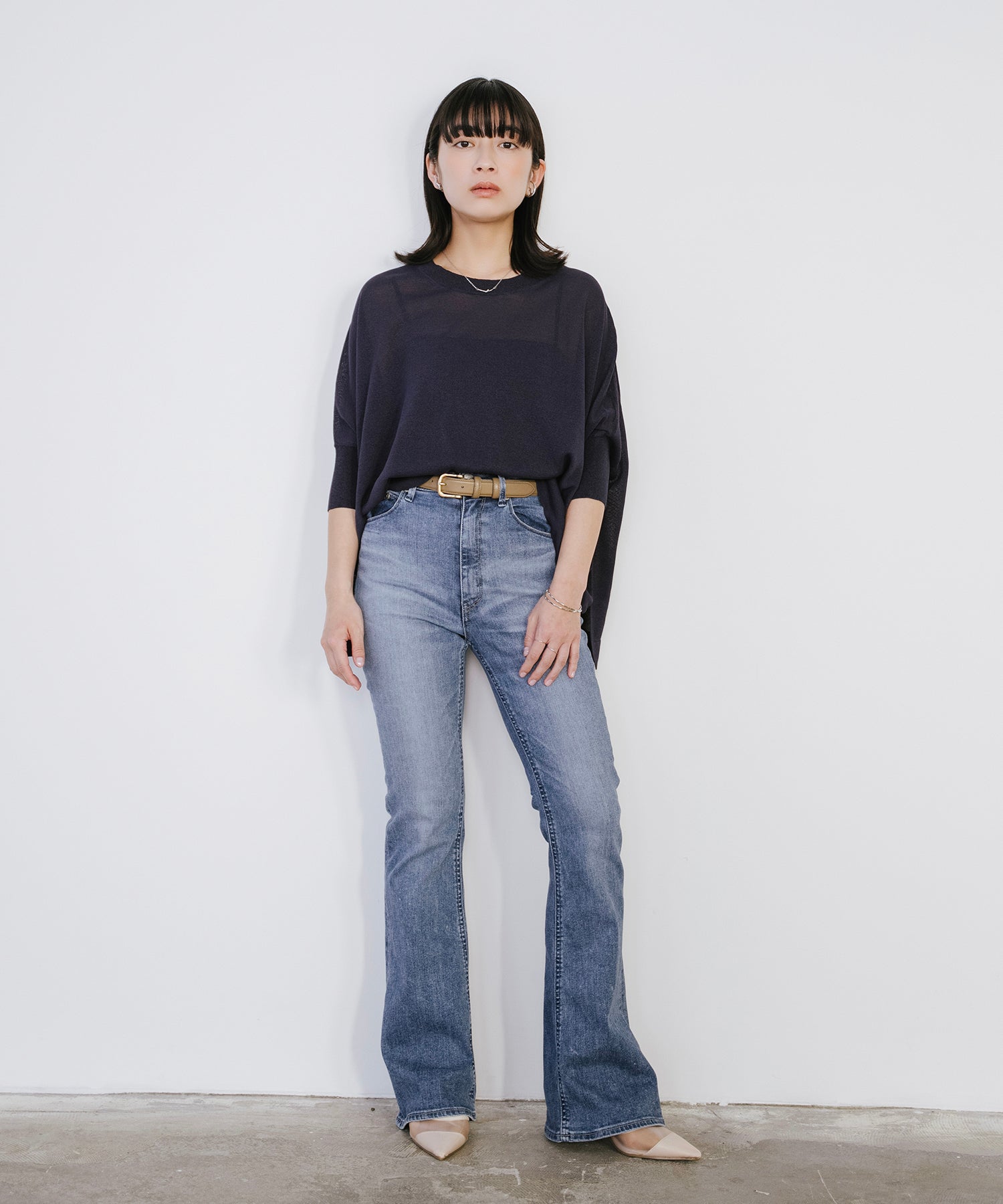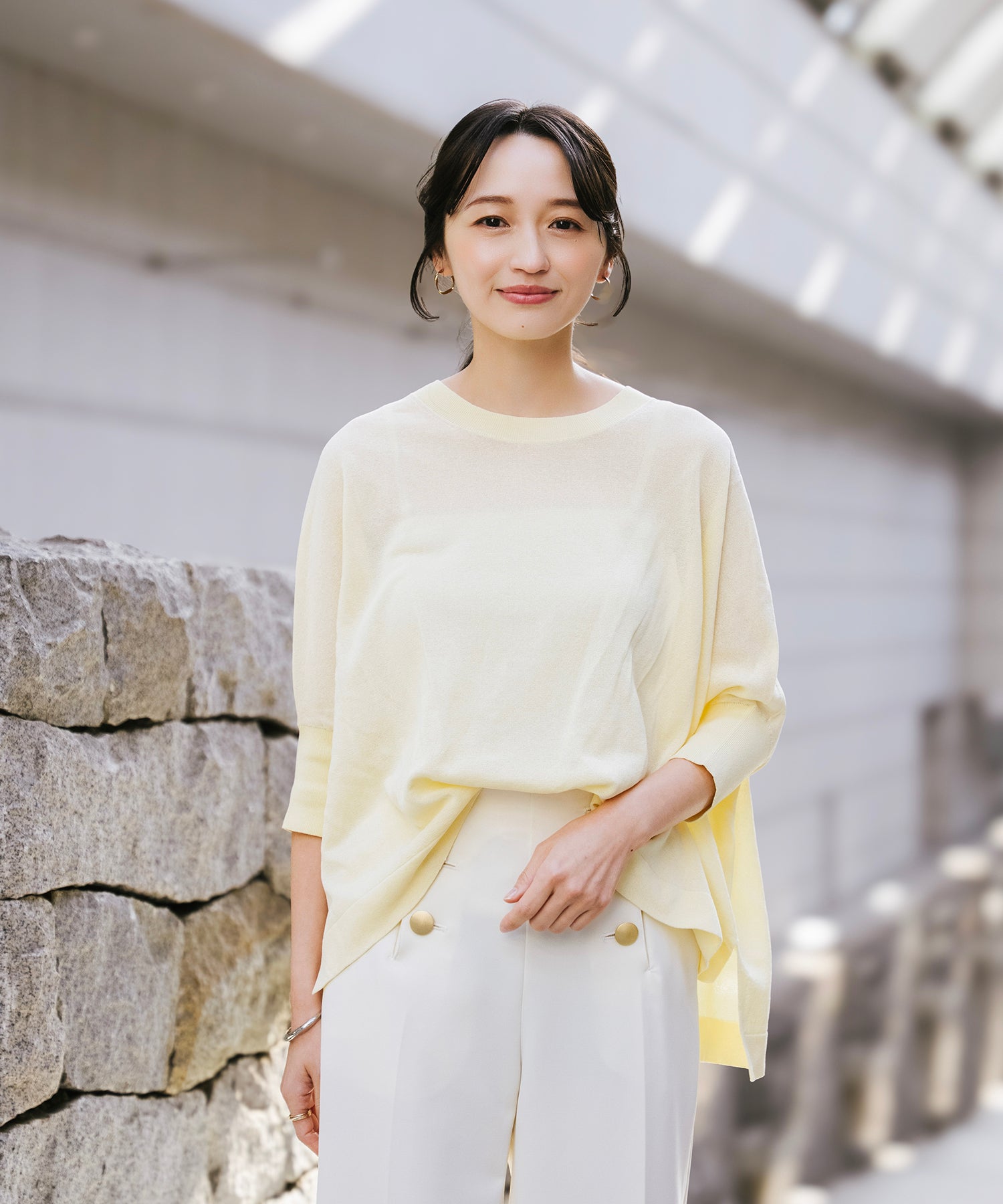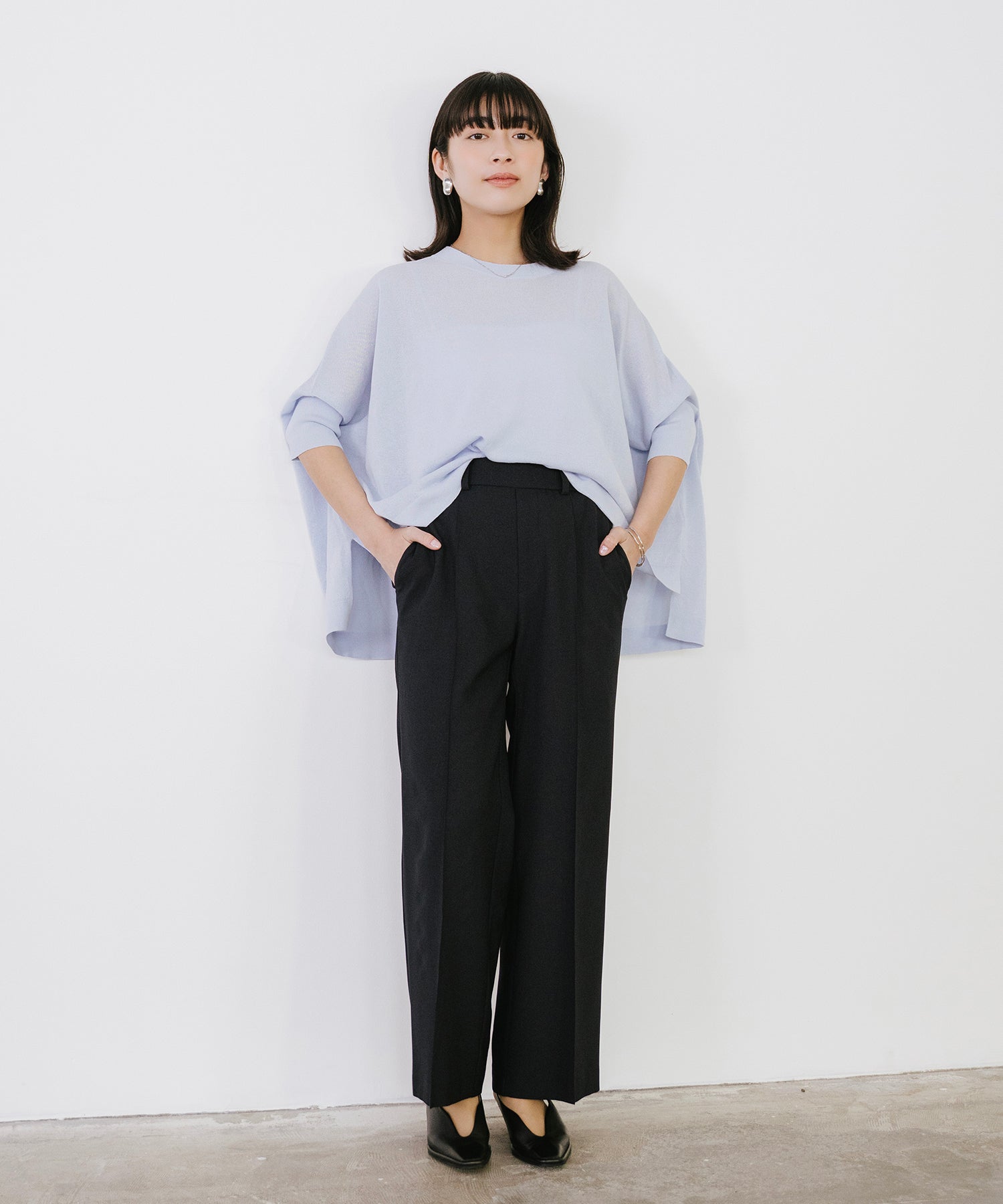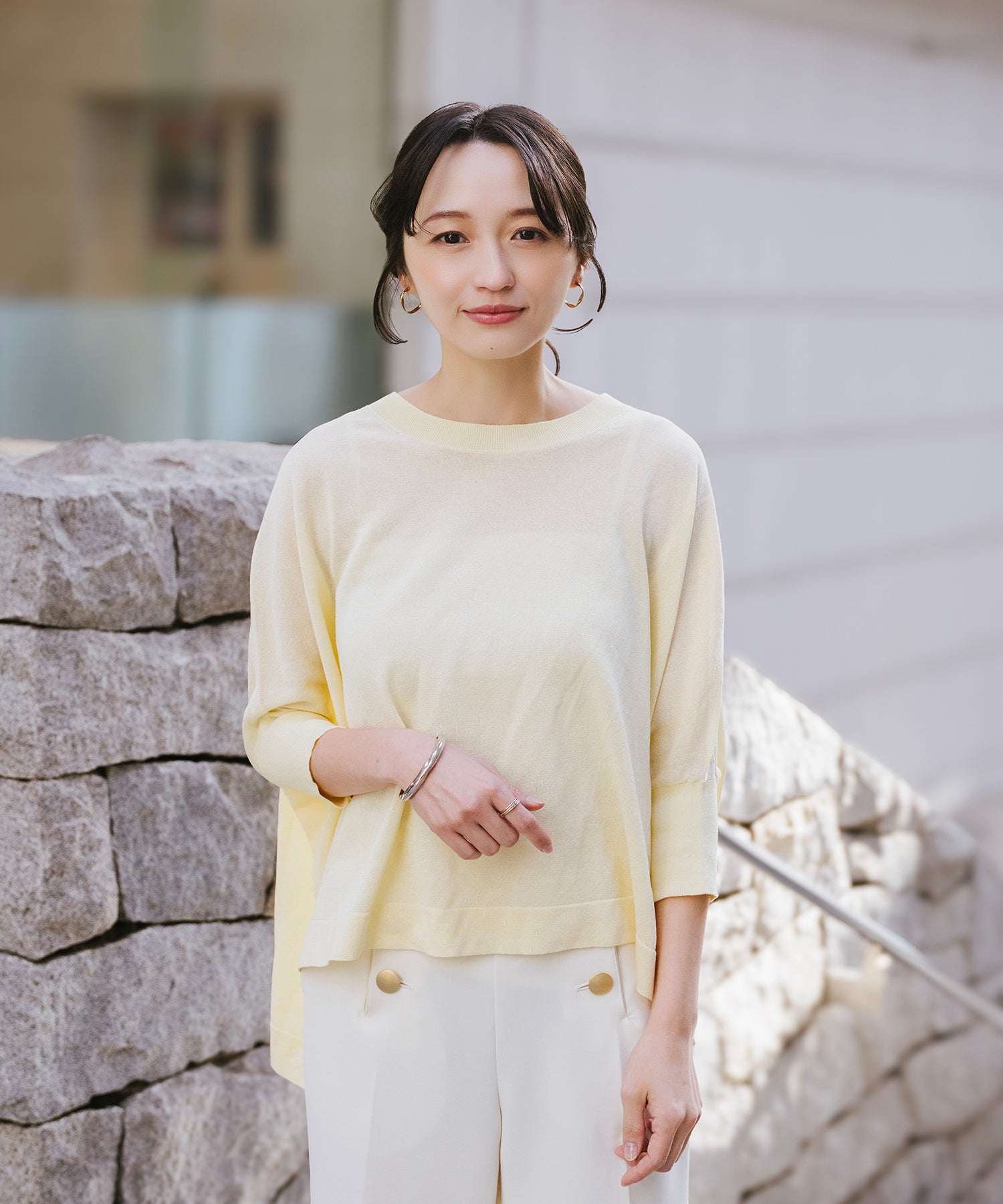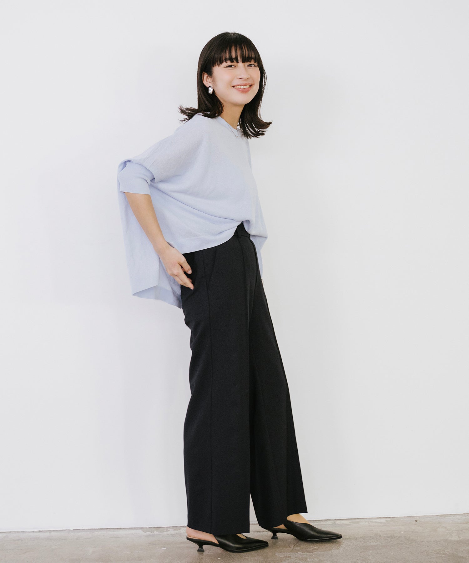 ニットながら重さを感じにくく、春夏シーズンに取り入れやすい素材感です。