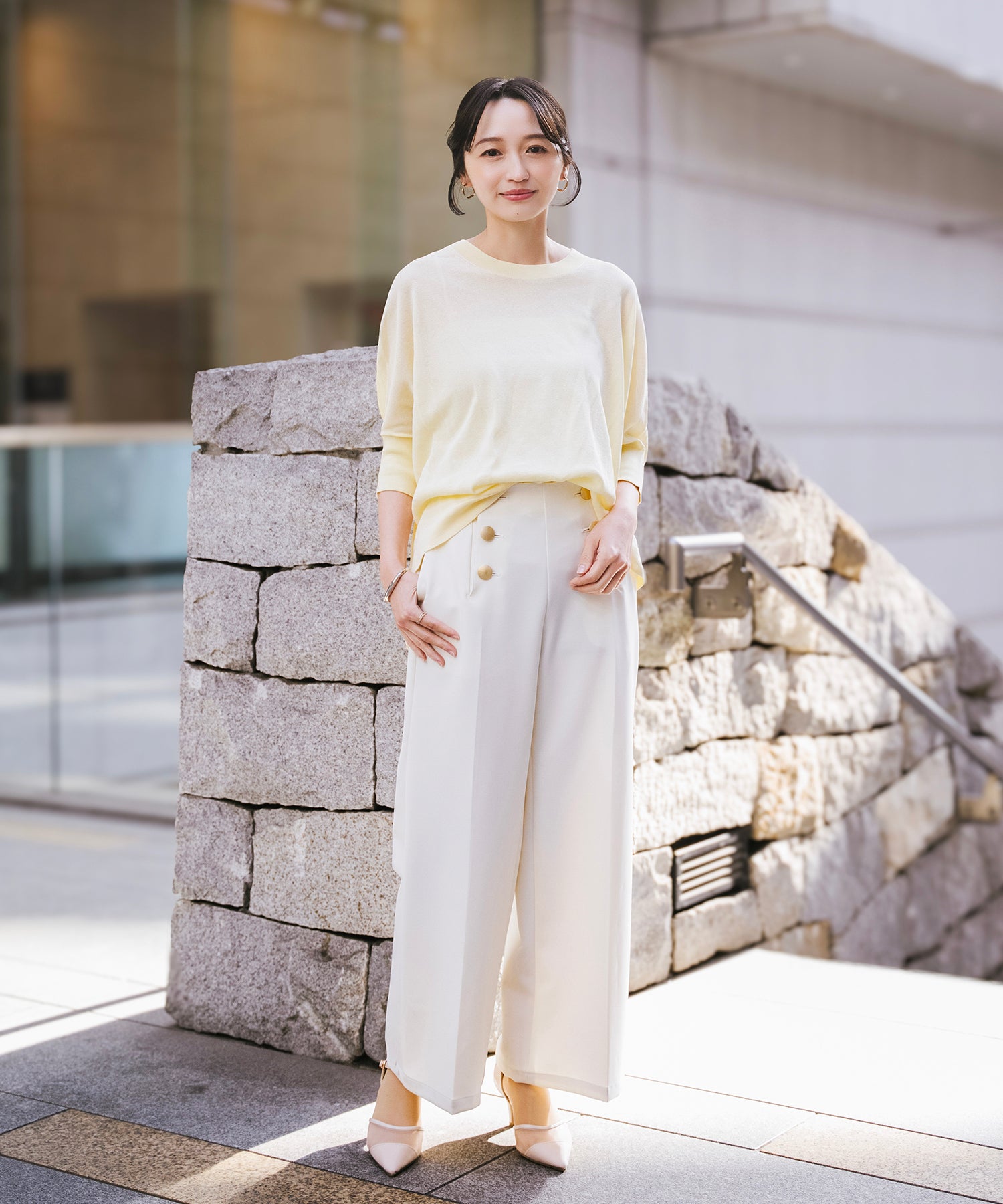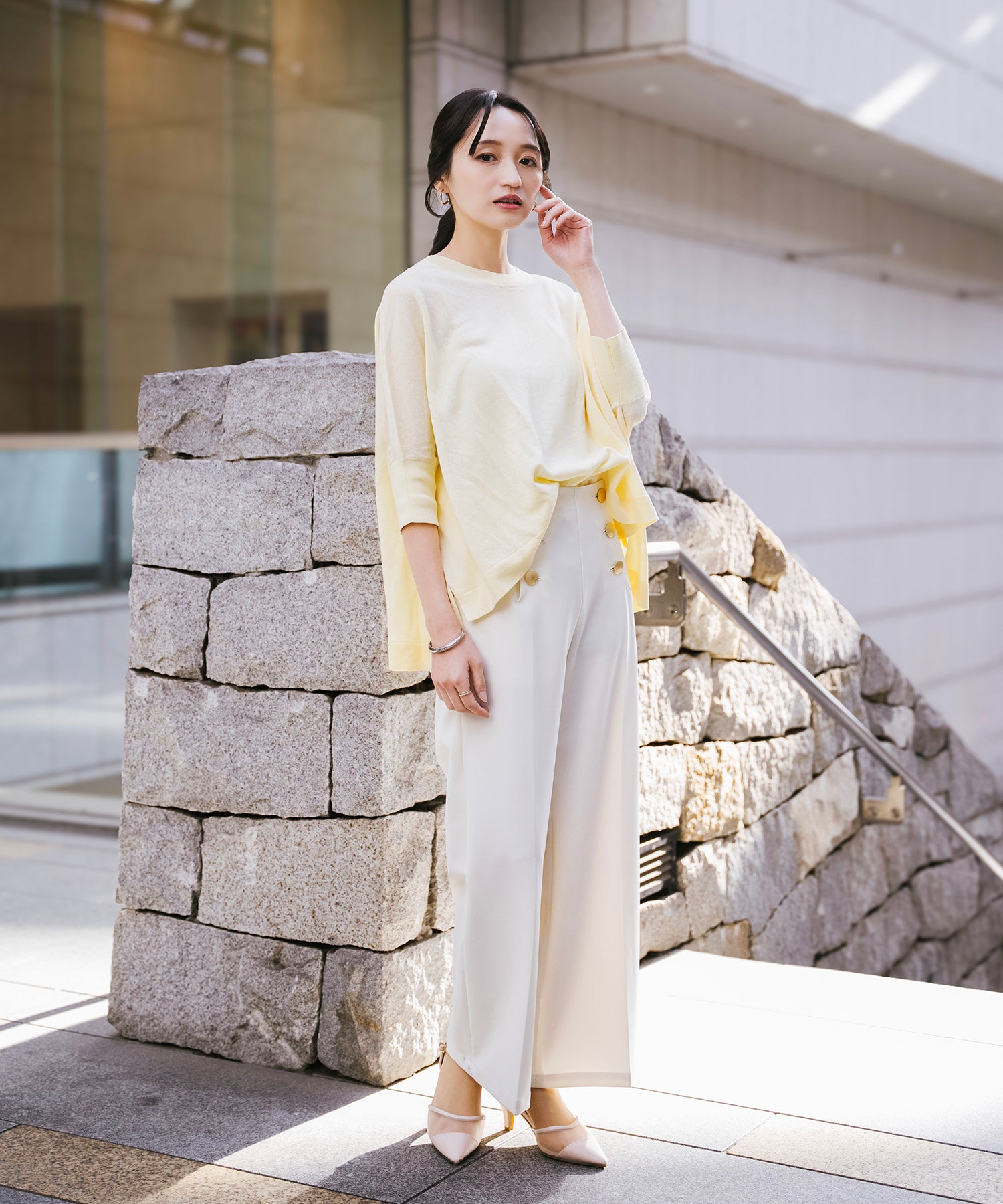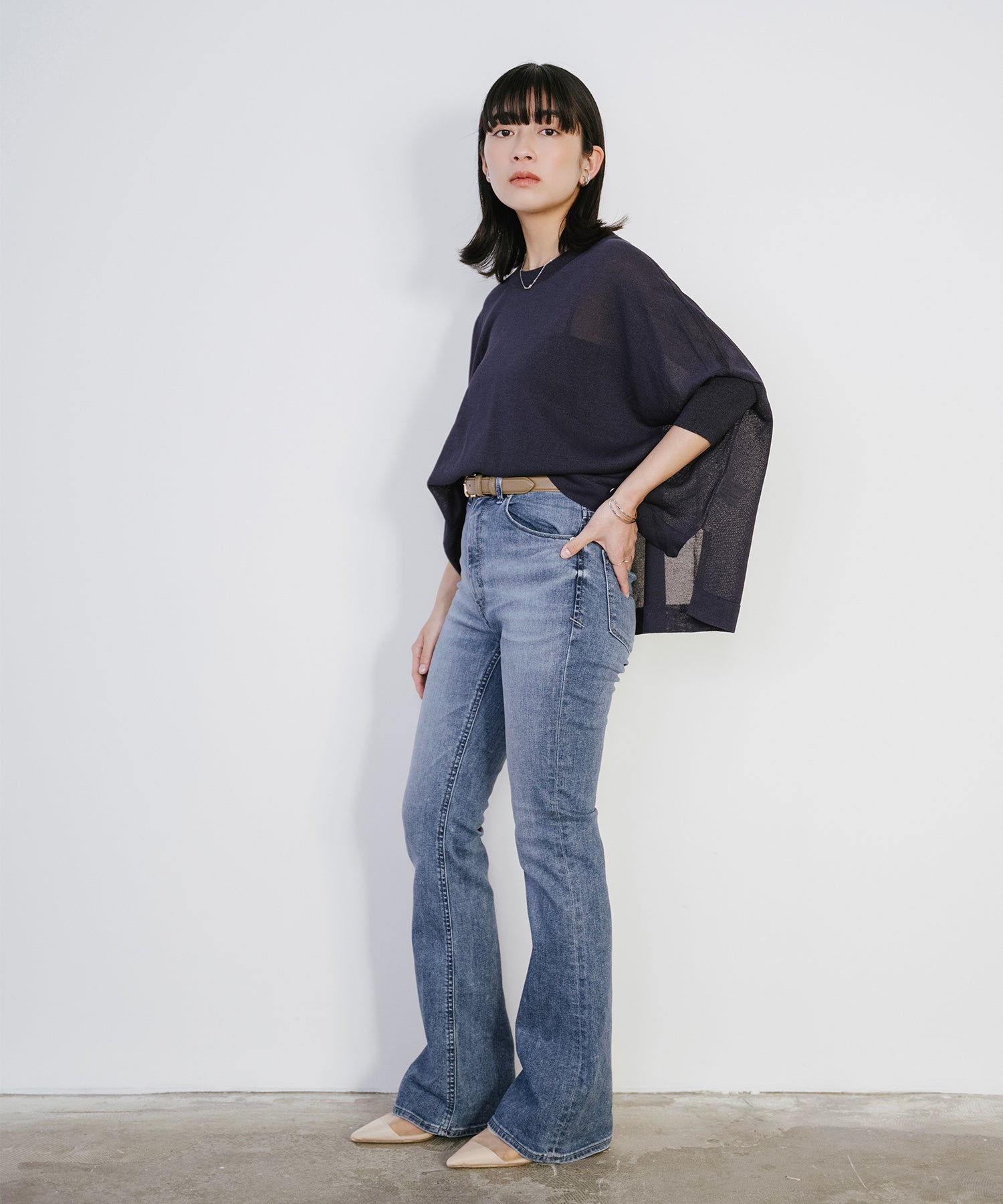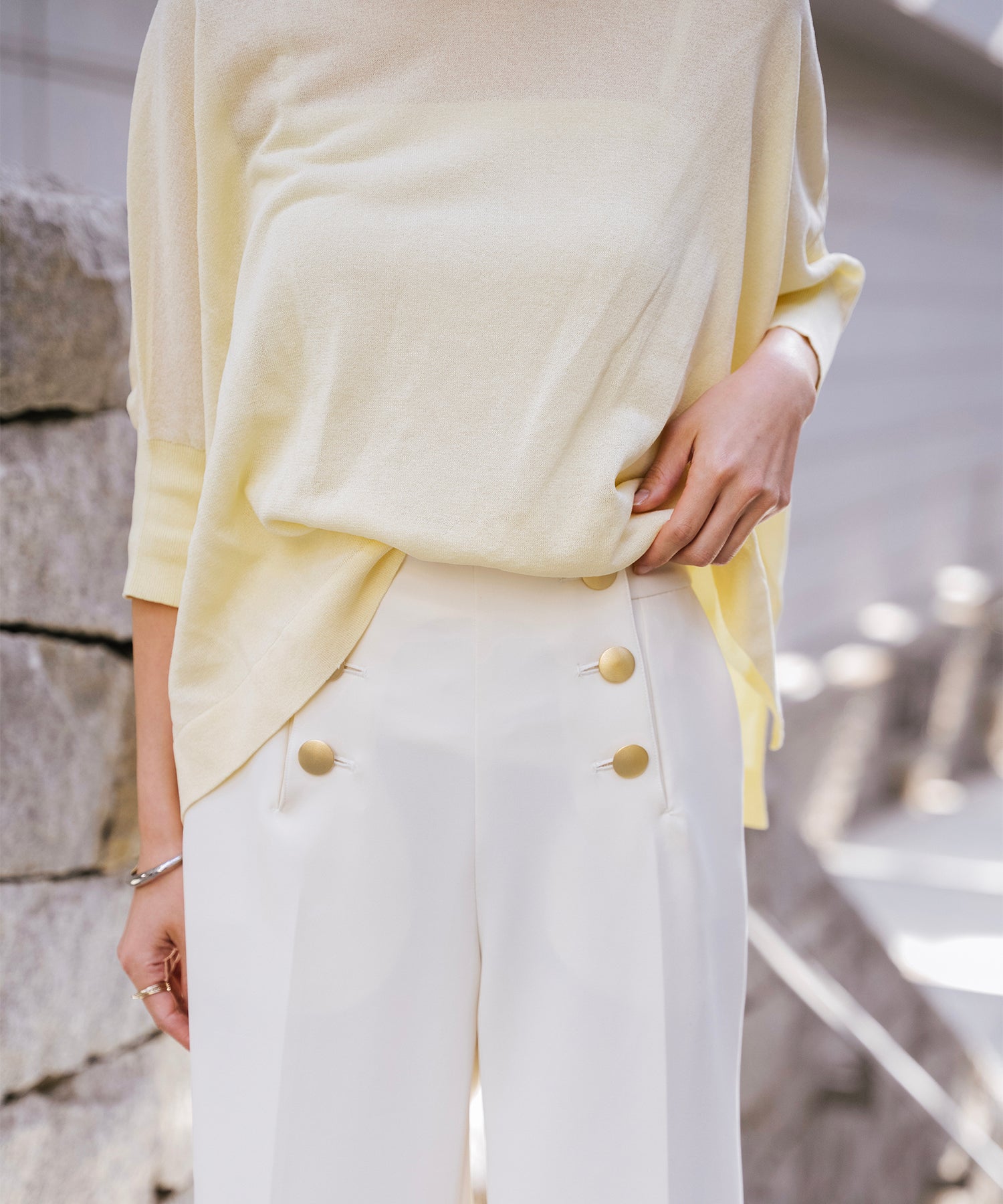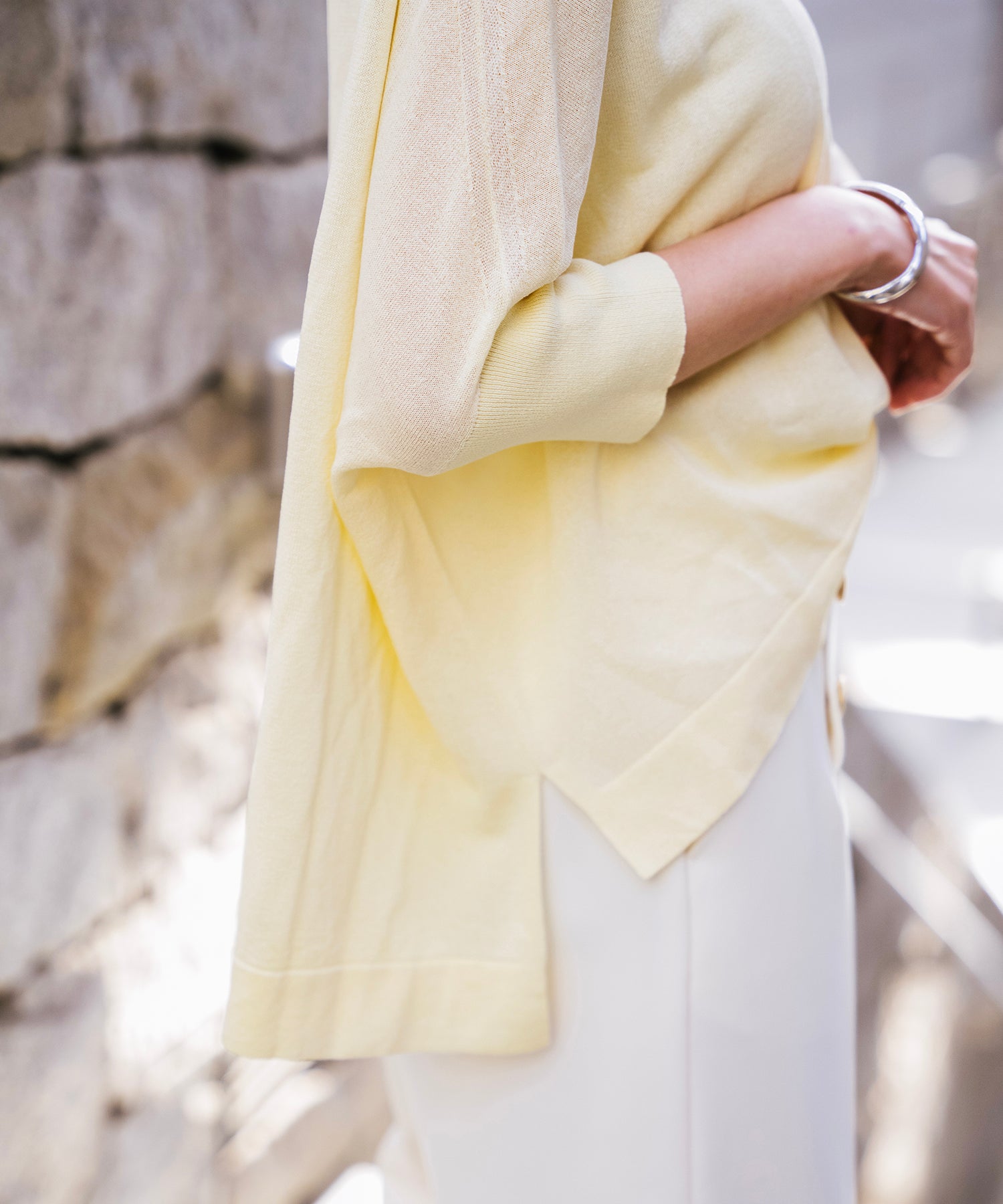 ニットながら重さを感じにくく、春夏シーズンに取り入れやすい素材感です。