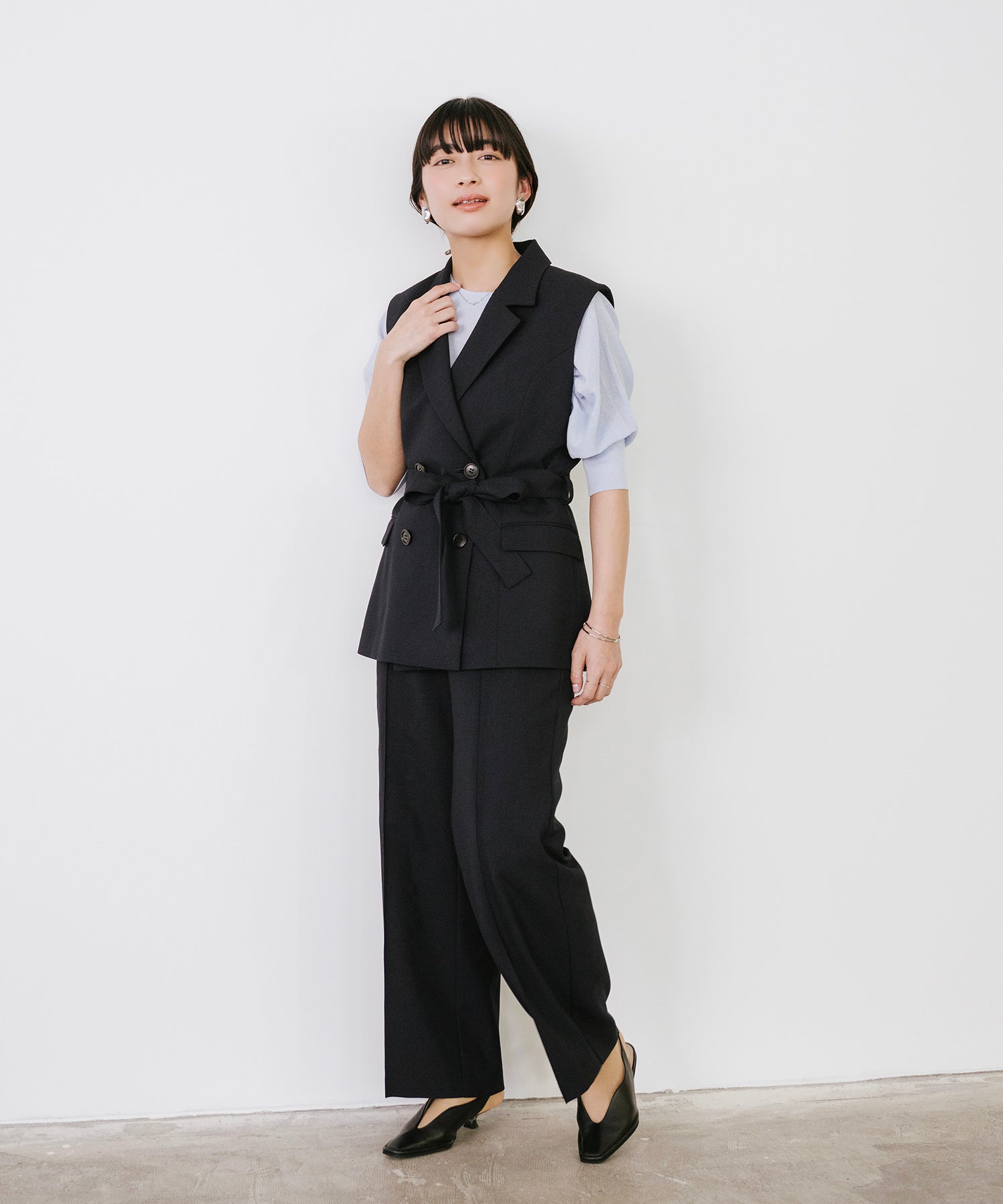 前着丈を少し短くし、長さに前後差をつけることで、動きのある表情に。